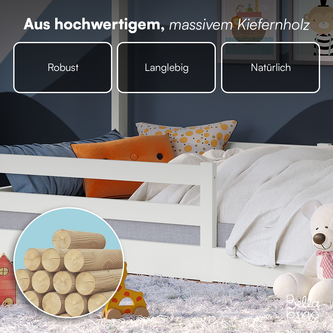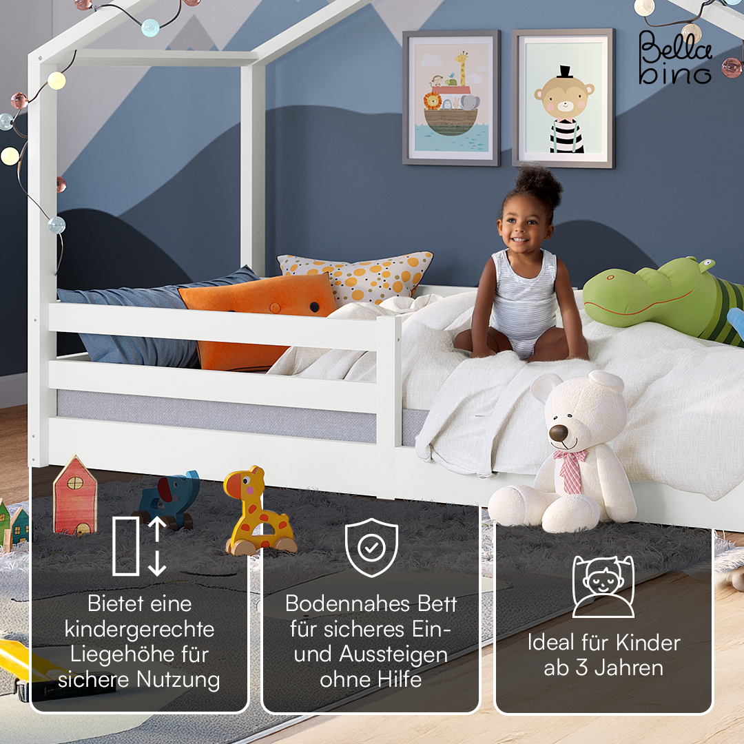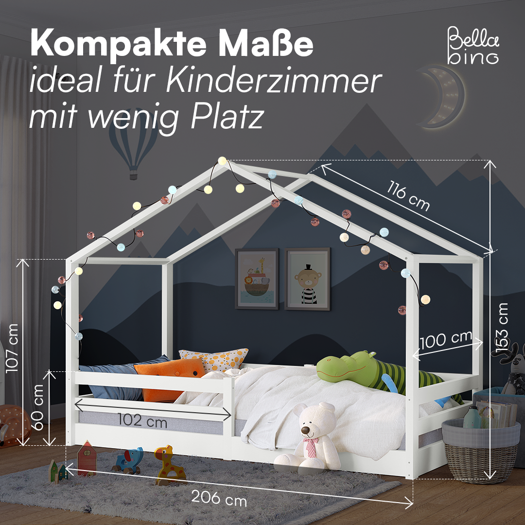 Mit seinem charmanten Design in Form eines Hauses wird das Bellabino Kinderbett schnell zum Highlight in jedem Kinderzimmer und fügt sich nahtlos in jeden Einrichtungsstil ein. Die elegante Optik macht es nicht nur zu einem Schlafplatz, sondern auch zu einem besonderen Spielort.