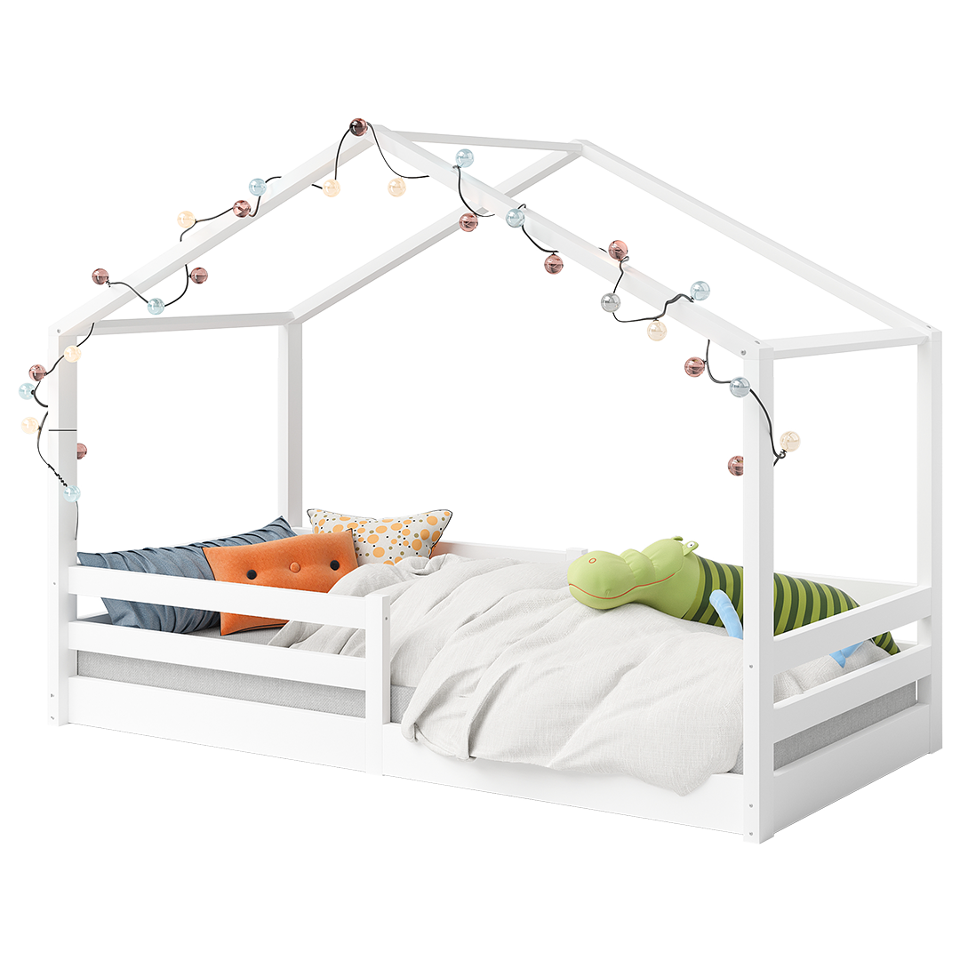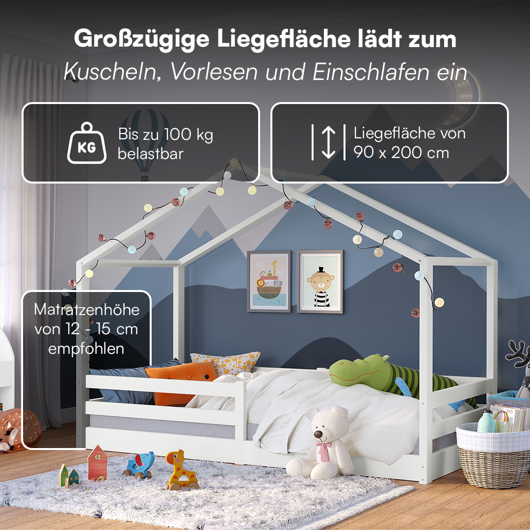 Abia Hausbett inkl. Lattenrost und Rausfallschutz, 90x200 cm, weiß lackiert