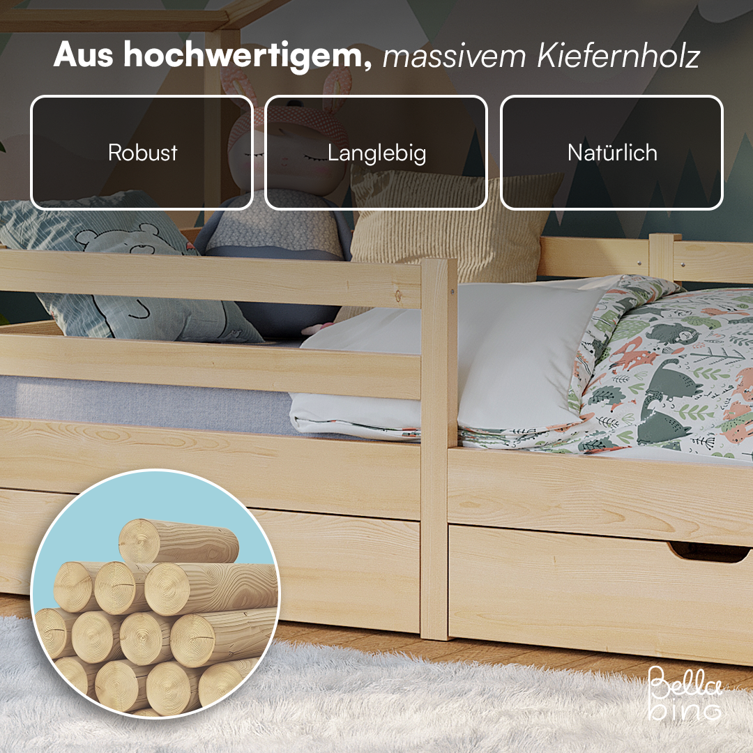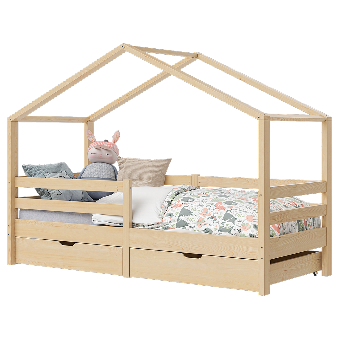 Abia Hausbett, natur, 90x200 cm, hoch, mit 2 Schubladen