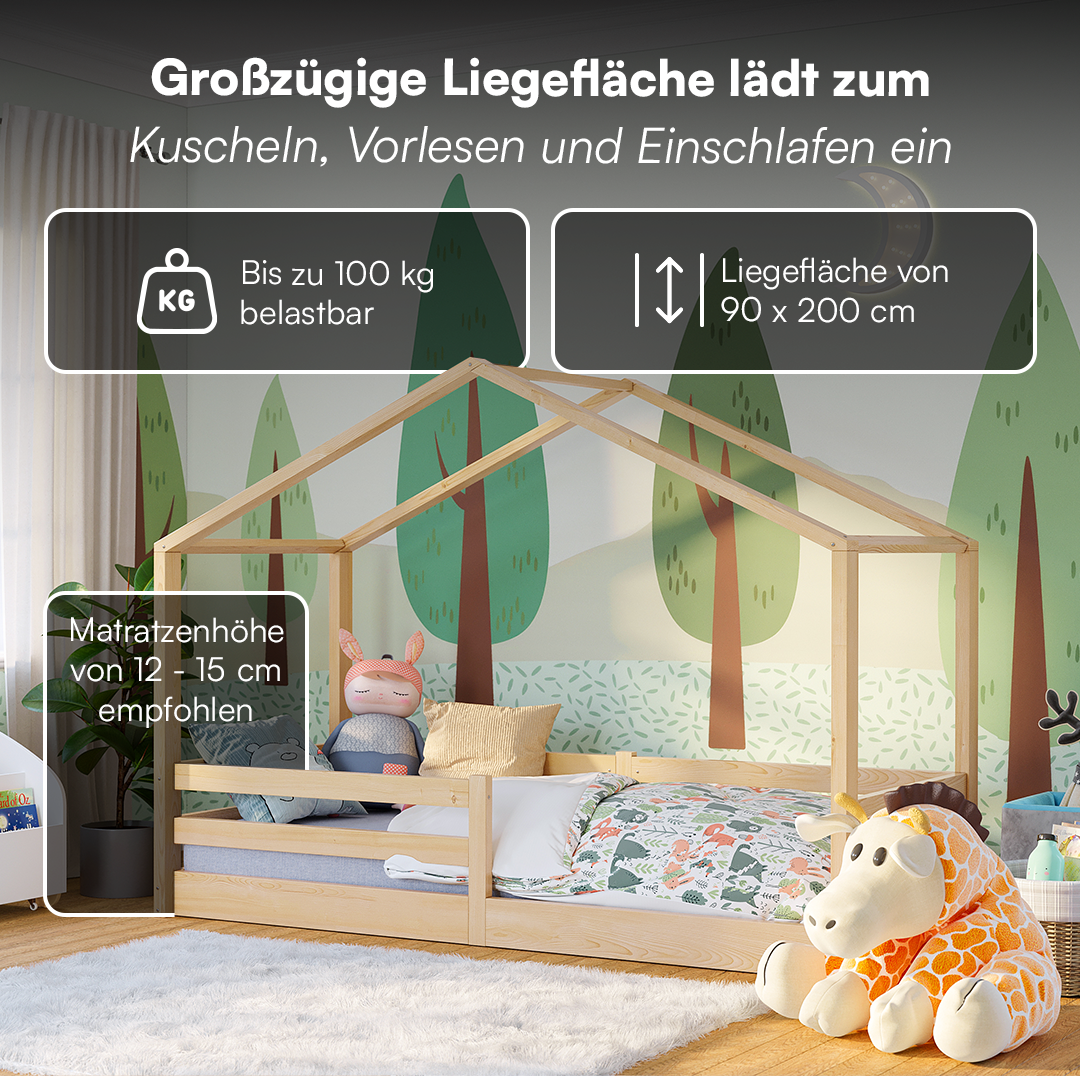- Lieferumfang: Hausbett inkl. Rausfallschutz, Lattenrost und Matratze