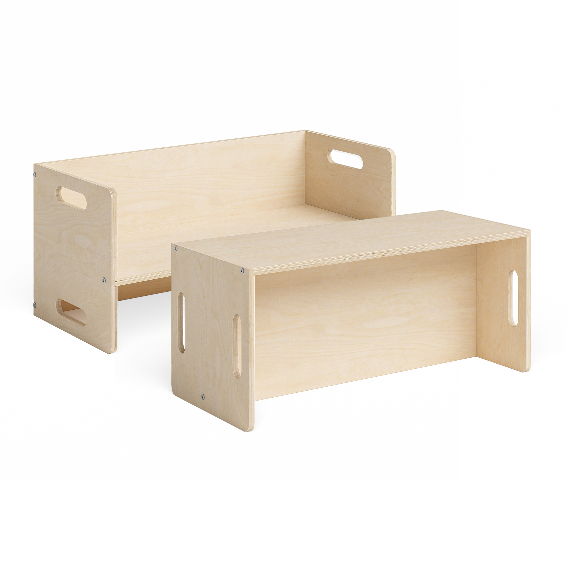 Hergestellt aus hochwertigem Birken-Sperrholz, bietet 'Aki' Stabilität und Langlebigkeit für eine sichere Spielumgebung. Die ergonomische Form der Bank bietet Ihrem Kind einen bequemen Sitzplatz zum Spielen, Lesen oder Malen.