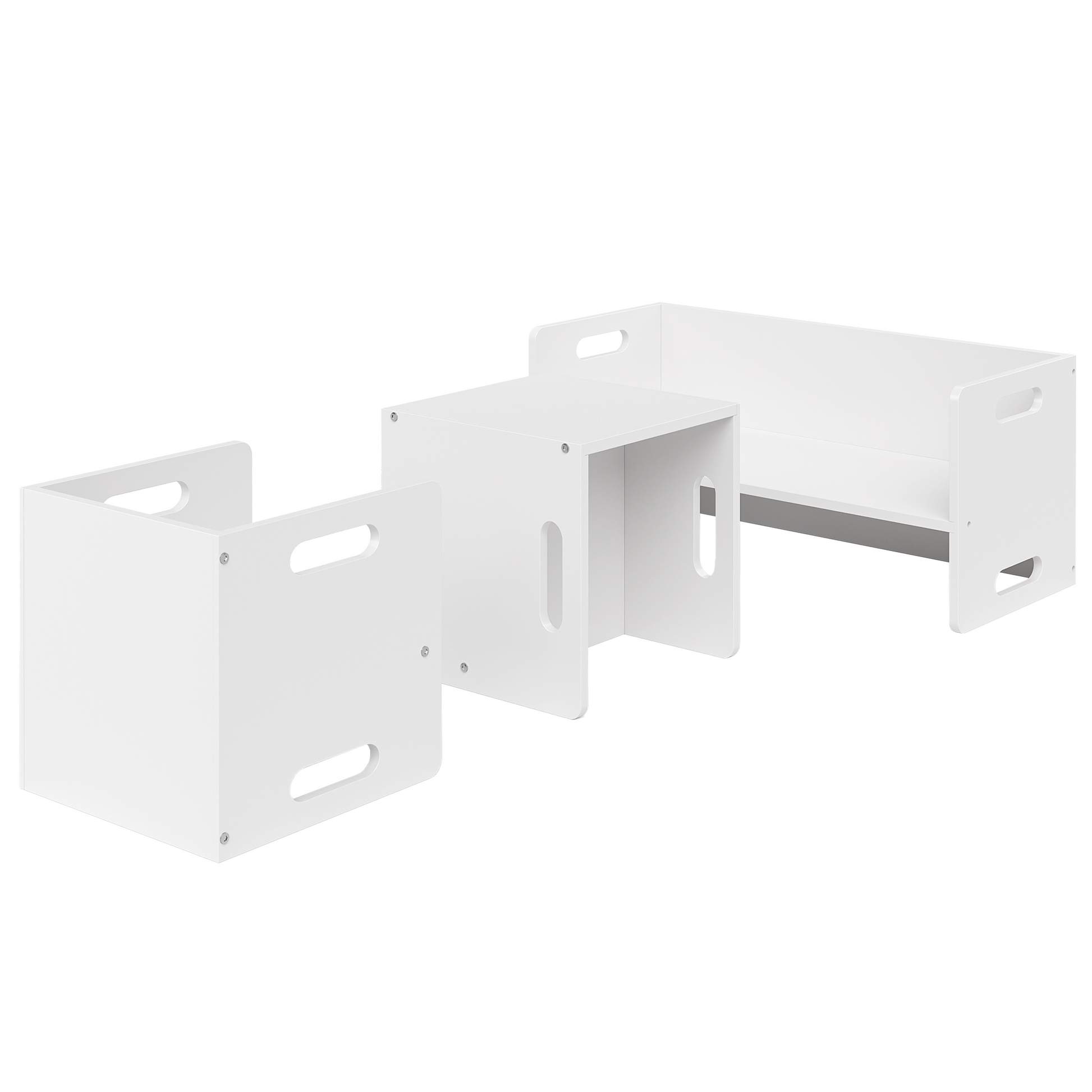 Aki 2in1 drehbare Kindersitzgruppe, 2x Stuhl und 1x Bank, weiß lackiert