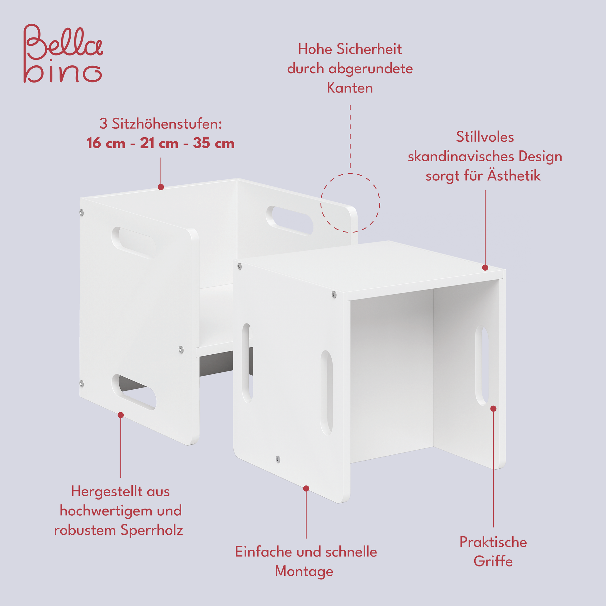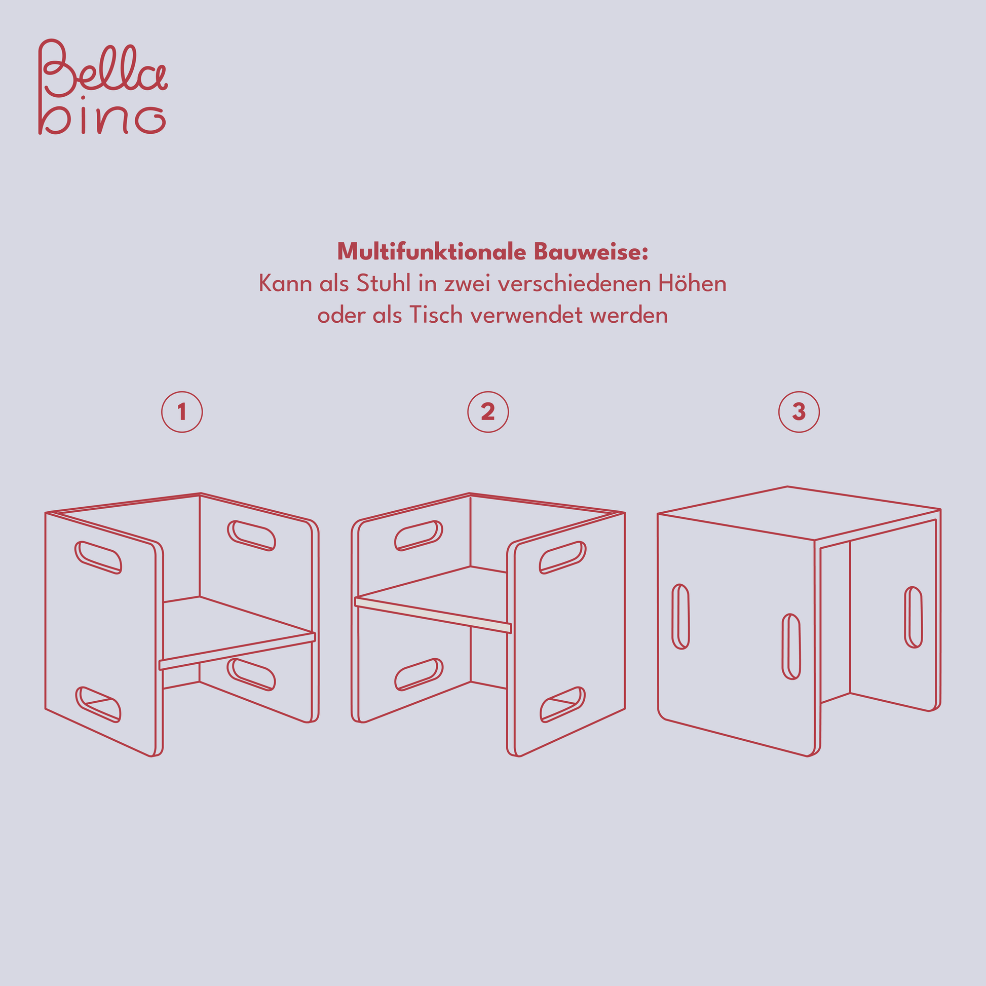 Die Sitzgruppe 'Aki' von Bellabino bietet höchste Funktionalität und Sitzkomfort im Kinderzimmer. Hergestellt aus hochwertigem Birken-Sperrholz, besteht 'Aki' aus zwei drehbaren Stühlen mit den Maßen B 34 x T 35 x H 35 cm. Die 180-Grad-Drehfunktion ermöglicht es, die Sitzhöhe an die Bedürfnisse und das Wachstum Ihres Kindes anzupassen, und die Stühle können auch als Beistelltisch verwendet werden.