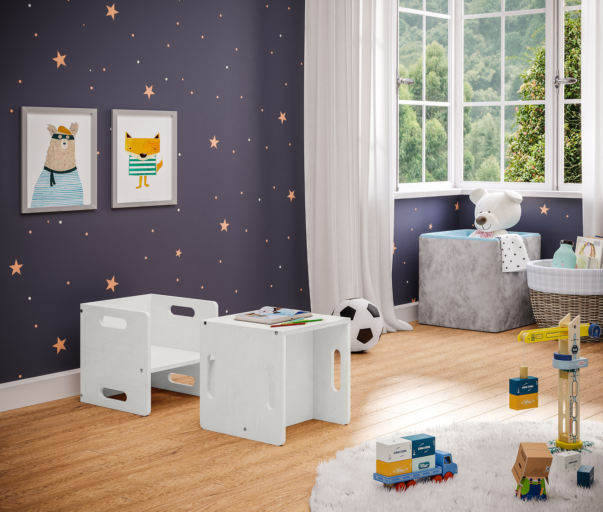 Aki 2in1 drehbare Kindersitzgruppe, 2x Stuhl, weiß lackiert