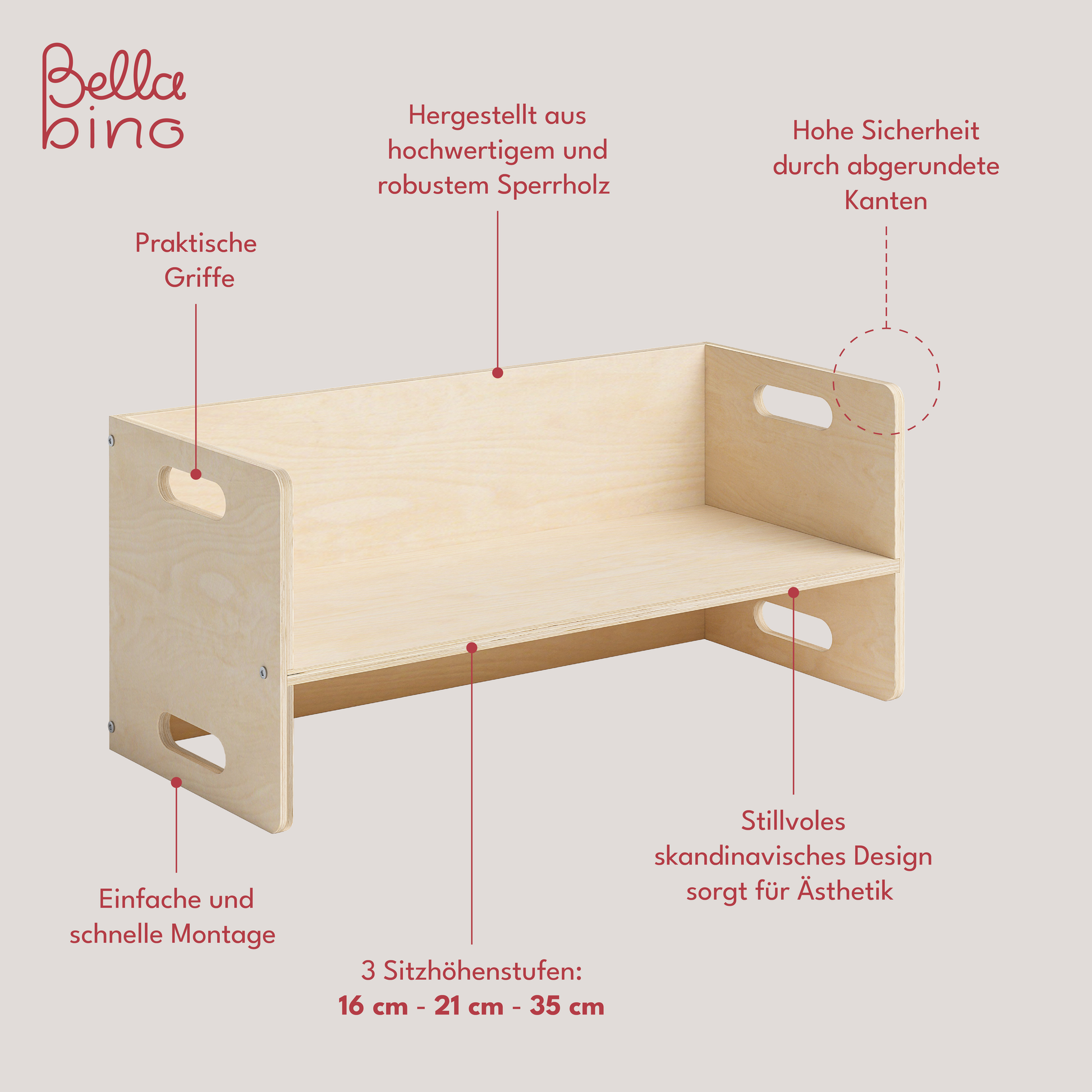 Die vielseitige 2in1-Wendebank 'Aki' von Bellabino ist eine ideale Ergänzung für das Kinderzimmer, die Kinder zum Spielen und Entspannen einlädt. Diese clevere Bank ermöglicht es Ihnen, den Raum Ihres Kindes spielerisch zu gestalten und gleichzeitig Komfort und Funktionalität zu bieten.