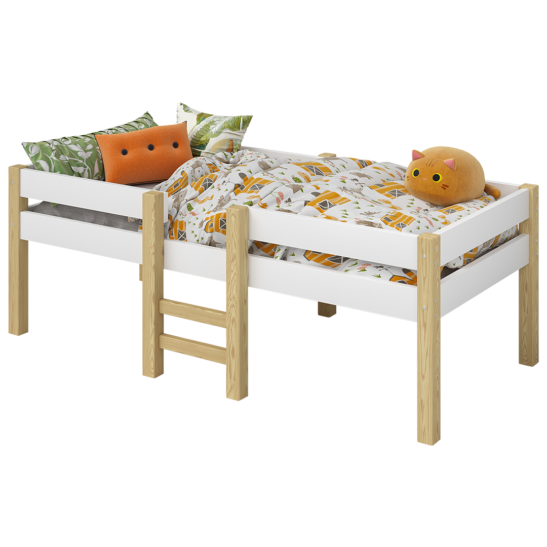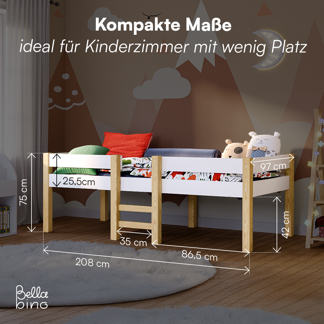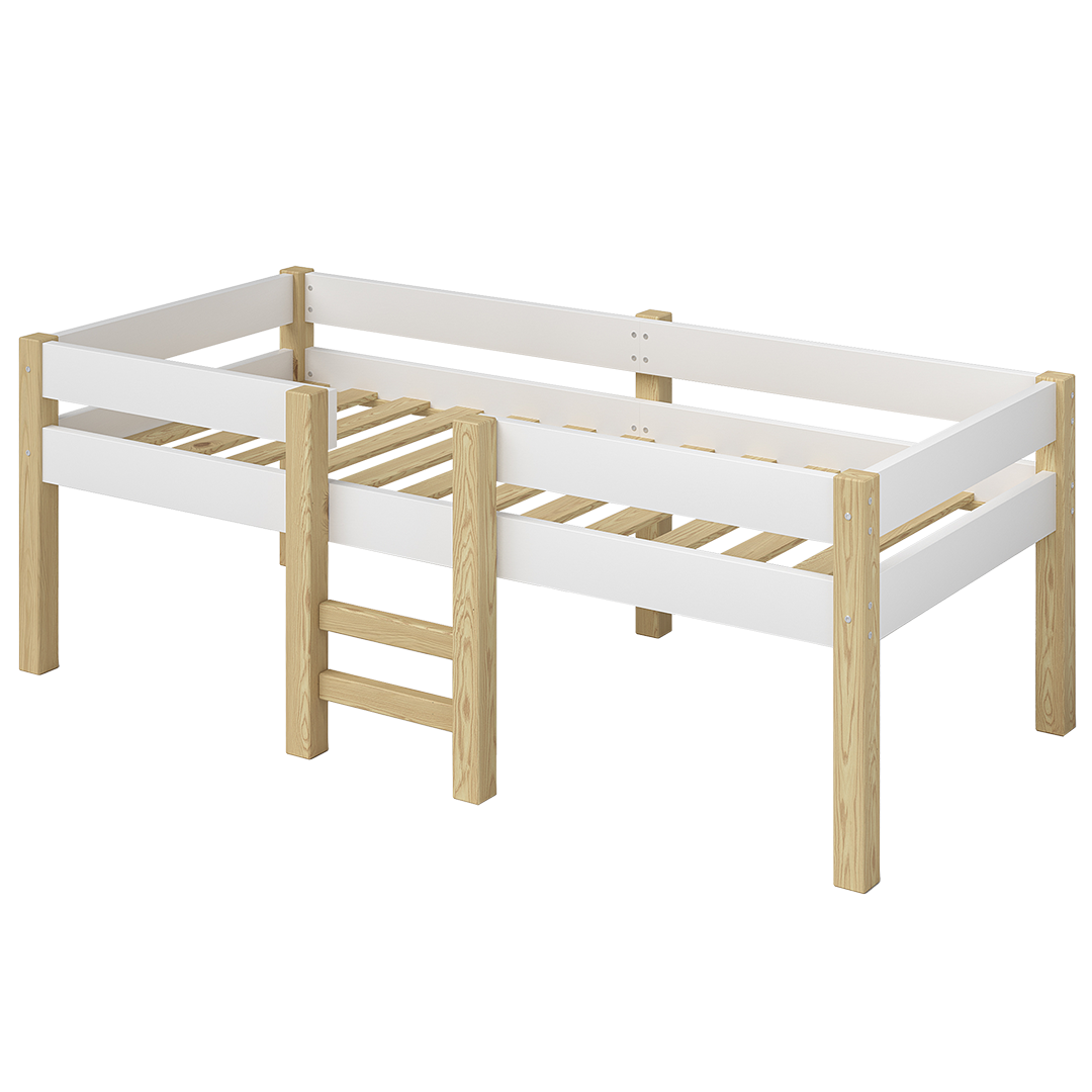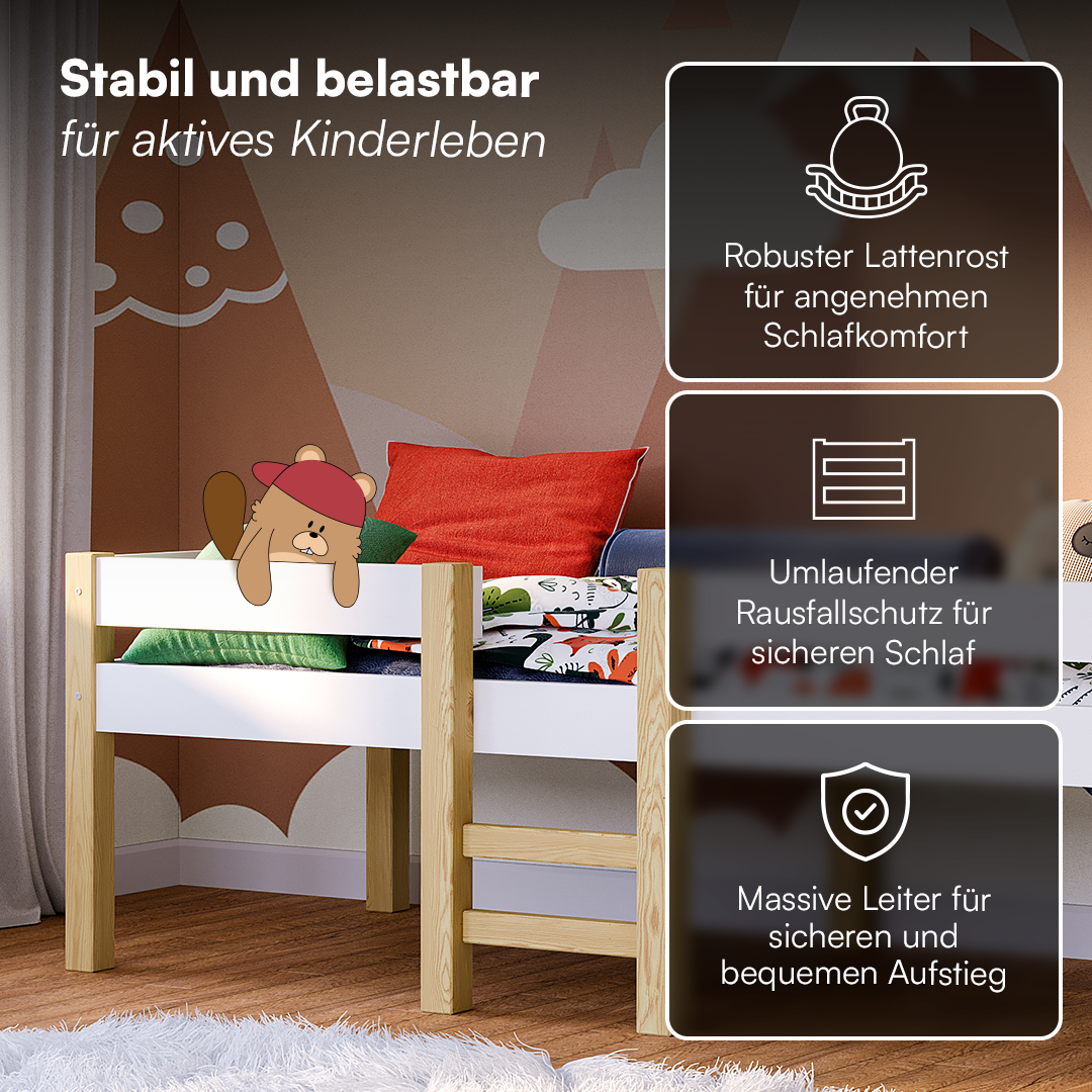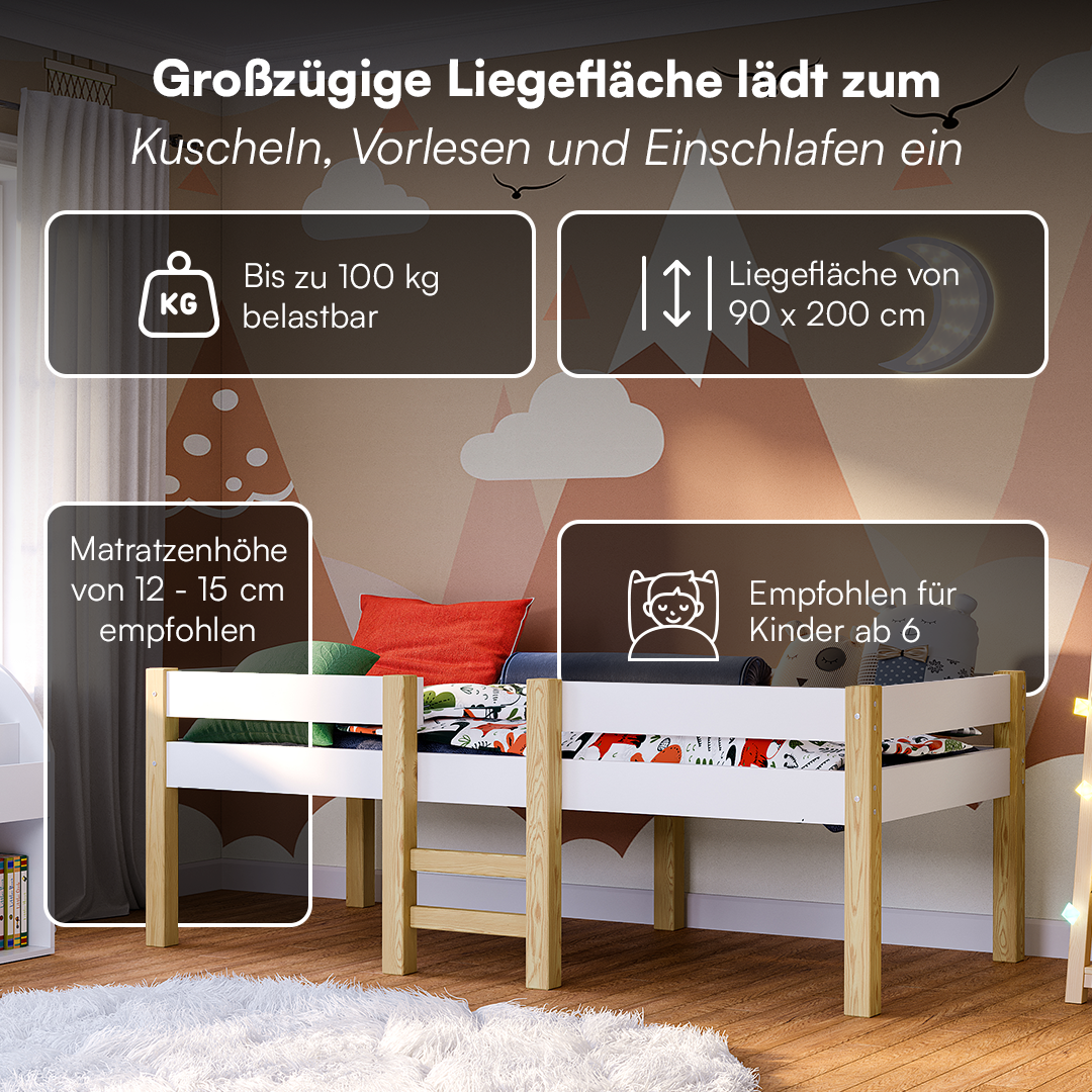 Aspy Halbhochbett inkl. Lattenrost, natur/weiß, 90x200 cm, mit Matratze