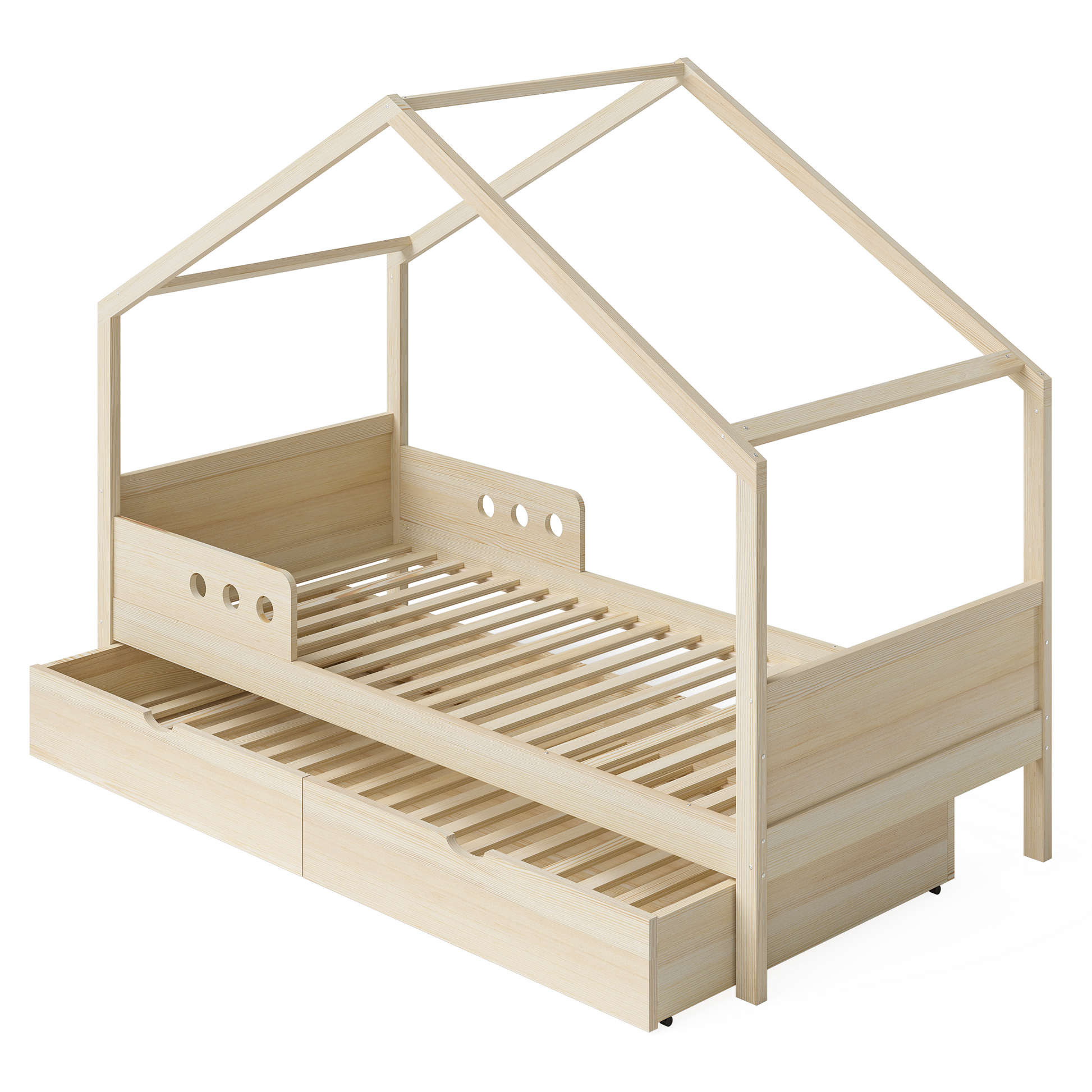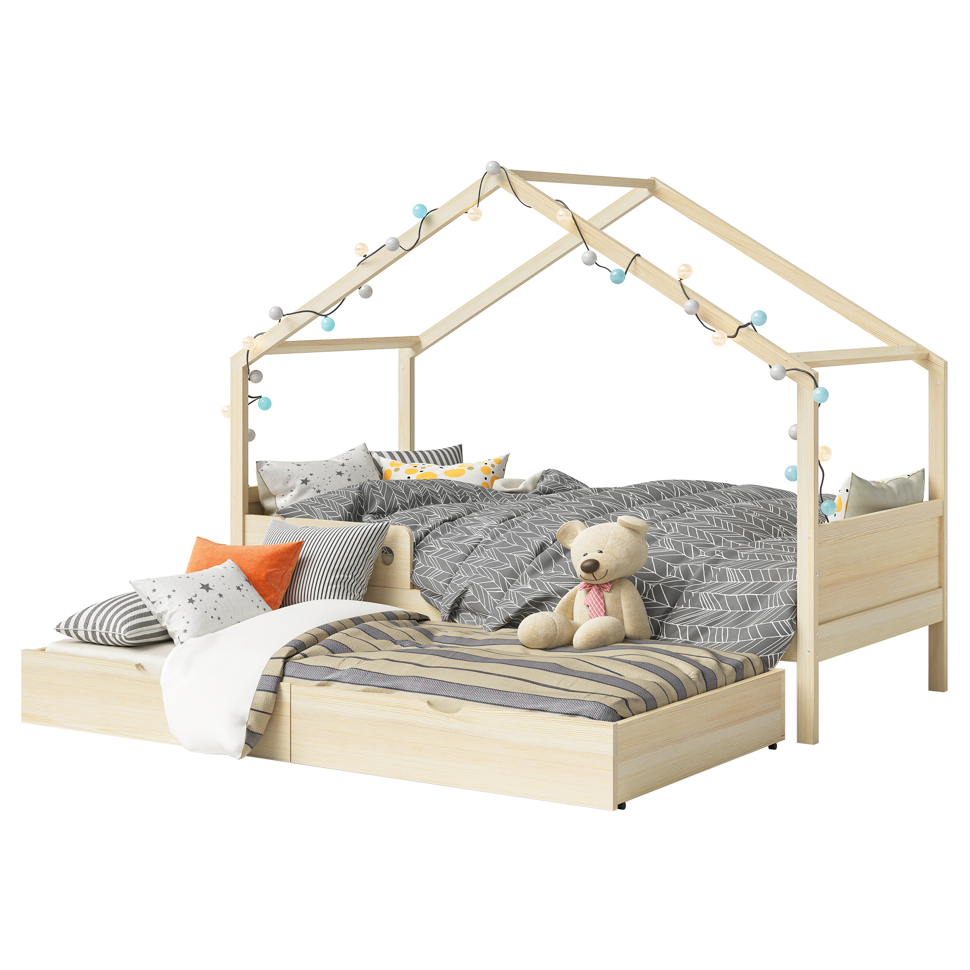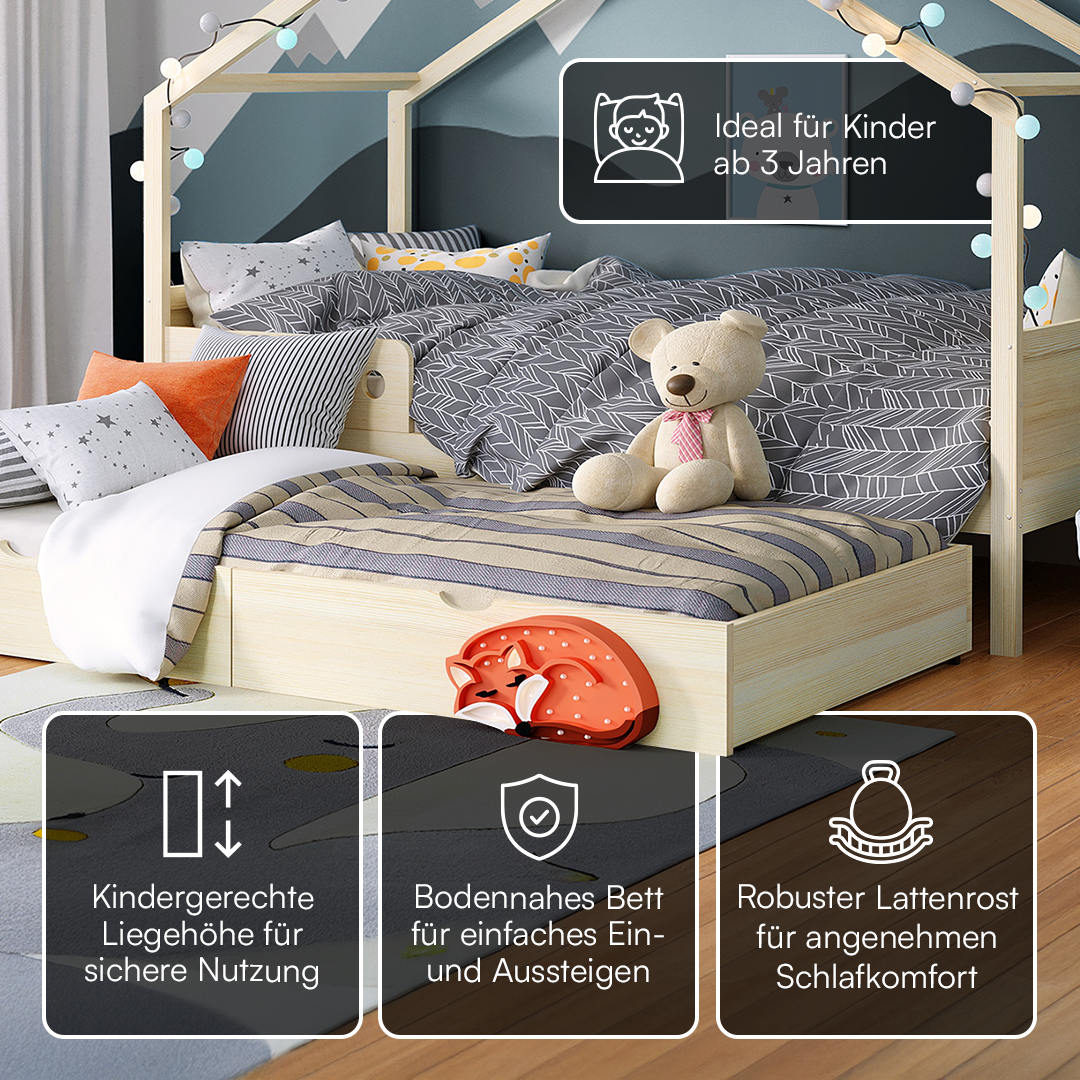 Bela Hausbett 90x200 cm, natur, inkl. Gästebett 90x190 cm und Rausfallschutz, mit Matratze