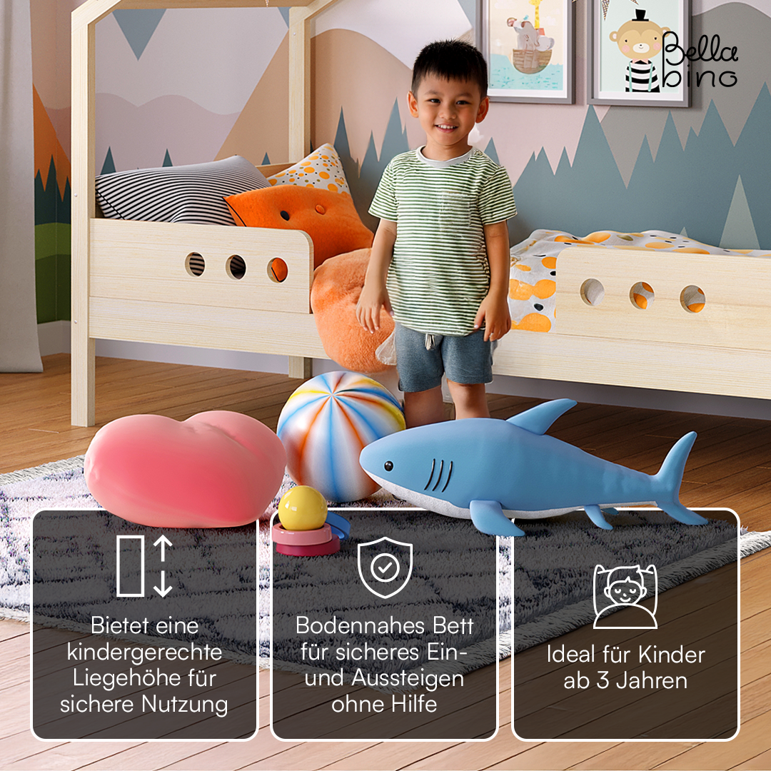 Das Kinderbett Bela von Bellabino vereint Funktionalität und ansprechendes Design, um eine gemütliche Schlaflösung für das Kinderzimmer zu schaffen. Mit seiner charmanten Hausform und dem skandinavischen Stil lädt es Kinder ab etwa 3 Jahren zum Schlafen und Spielen ein.
