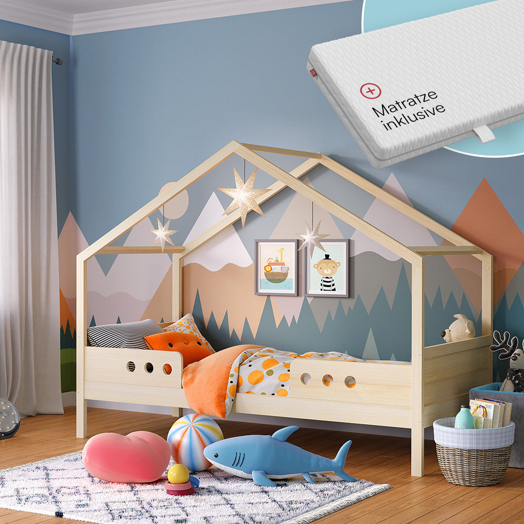 Bela Hausbett inkl. Lattenrost, natur, 90x200 cm, mit Matratze