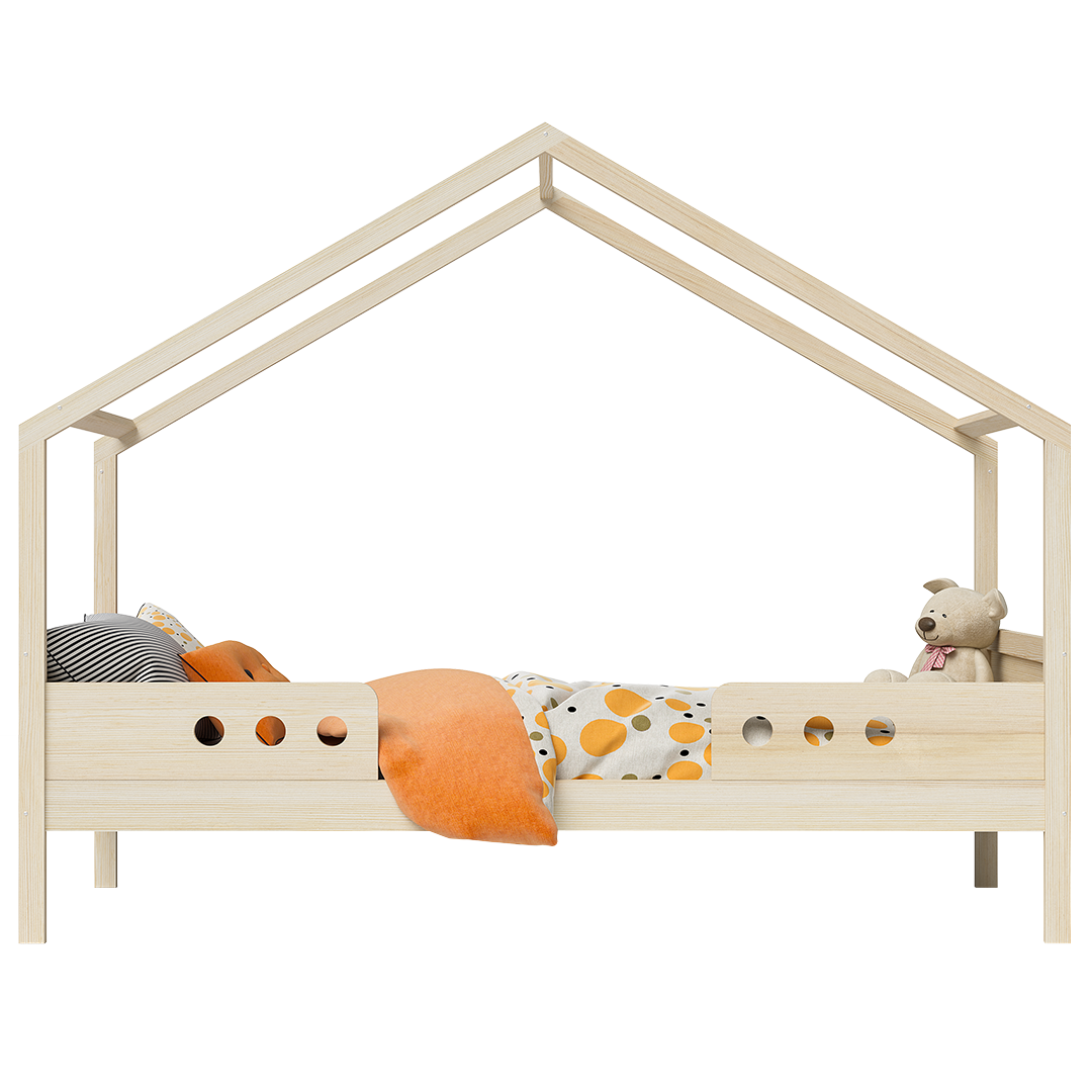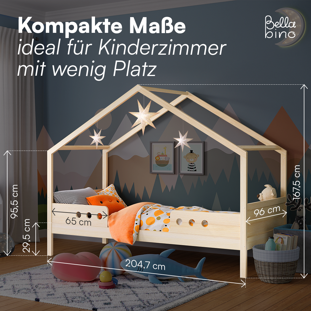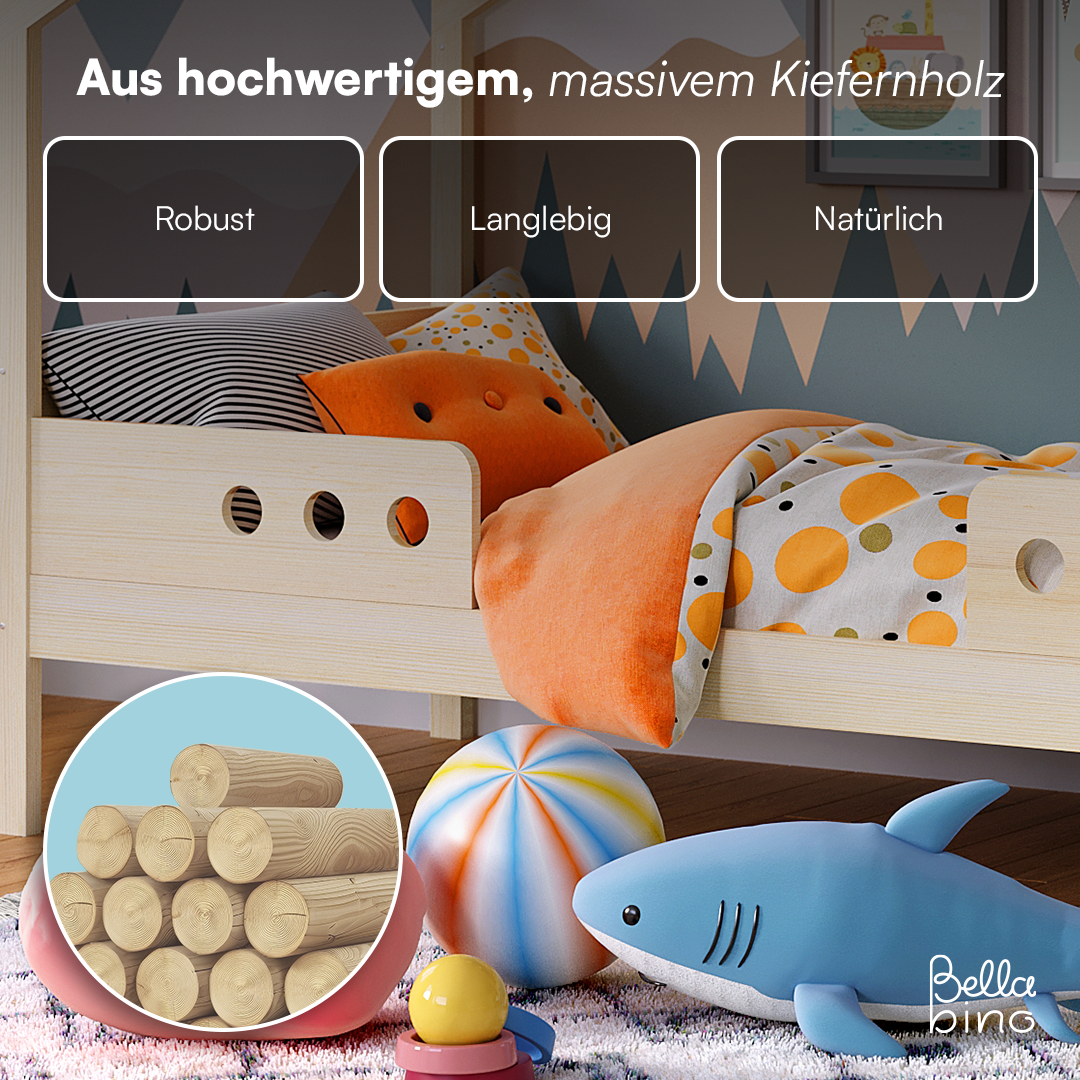 Bela Hausbett inkl. Rolllattenrost und Rausfallschutz, Kiefer massiv, natur, 90x200 cm