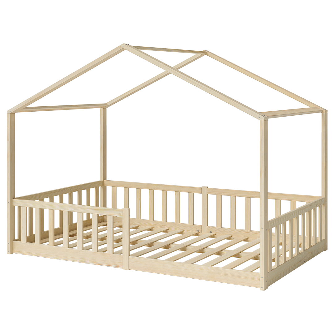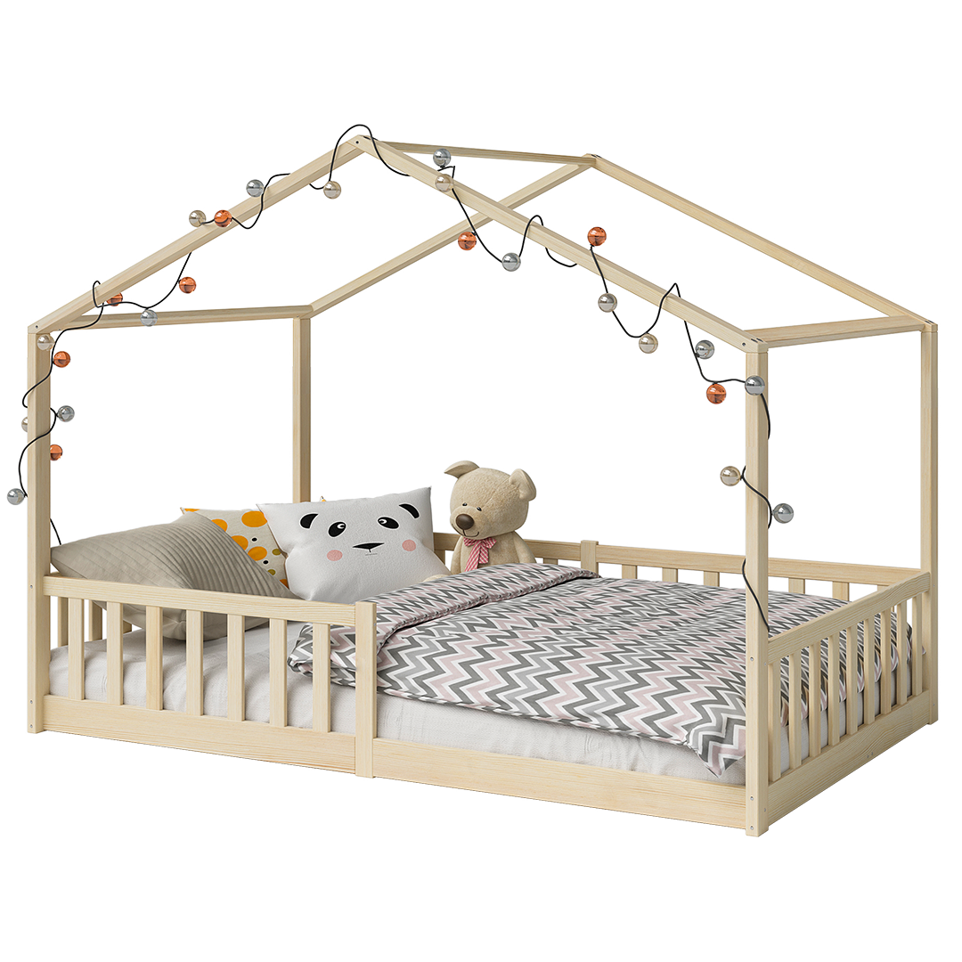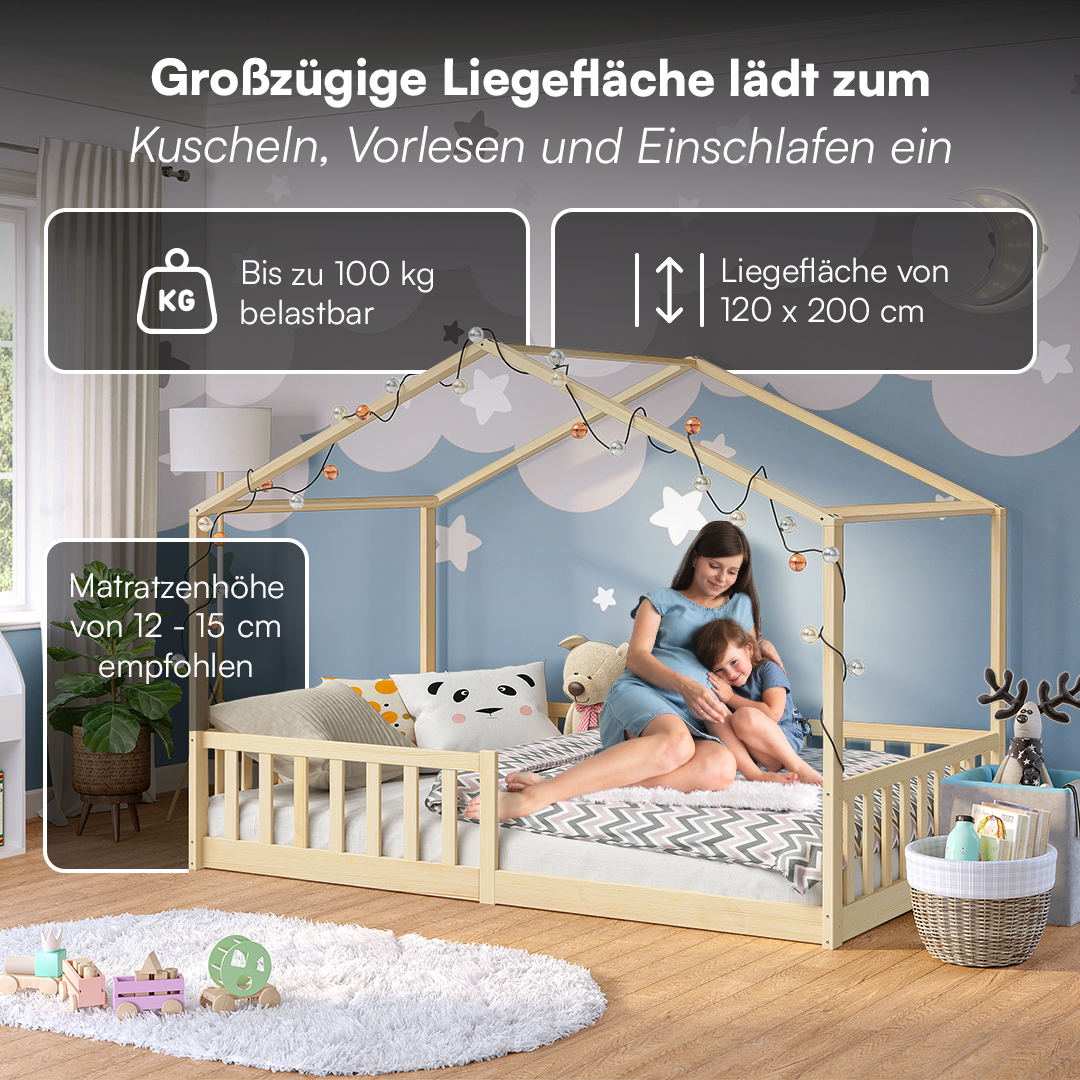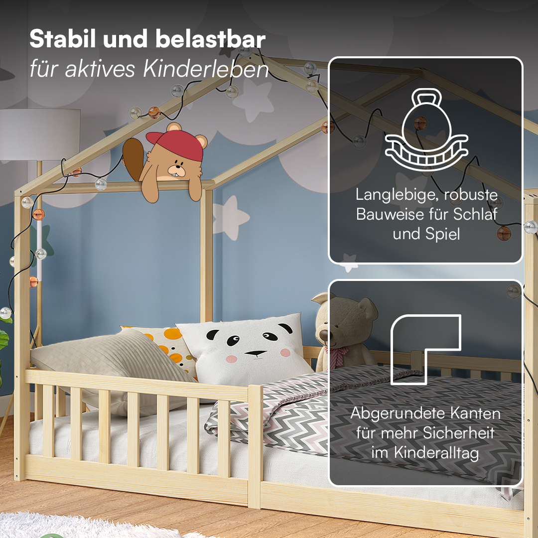 Bia Hausbett inkl. Lattenrost und Rausfallschutz, 120x200 cm, natur lackiert