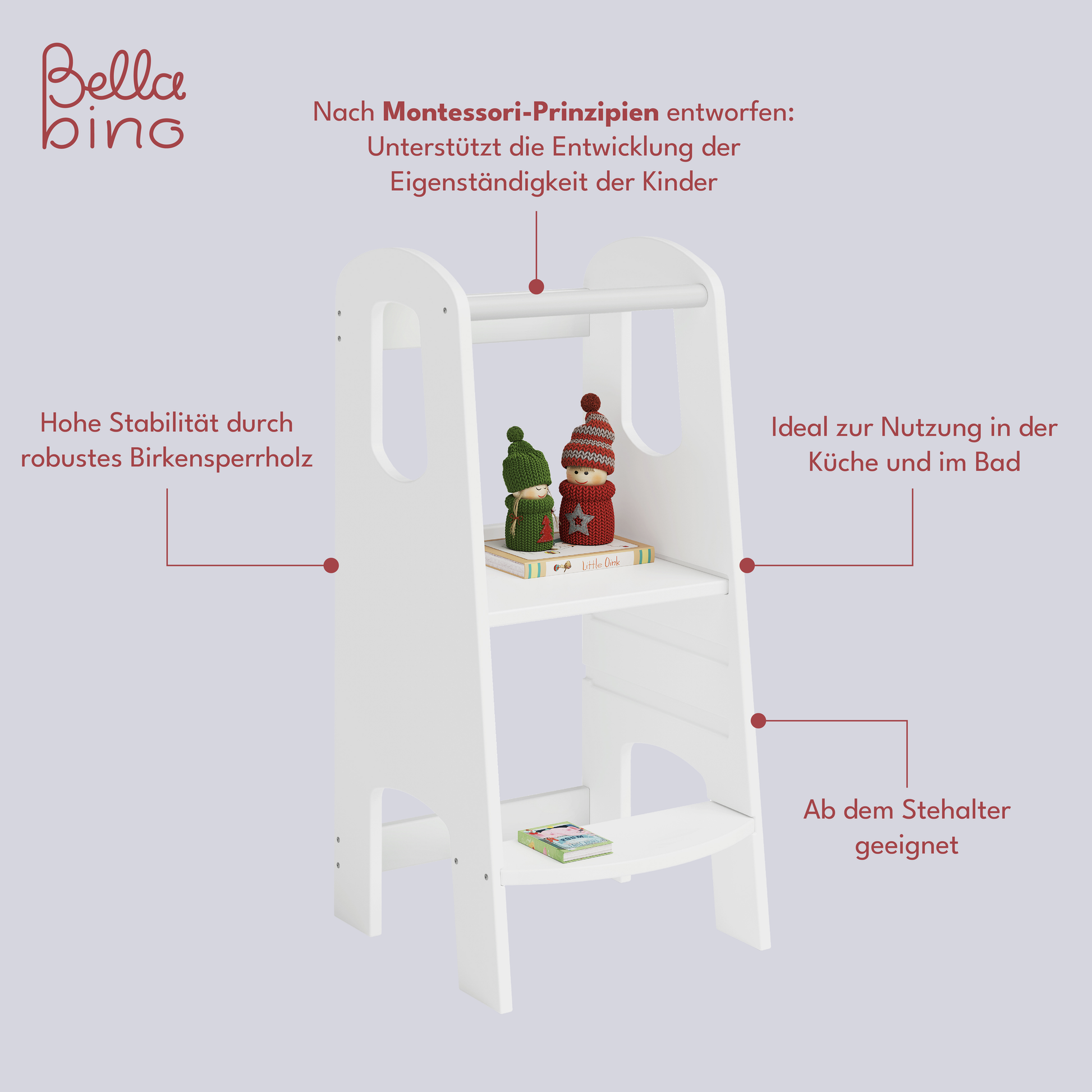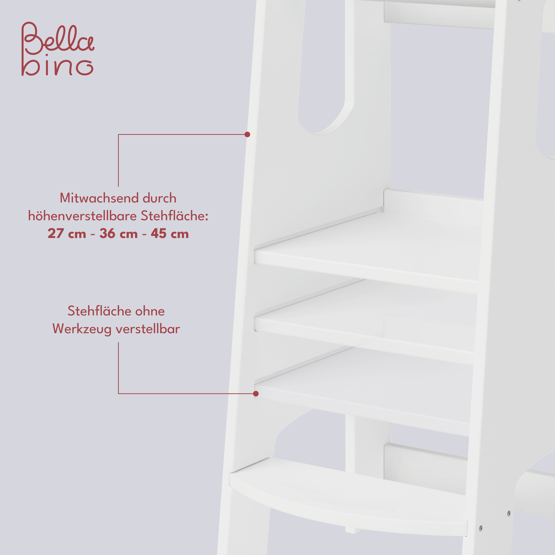 Mit dem Lernturm 'Luni' schenken Sie Ihrem Baby eine praktische und optisch ansprechende Lösung, um in den Familienalltag schneller integriert zu werden. Ganz gleich, ob in der Küche, am Esstisch, im Bad oder Kinderzimmer - der Lernturm von Bellabino erweist sich als ein zuverlässiger Begleiter mit zahlreichen Einsatzmöglichkeiten.