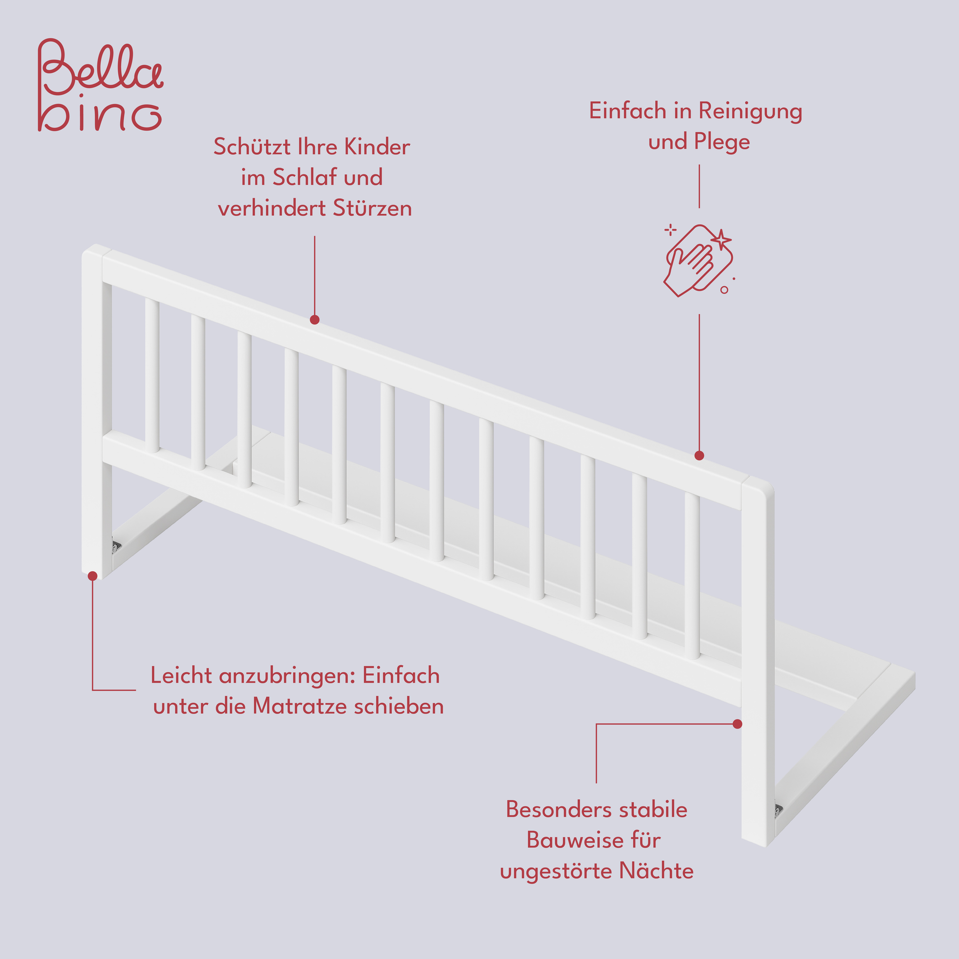 Yuna Bettschutzgitter, 37 x 90 x 33 cm, weiß lackiert, Kiefer Massivholz