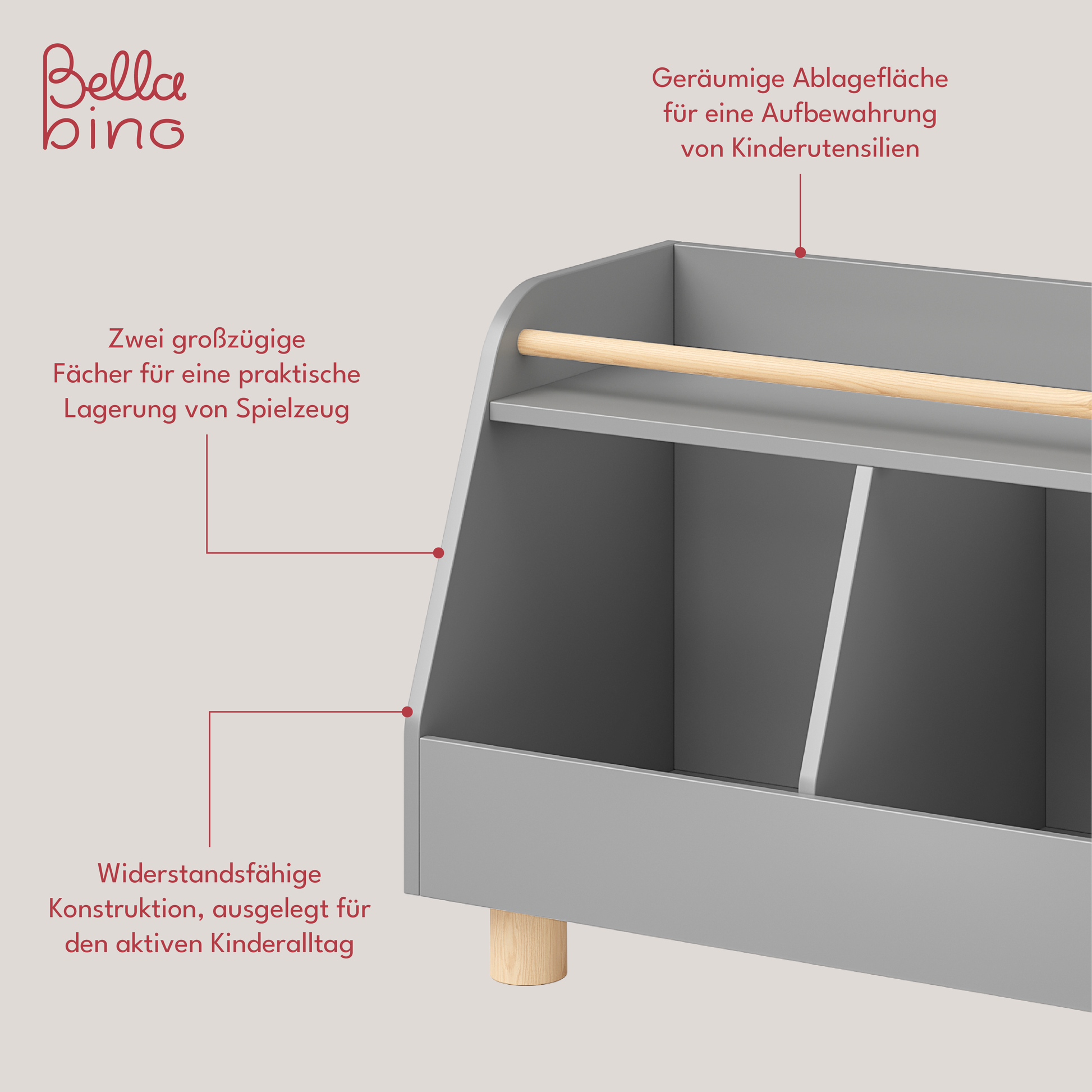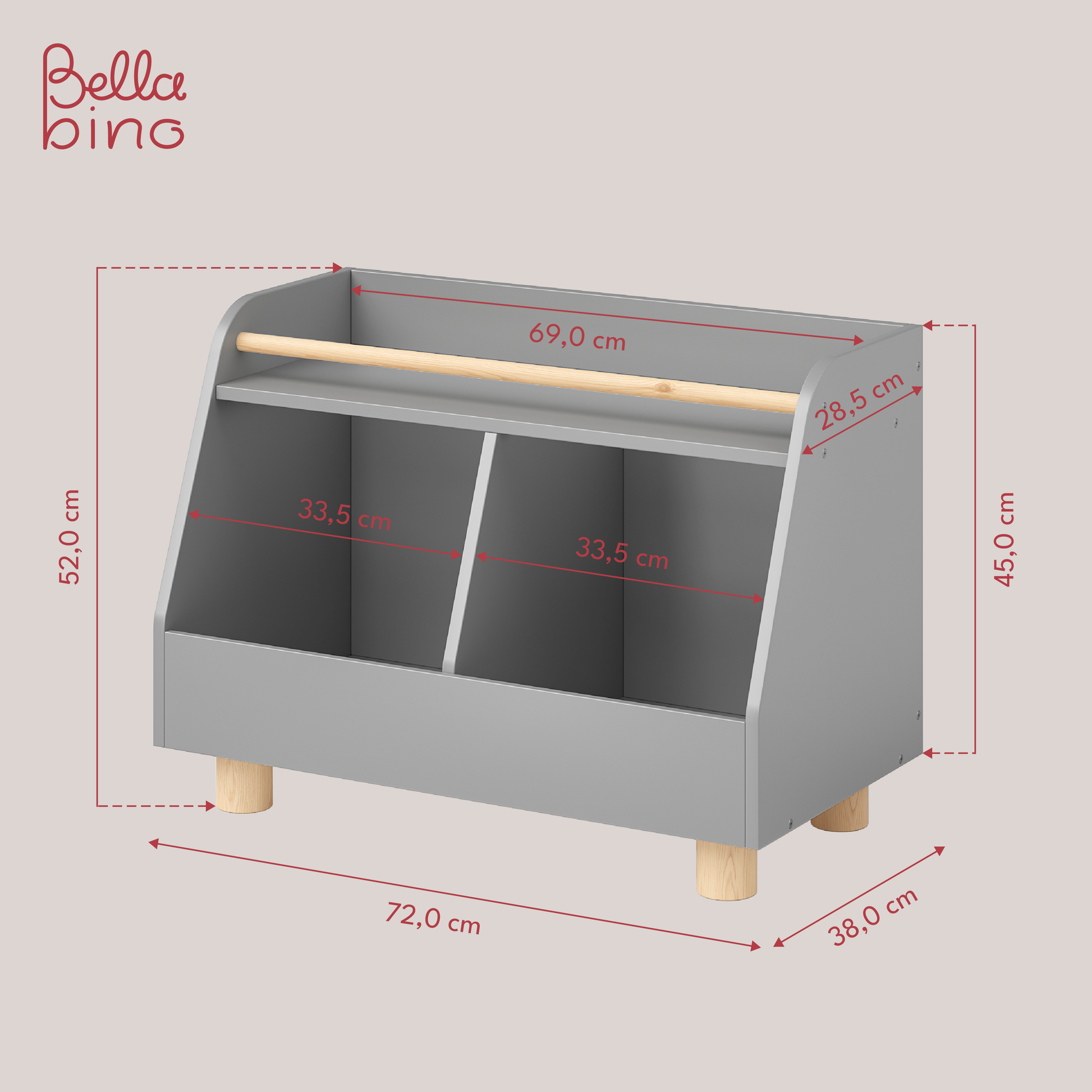 Belly Kinderregal, mit 2 Fächern für Spielzeug, grau/natur, 72 x 52 x 38 cm (BxHxT)