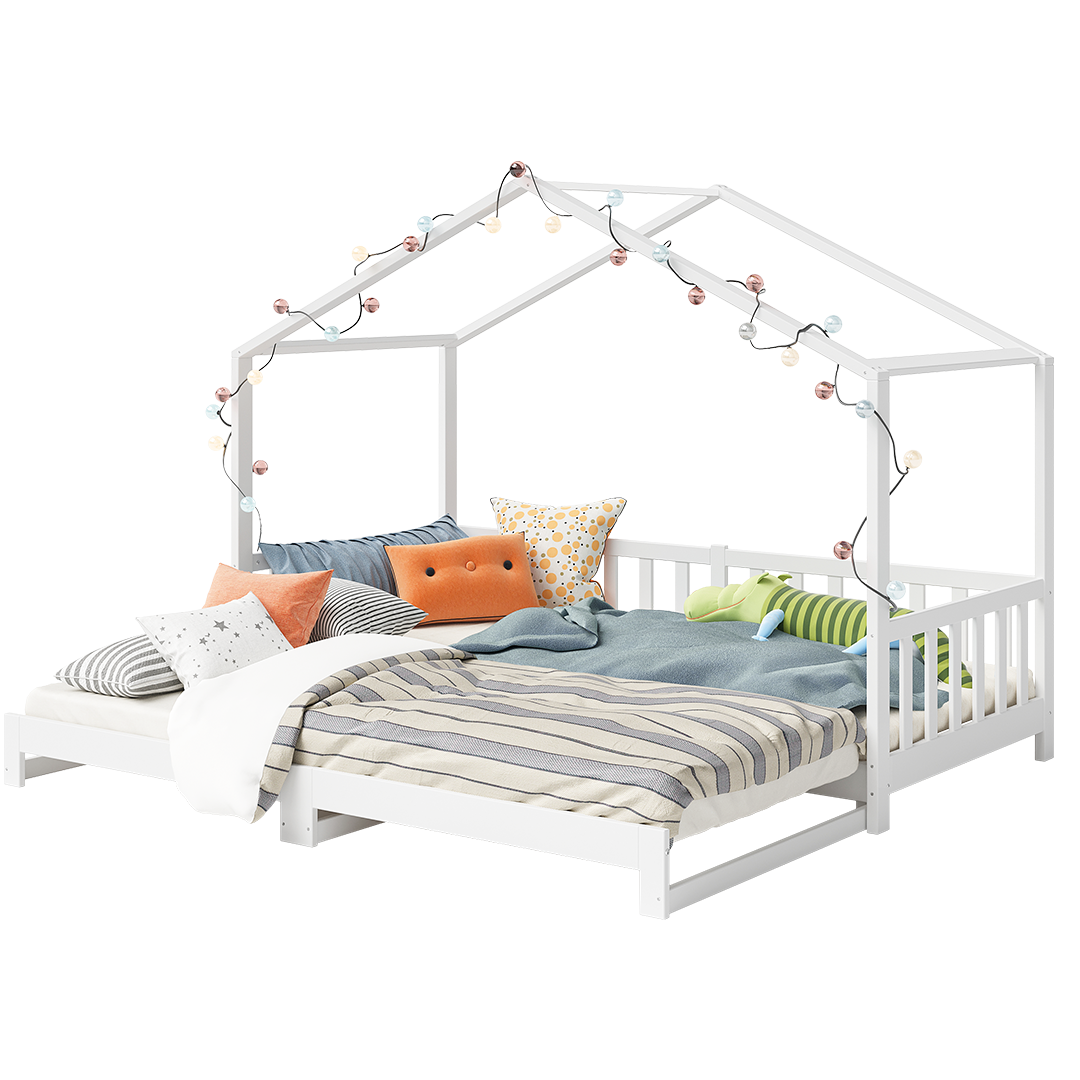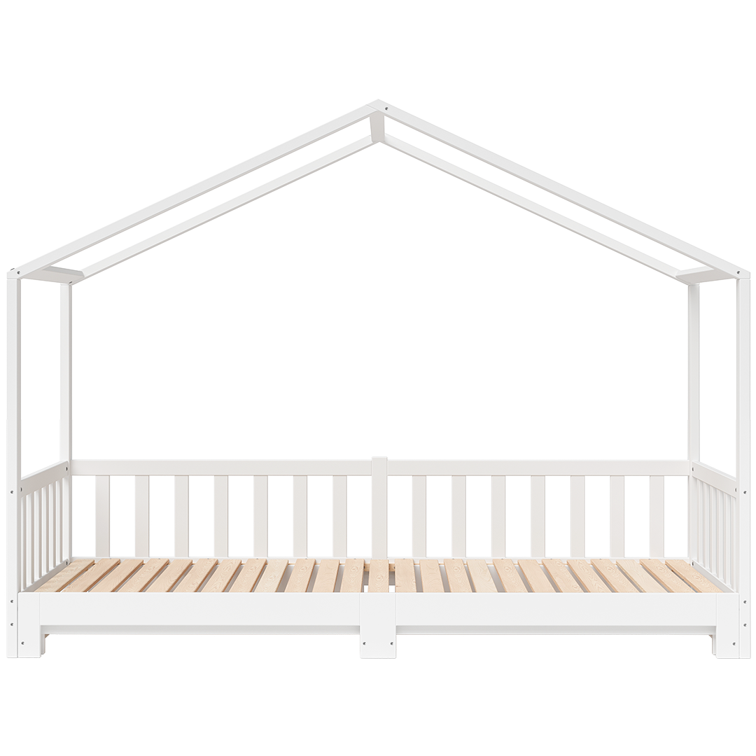 Bia Hausbett inkl. Lattenrost, ausziehbar, 90x200/180x200 cm, Kiefer massiv, weiß lackiert