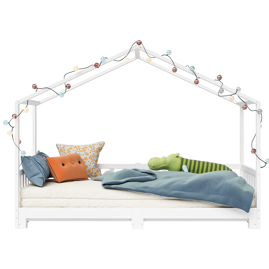 Dank der hochwertigen Materialien und soliden Verarbeitung bietet das Hausbett 'Bia' nicht nur eine langlebige und stabile Schlafmöglichkeit, sondern auch ein sicheres und geborgenes Umfeld für Ihr Kind. Lassen Sie sich von der Kombination aus Funktionalität und Design begeistern und verwandeln Sie das Kinderzimmer in einen Ort, der sowohl zum Spielen als auch zum Träumen einlädt.