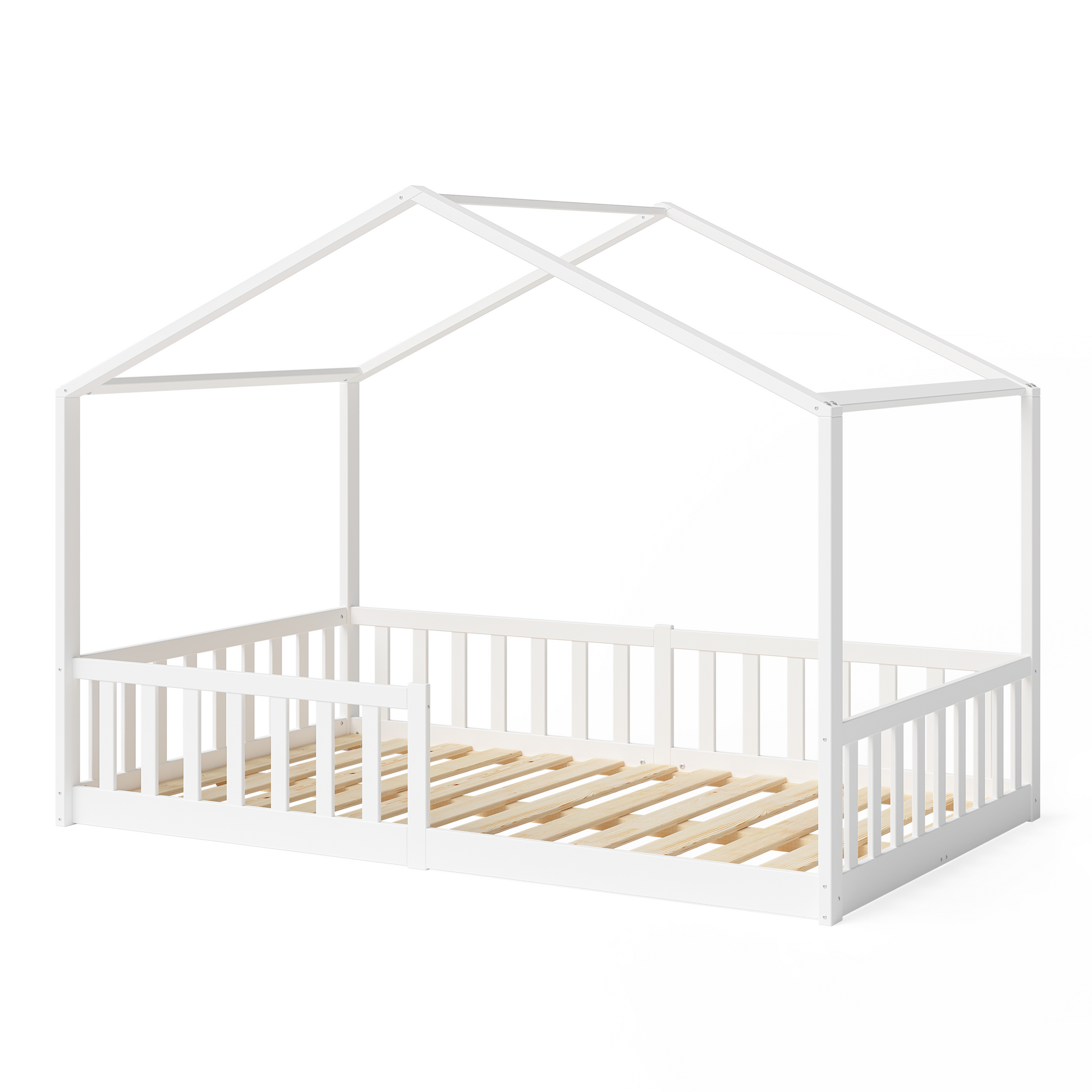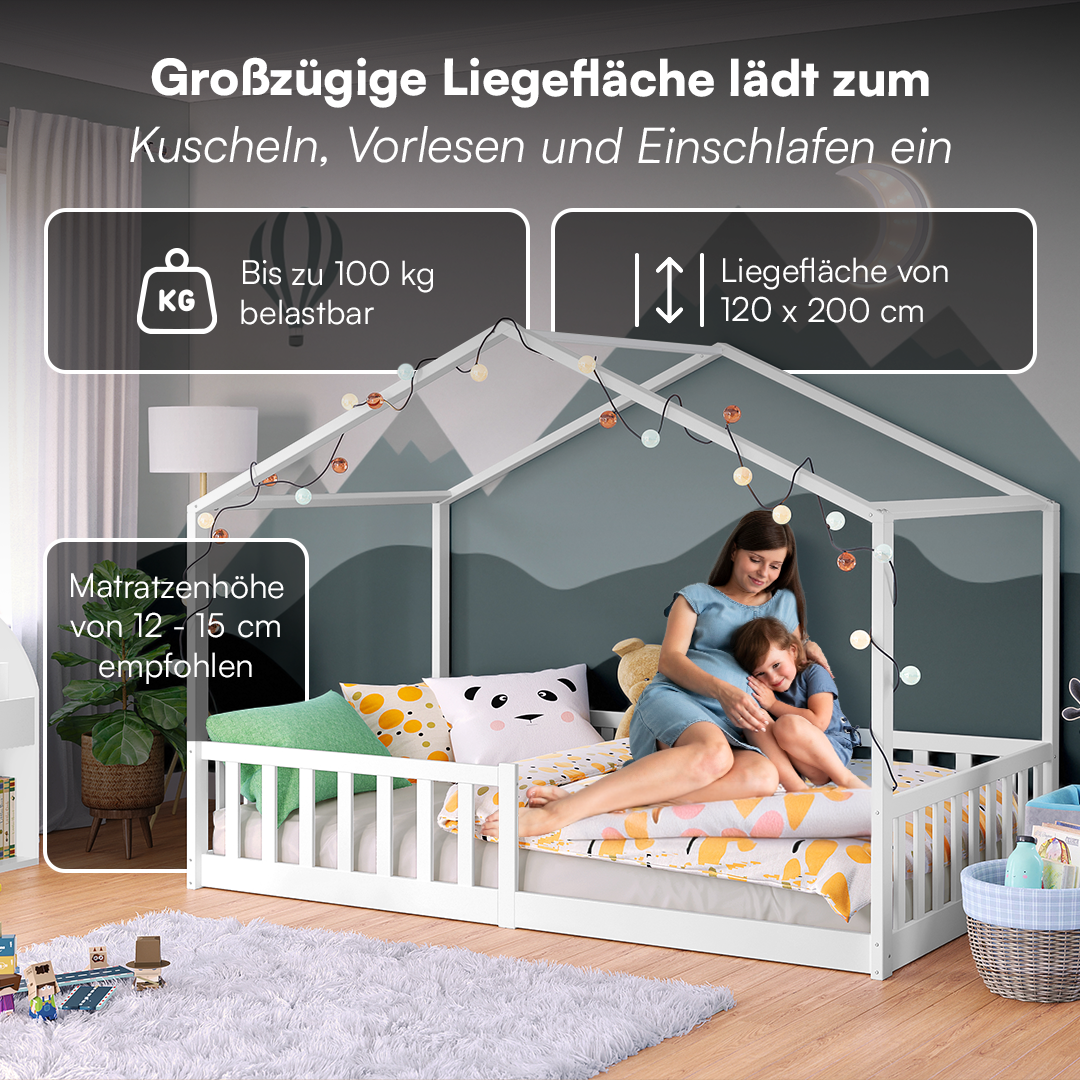 Bia Hausbett inkl. Lattenrost und Rausfallschutz, 120x200 cm, weiß lackiert, mit Matratze