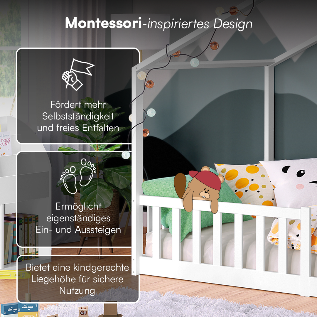 - Lieferumfang: Hausbett inkl. Rausfallschutz, Matratze und Lattenrost
