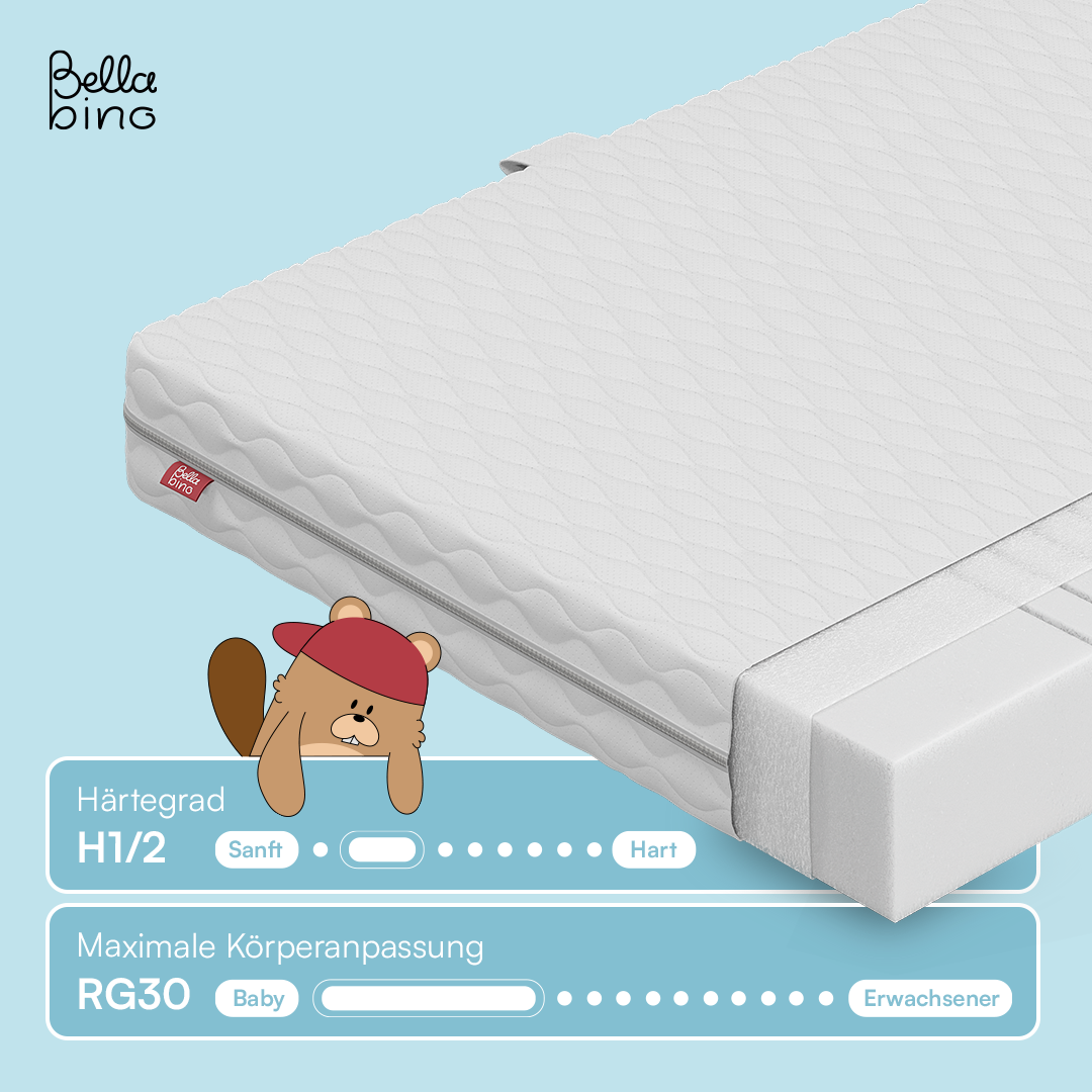 - Babyseite ohne Zonenprofil: Perfekt für die Kleinsten (1,5 - 2,5 Jahre). Die glatte Oberfläche und die höhere Festigkeit verhindern das Einsinken, was mehr Sicherheit beim Schlafen bietet.