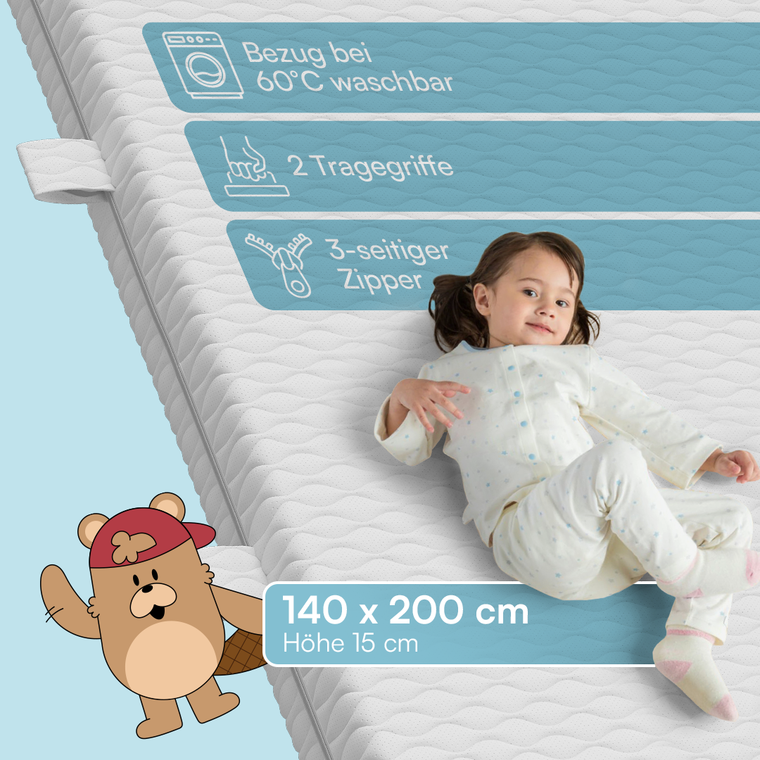 - Kinderseite mit 7-Zonen-Schnitt: Ab 2,5 Jahren sorgt die ergonomische Zonierung für optimale Anpassung und Unterstützung der Wirbelsäule bis ins Teenageralter.
