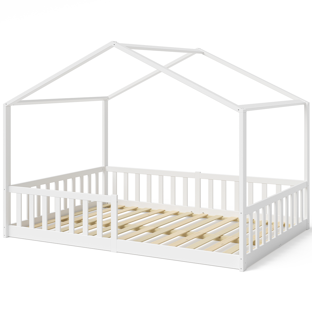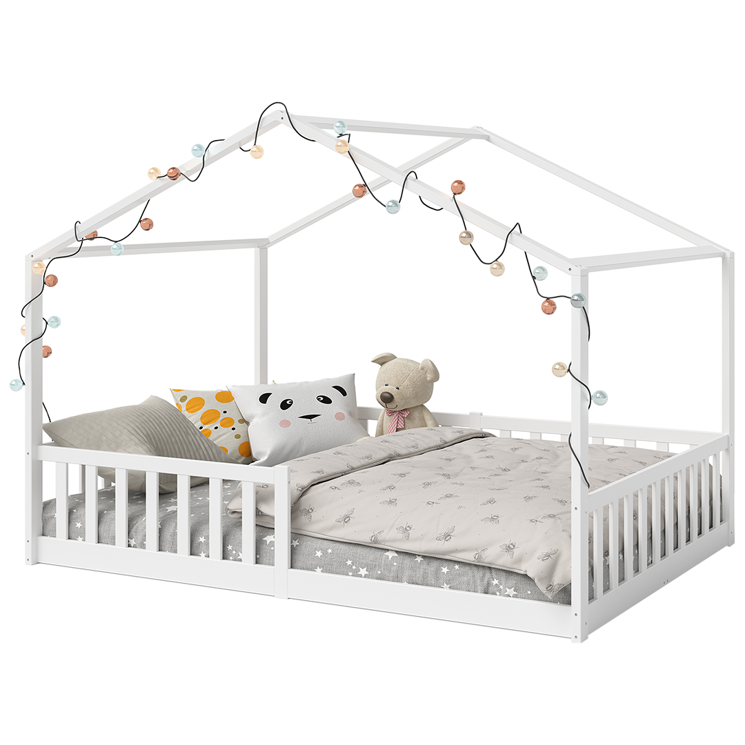 Bia Hausbett inkl. Lattenrost und Rausfallschutz, 140x200 cm, weiß lackiert