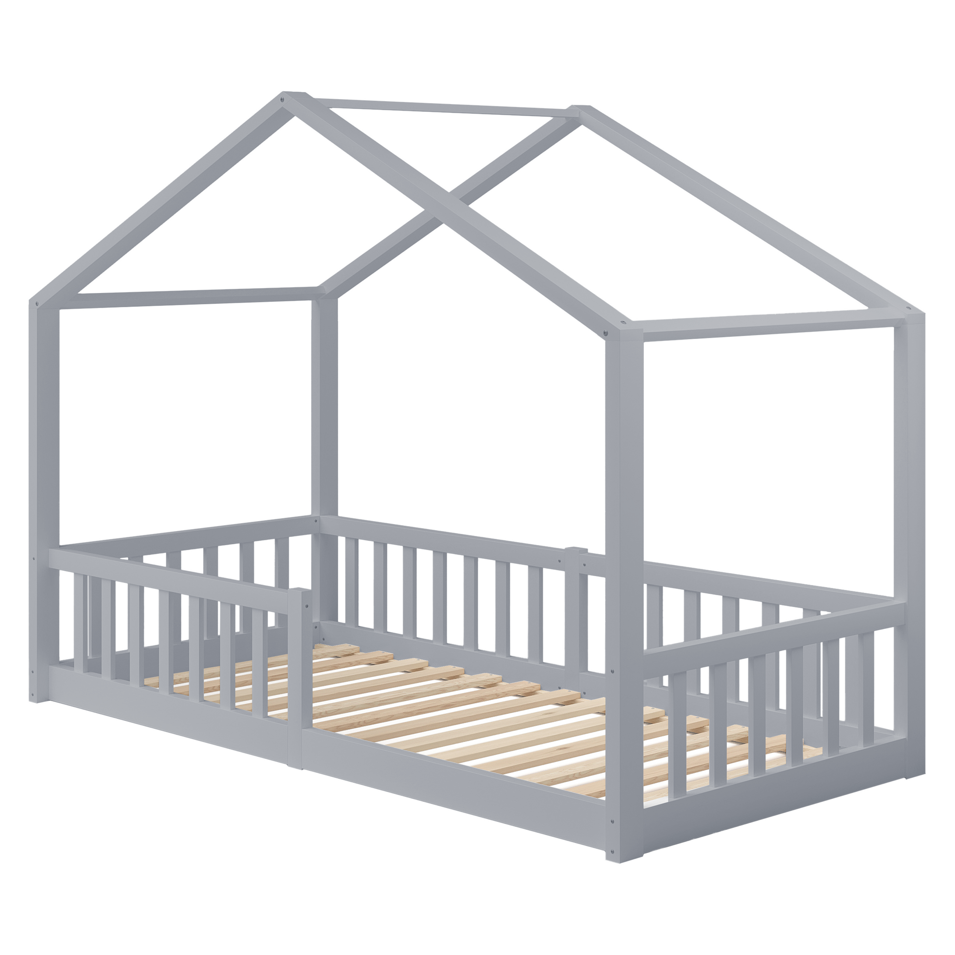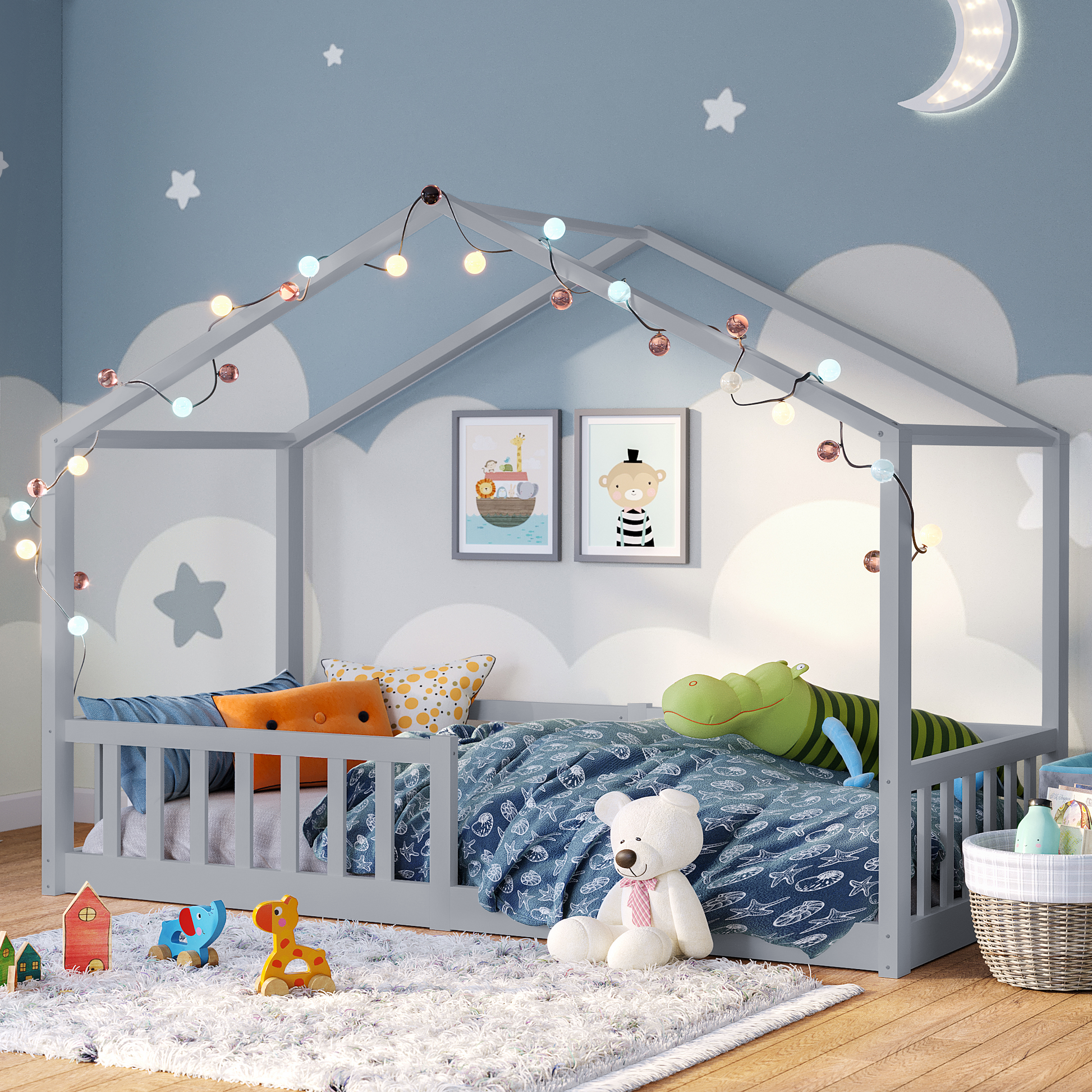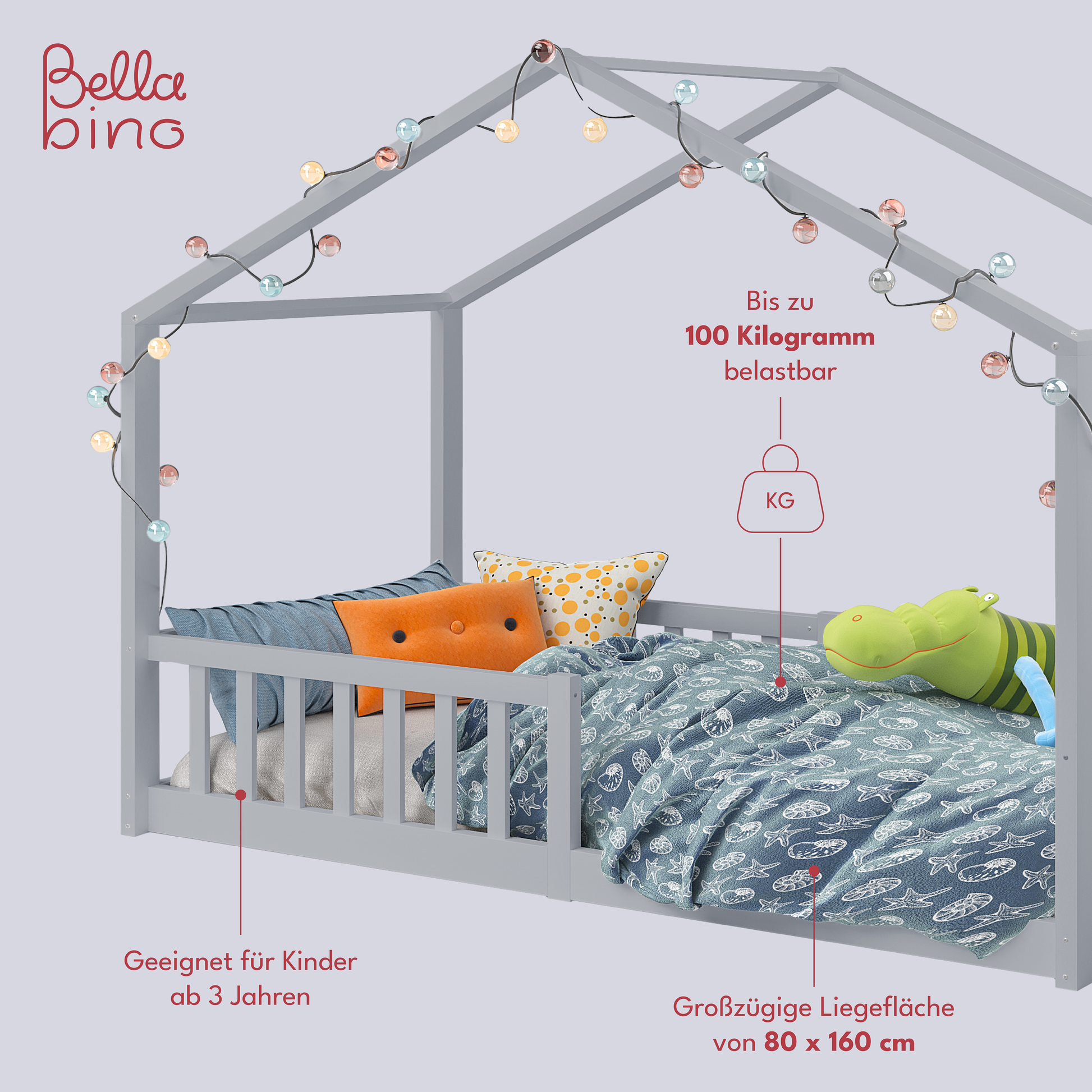 Bia Hausbett inkl. Lattenrost und Rausfallschutz, 80x160 cm, hellgrau lackiert