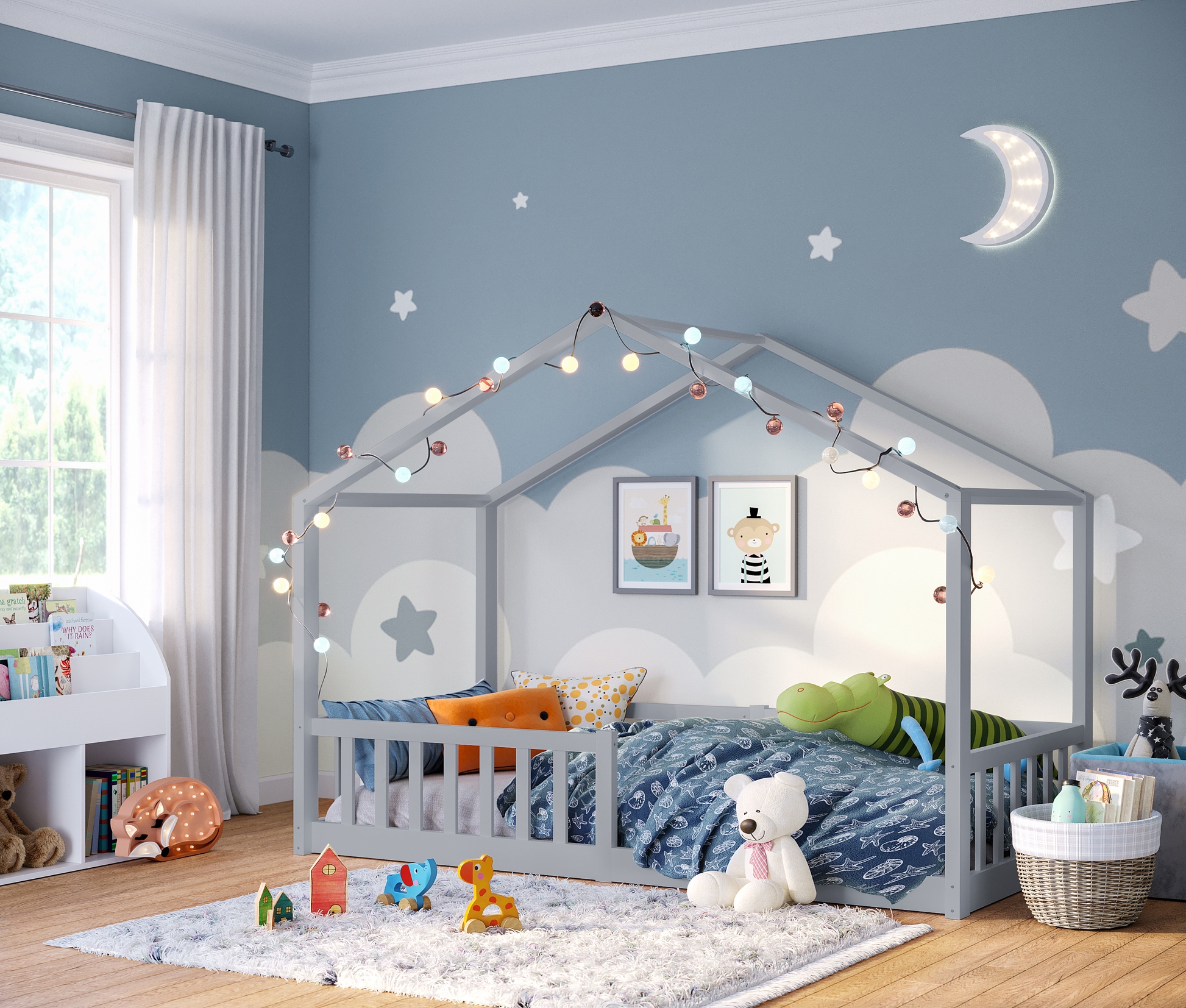 Das Bellabino Hausbett 'Bia' ist die ideale Schlafmöglichkeit für Kinder ab 3 Jahren, die aus ihrem Babybett herausgewachsen sind und in ein richtiges Kinderbett umziehen möchten. Dieses Kinderbett wird direkt auf den Boden gelegt, was eine niedrige Betthöhe ermöglicht und es den Kindern leicht macht, eigenständig einzusteigen, ohne auf die Hilfe der Eltern angewiesen zu sein.