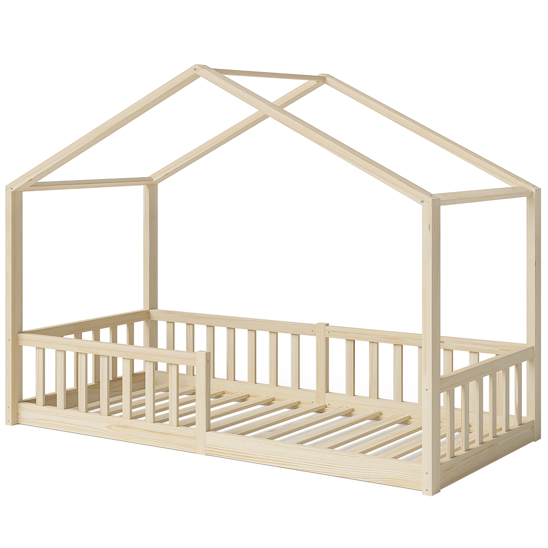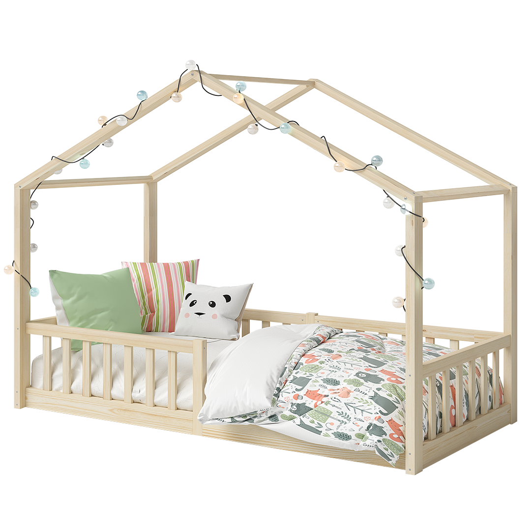 Bia Hausbett inkl. Lattenrost und Rausfallschutz, 90x200 cm, natur lackiert
