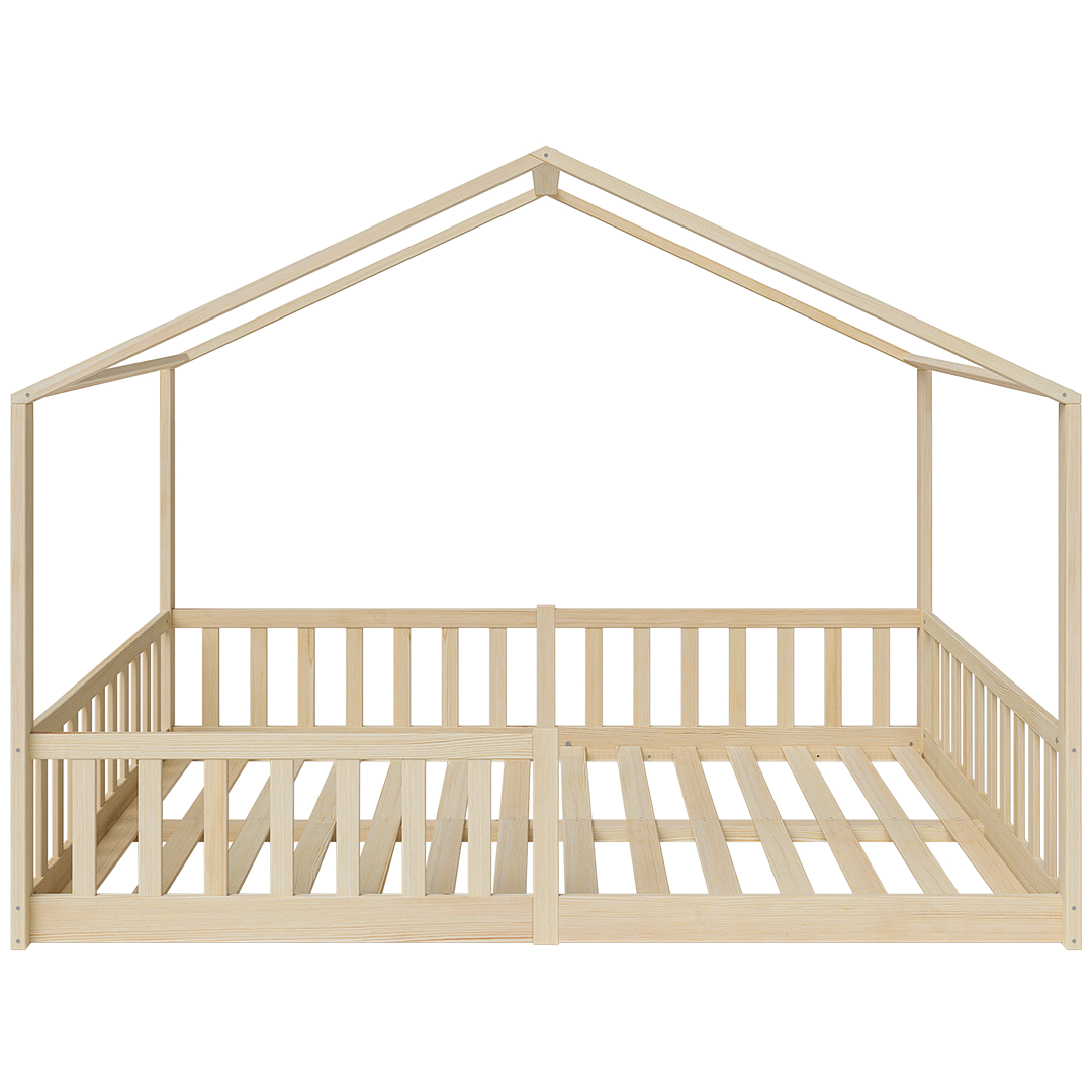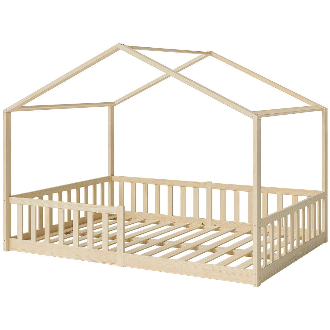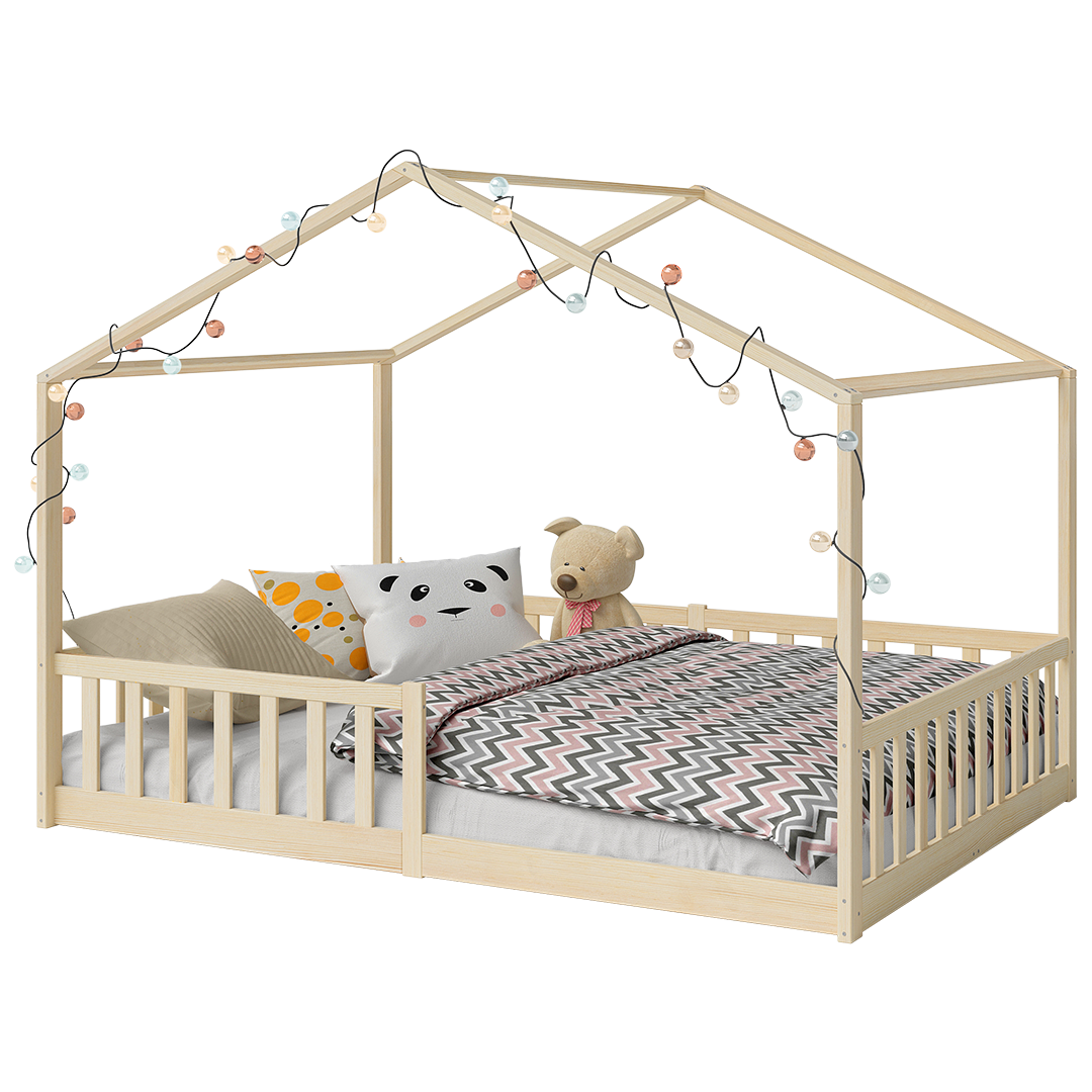 Bia Hausbett inkl. Lattenrost und Rausfallschutz, natur lackiert, Kiefer massiv, 140x200 cm