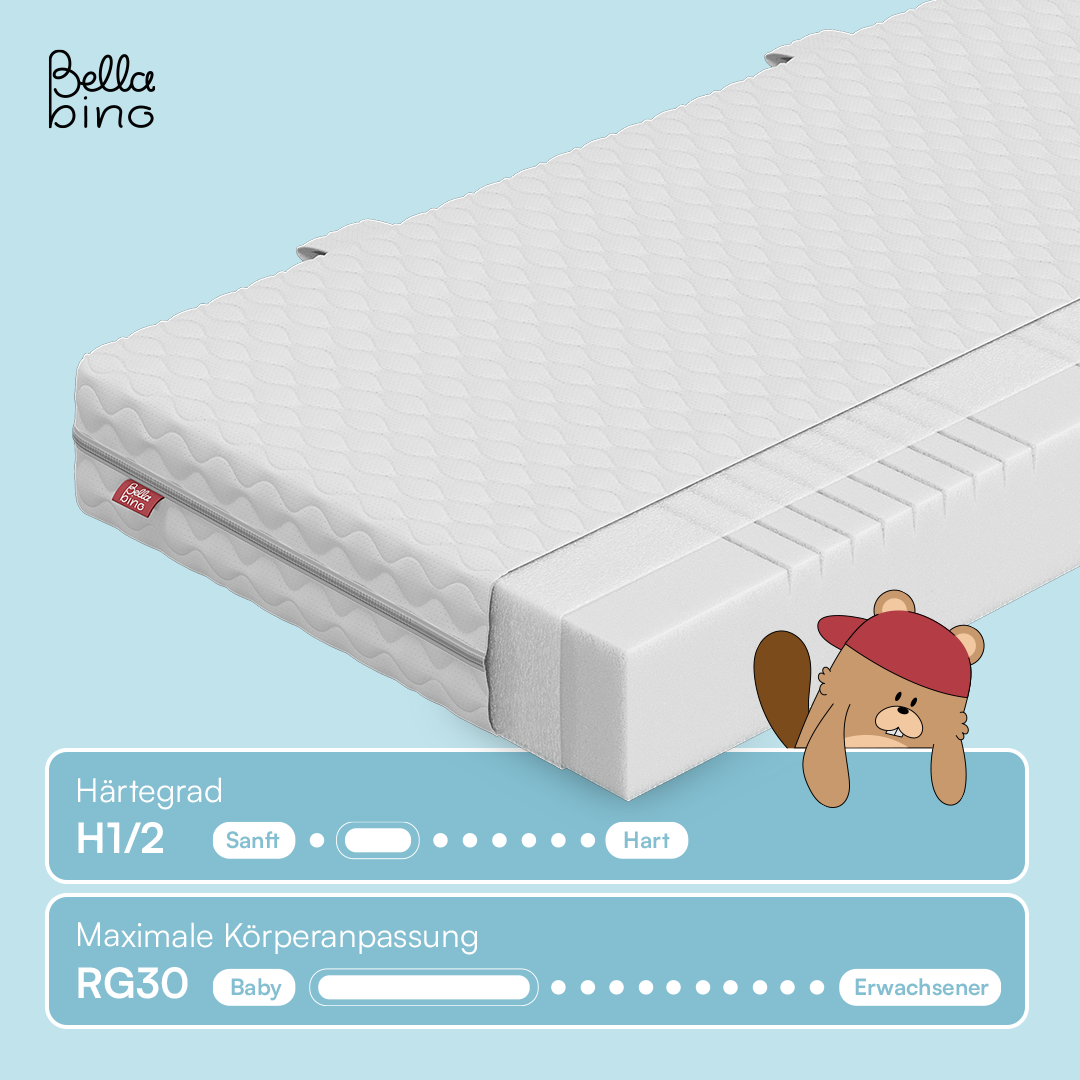 - Babyseite ohne Zonenprofil: Perfekt für die Kleinsten (1,5 - 2,5 Jahre). Die glatte Oberfläche und die höhere Festigkeit verhindern das Einsinken, was mehr Sicherheit beim Schlafen bietet.