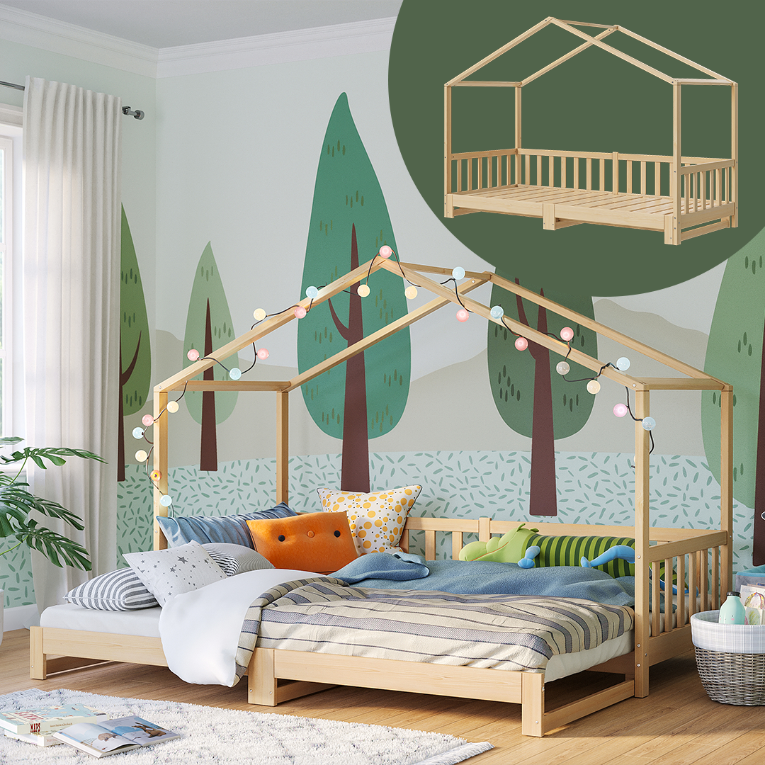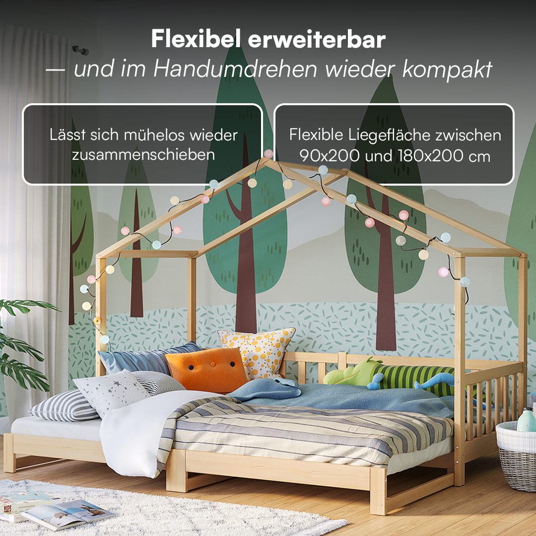 Bia Hausbett, natur, 90x200 cm/180x200 cm, ausziehbar
