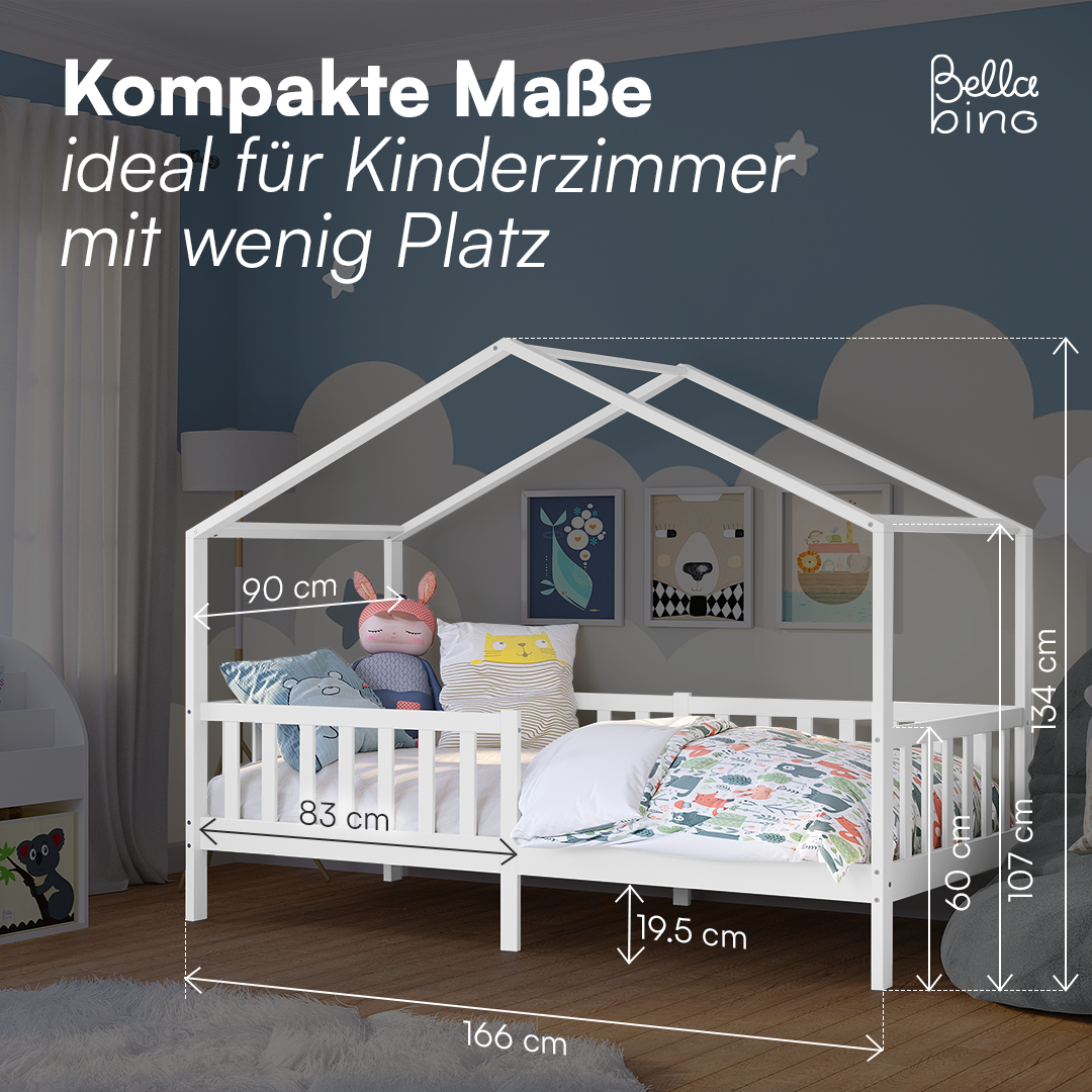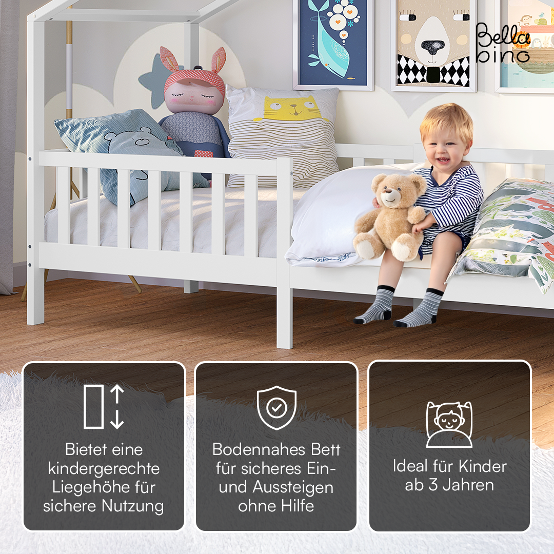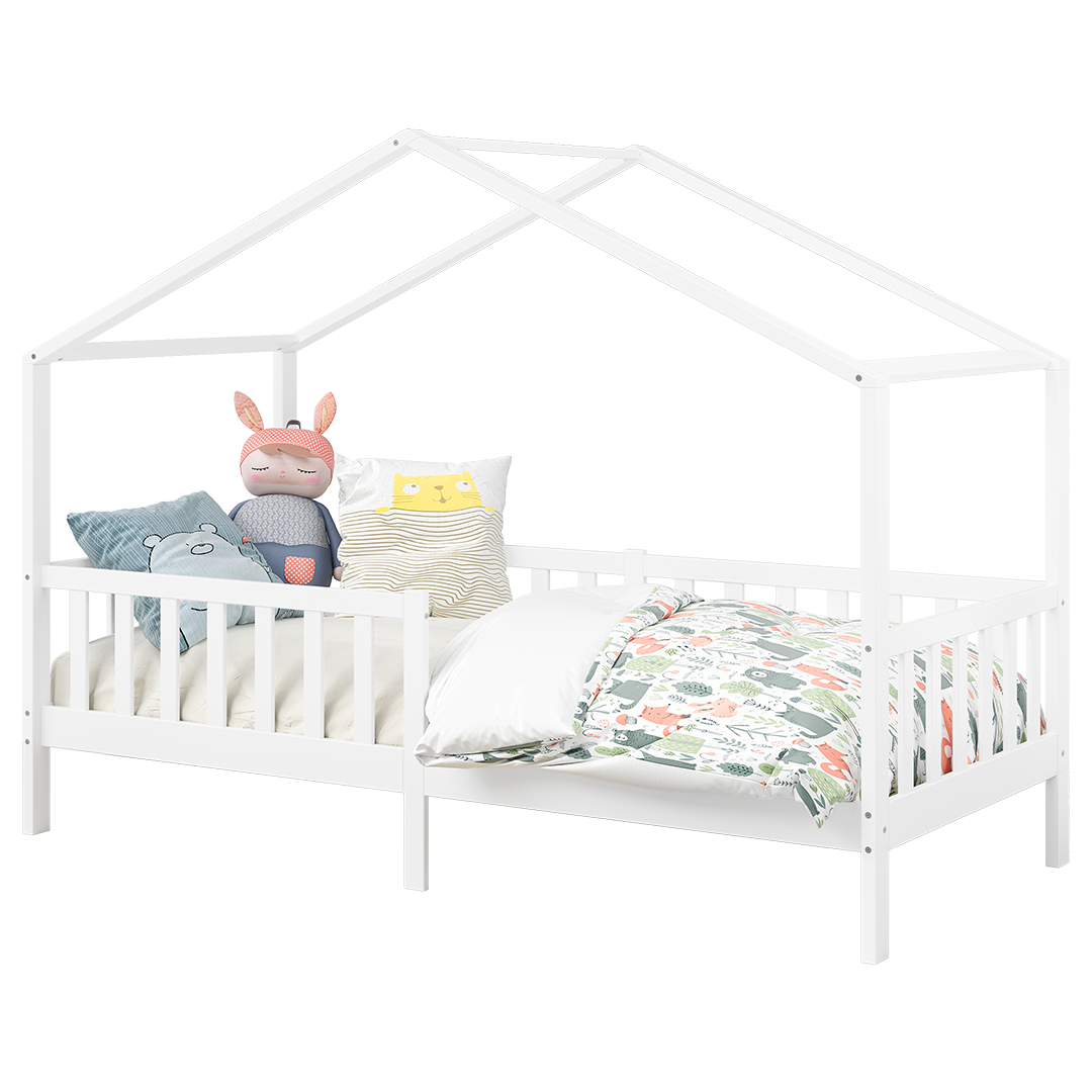 Bia Hausbett ohne Schubladen inkl. Lattenrost und Rausfallschutz, 80x160 cm, weiß lackiert