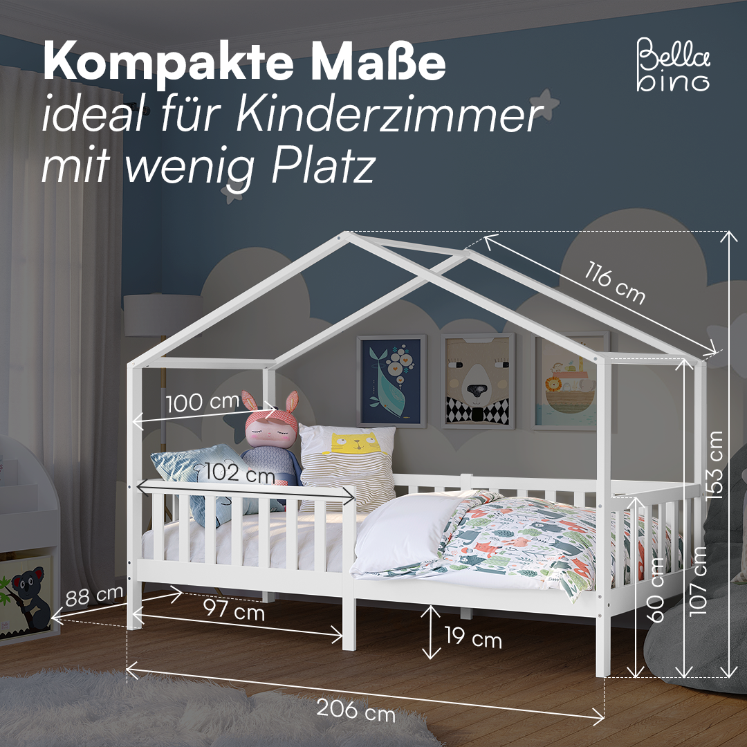 Das Hausbett 'Bia' von Bellabino bietet Kindern eine gemütliche und sichere Schlafmöglichkeit. Mit seiner charmanten Hausform wird es schnell zum Hingucker im Kinderzimmer und passt zu jedem Einrichtungsstil.