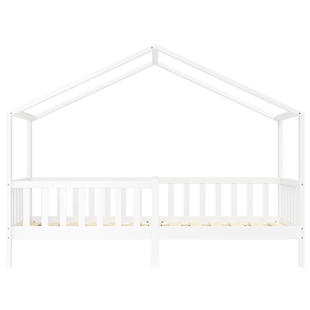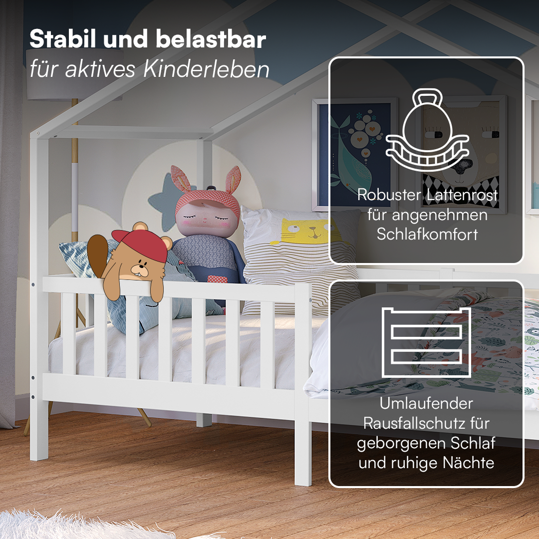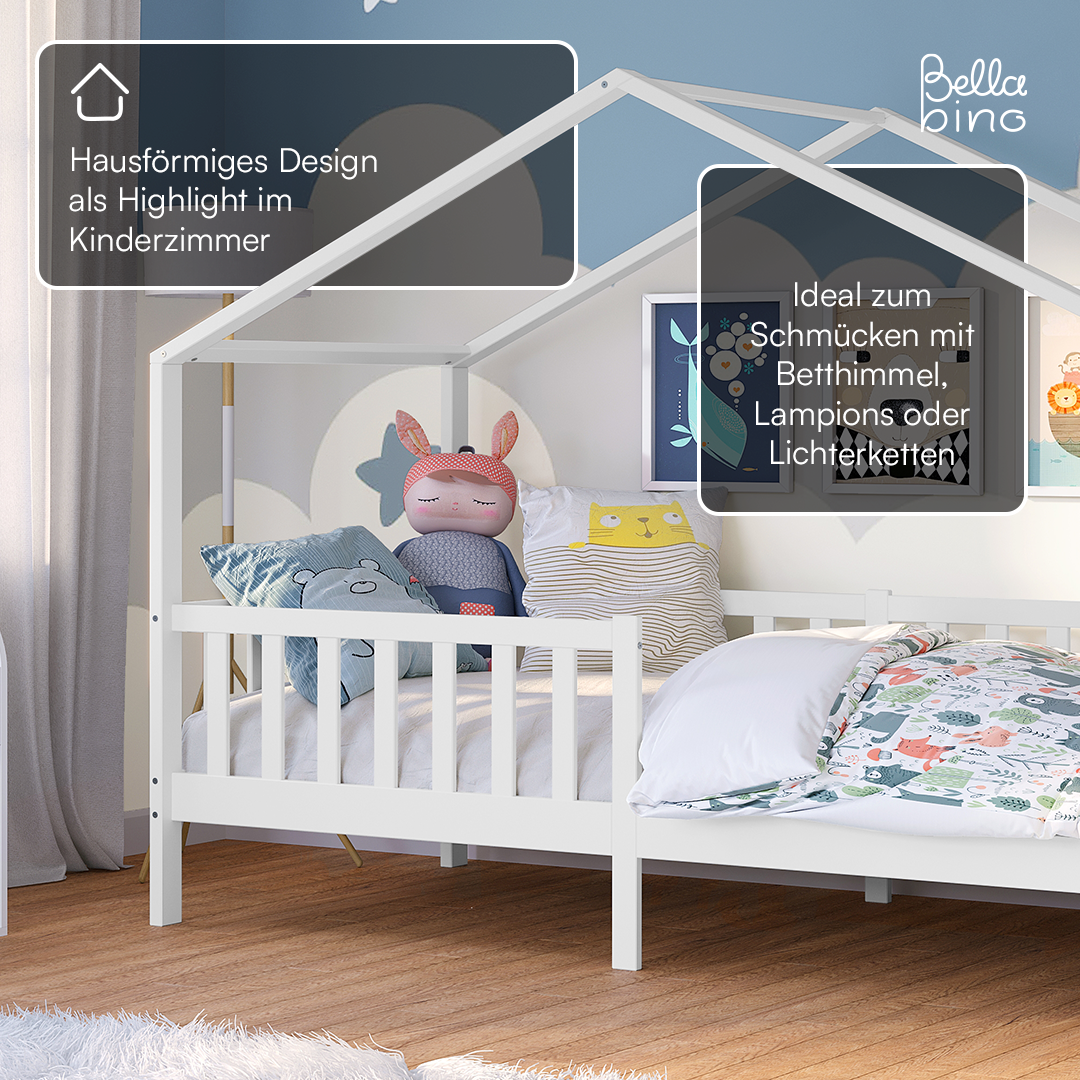Bia Hausbett ohne Schubladen inkl. Lattenrost und Rausfallschutz, 90x200 cm, weiß lackiert