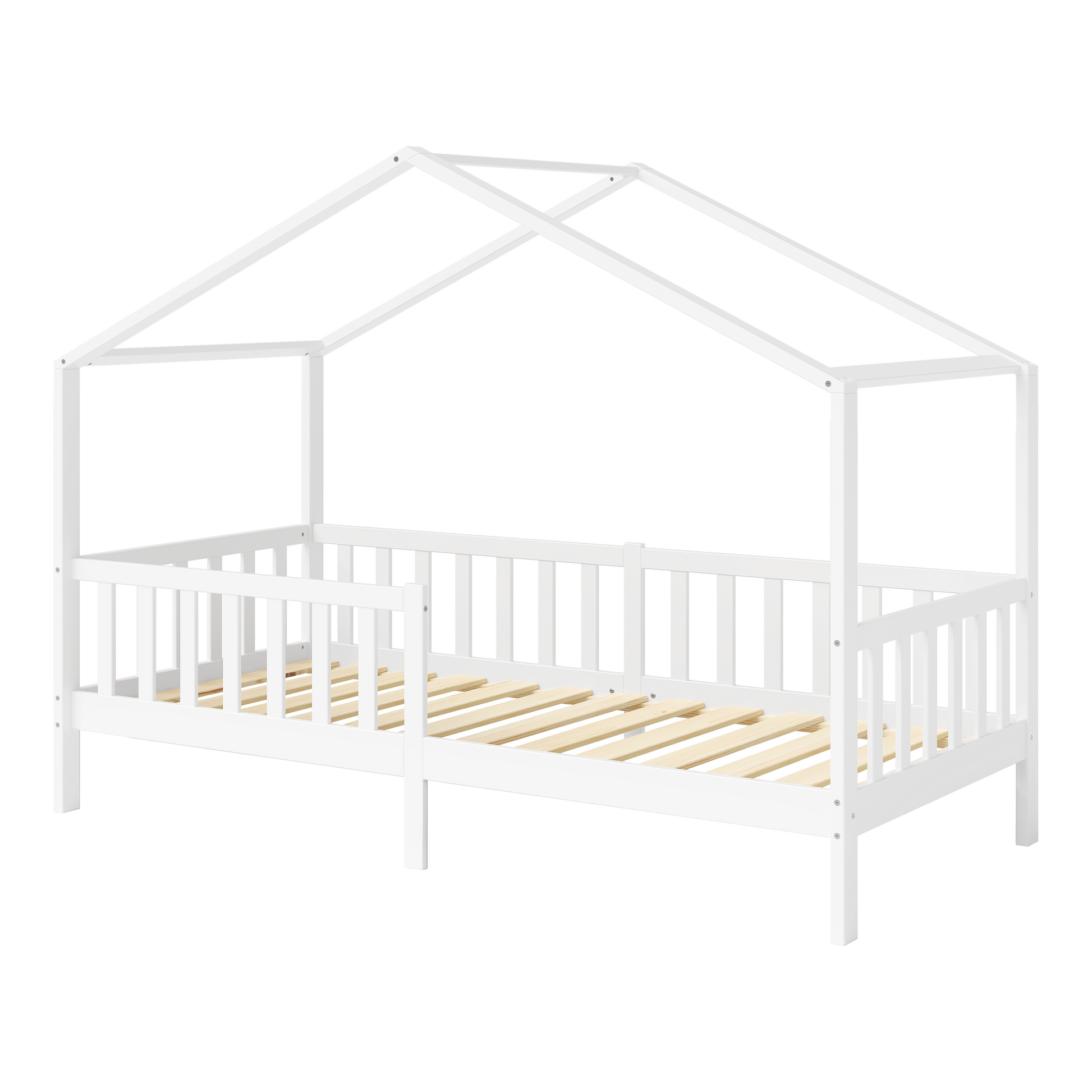 Bia Hausbett ohne Schubladen inkl. Lattenrost und Rausfallschutz, 90x200 cm, weiß lackiert, mit Matratze