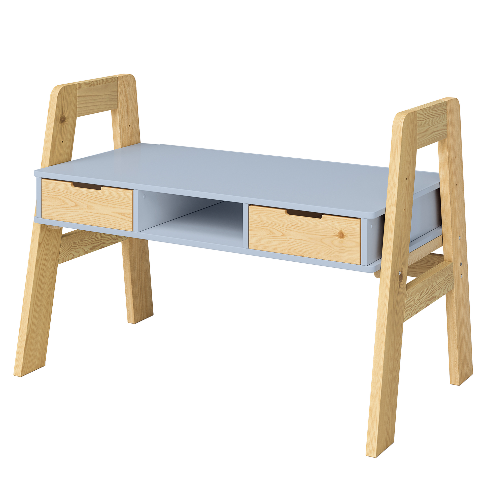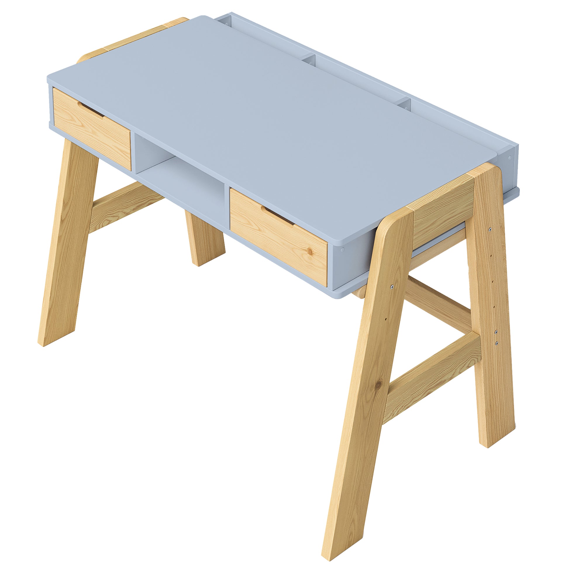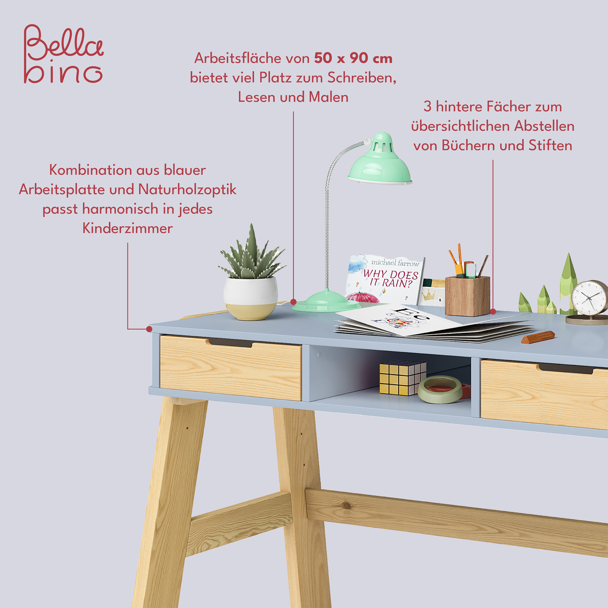 Campo Kinderschreibtisch, blau/natur, 4-fach höhenverstellbar, mit 2 Schubladen, 1 Ablagefach und 3 Aufbewahrungsfächern, 75 x 63 x 93 cm