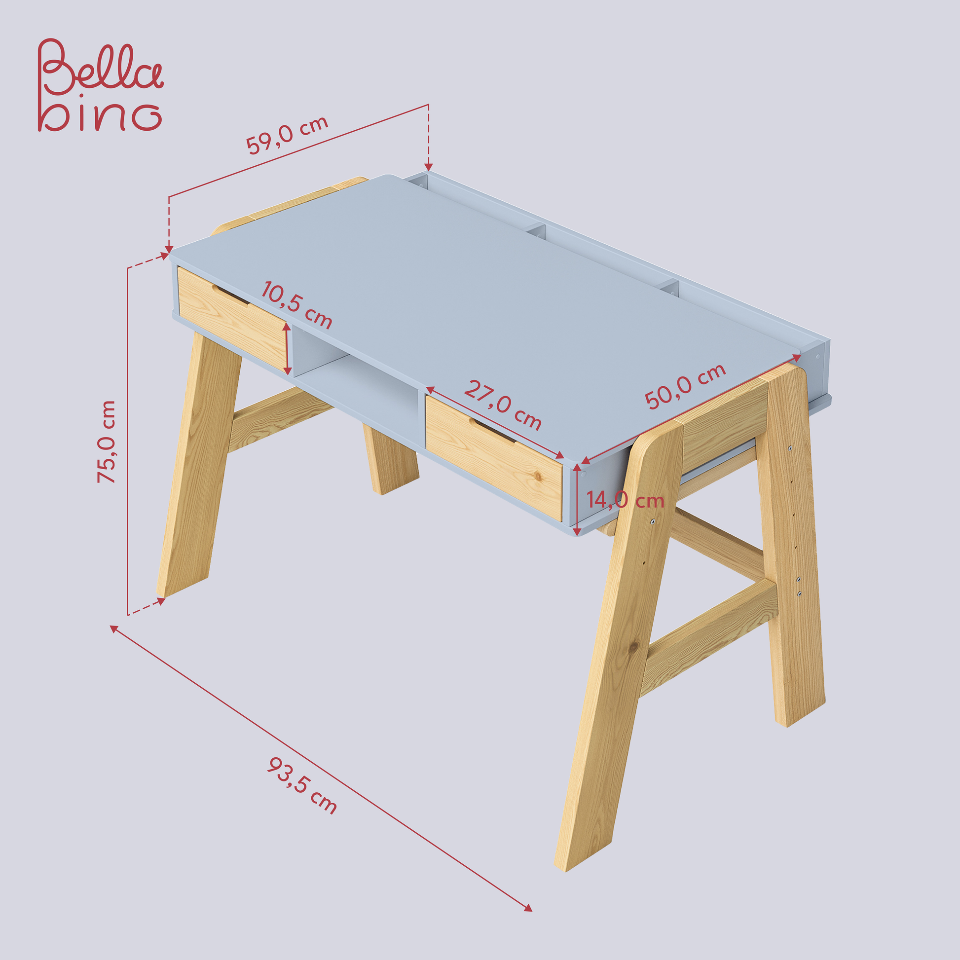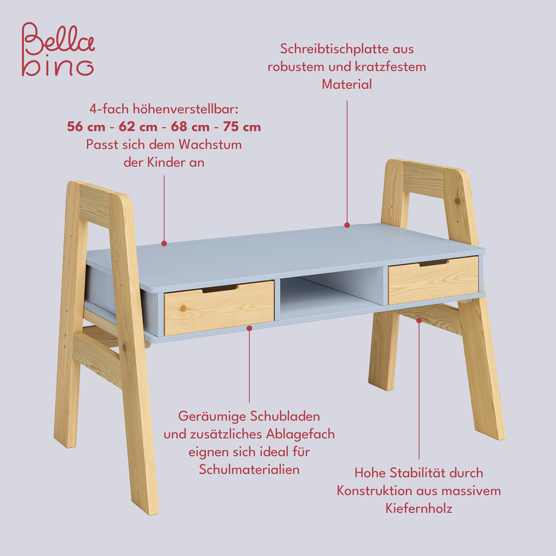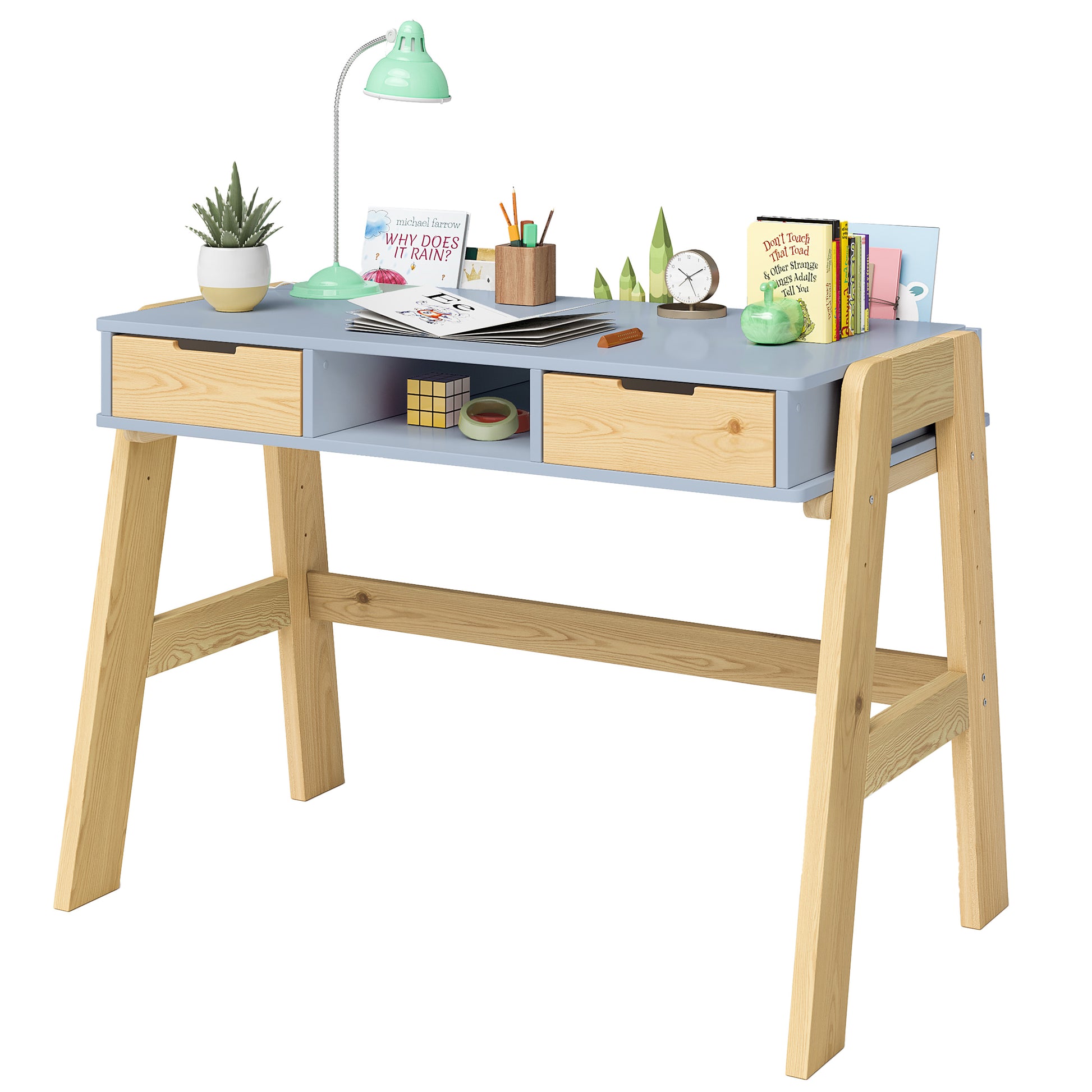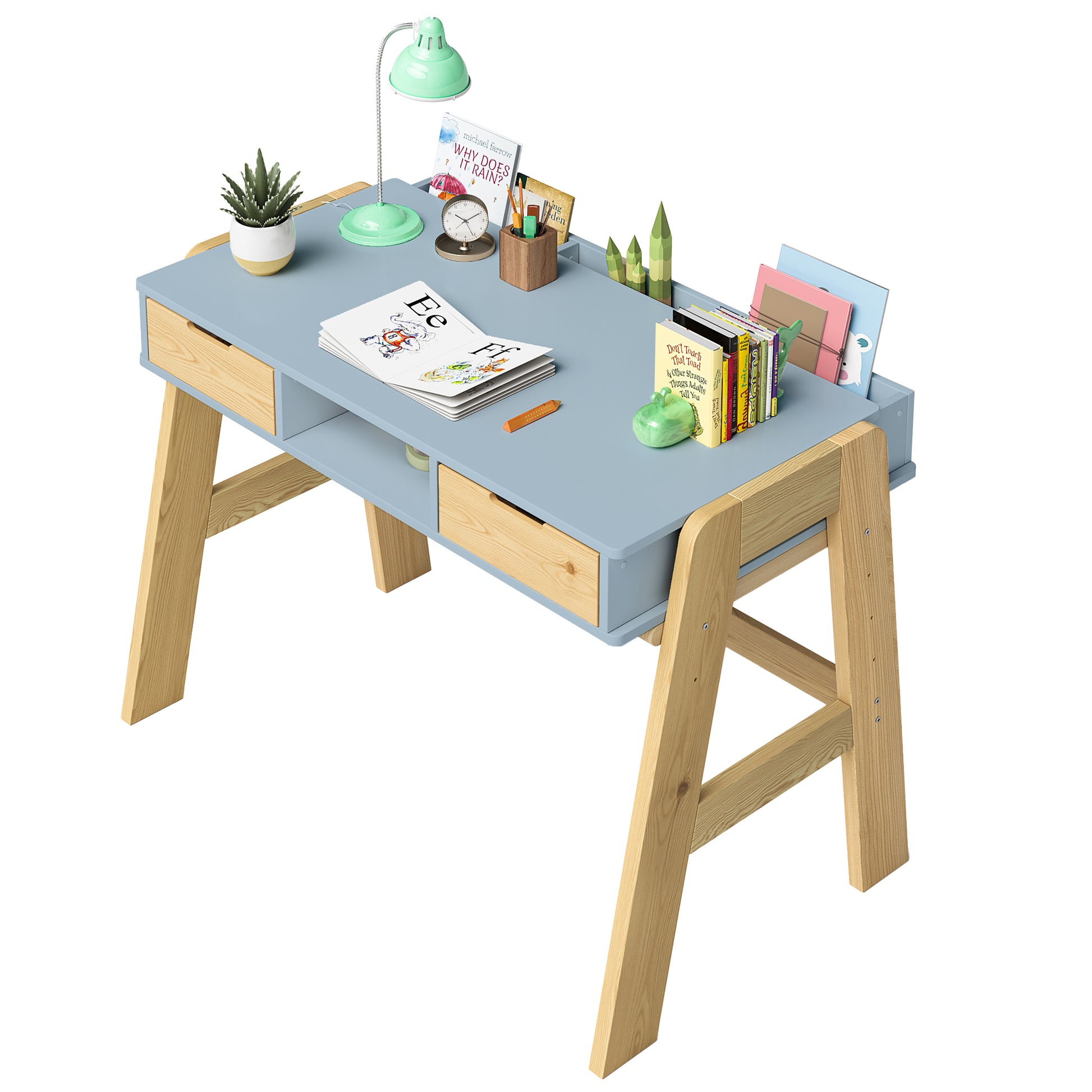 Campo Kinderschreibtisch, blau/natur, 4-fach höhenverstellbar, mit 2 Schubladen, 1 Ablagefach und 3 Aufbewahrungsfächern, 75 x 63 x 93 cm