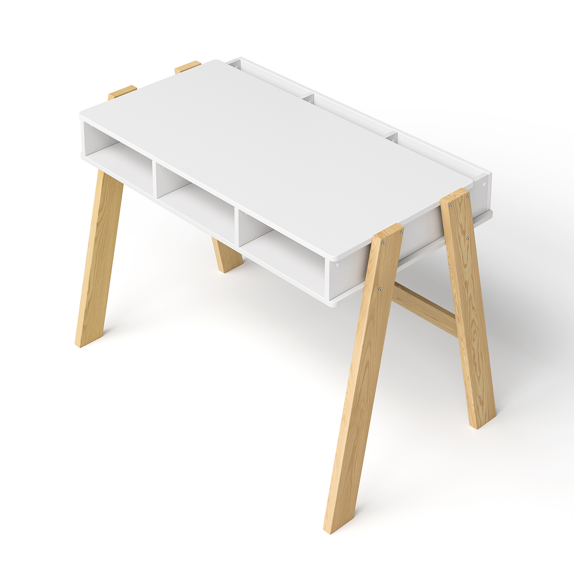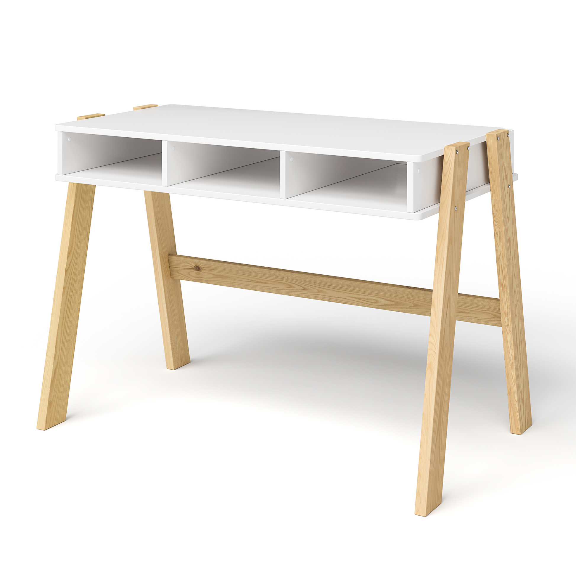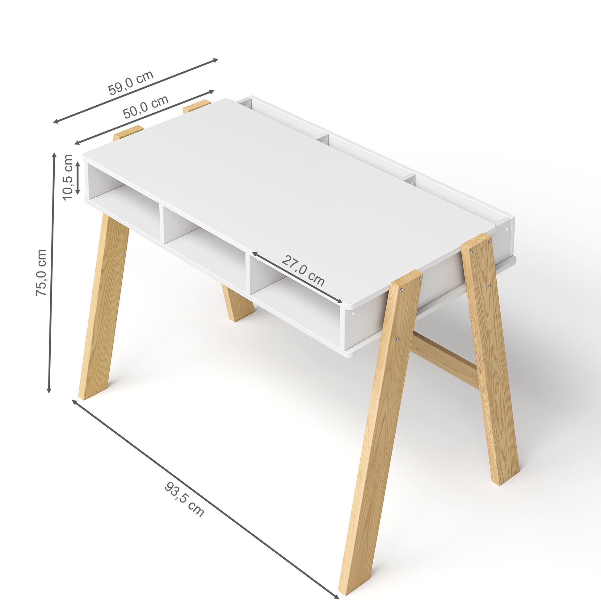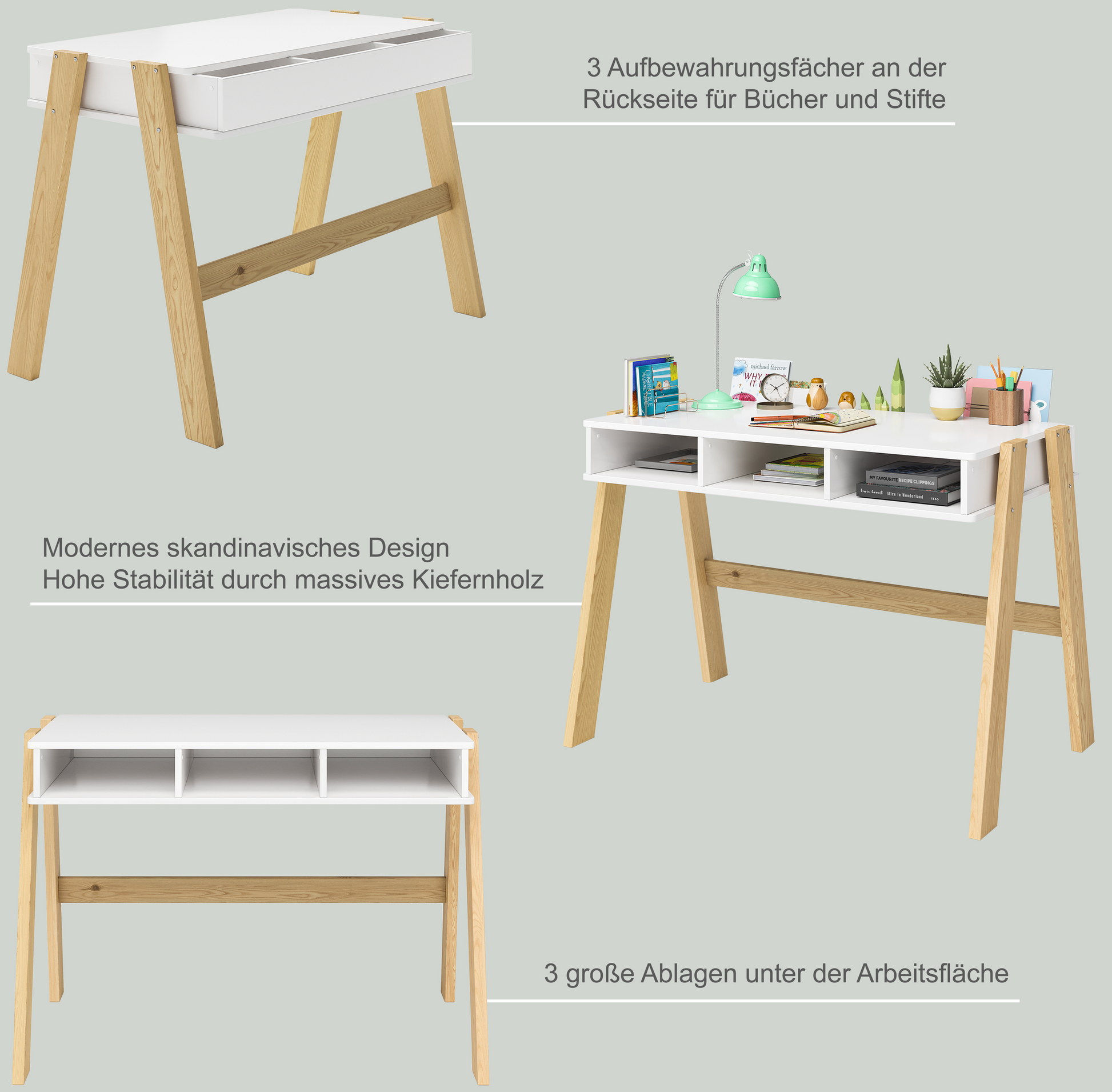 Campo Kinderschreibtisch, weiß/natur, mit 3 Ablagefächern und 3 Aufbewahrungsfächern, 75 x 59 x 93 cm