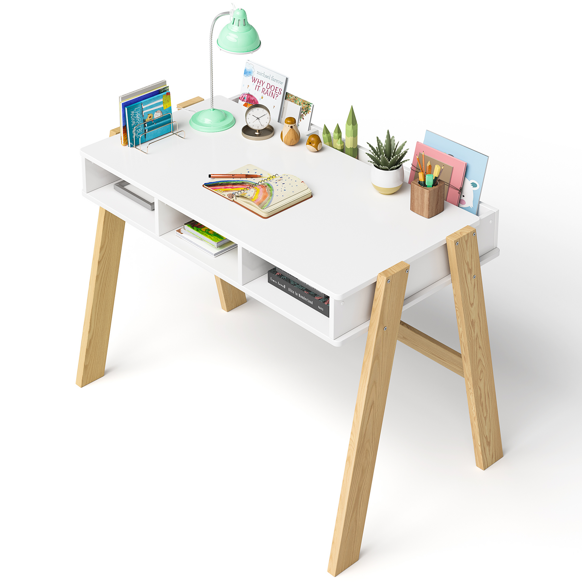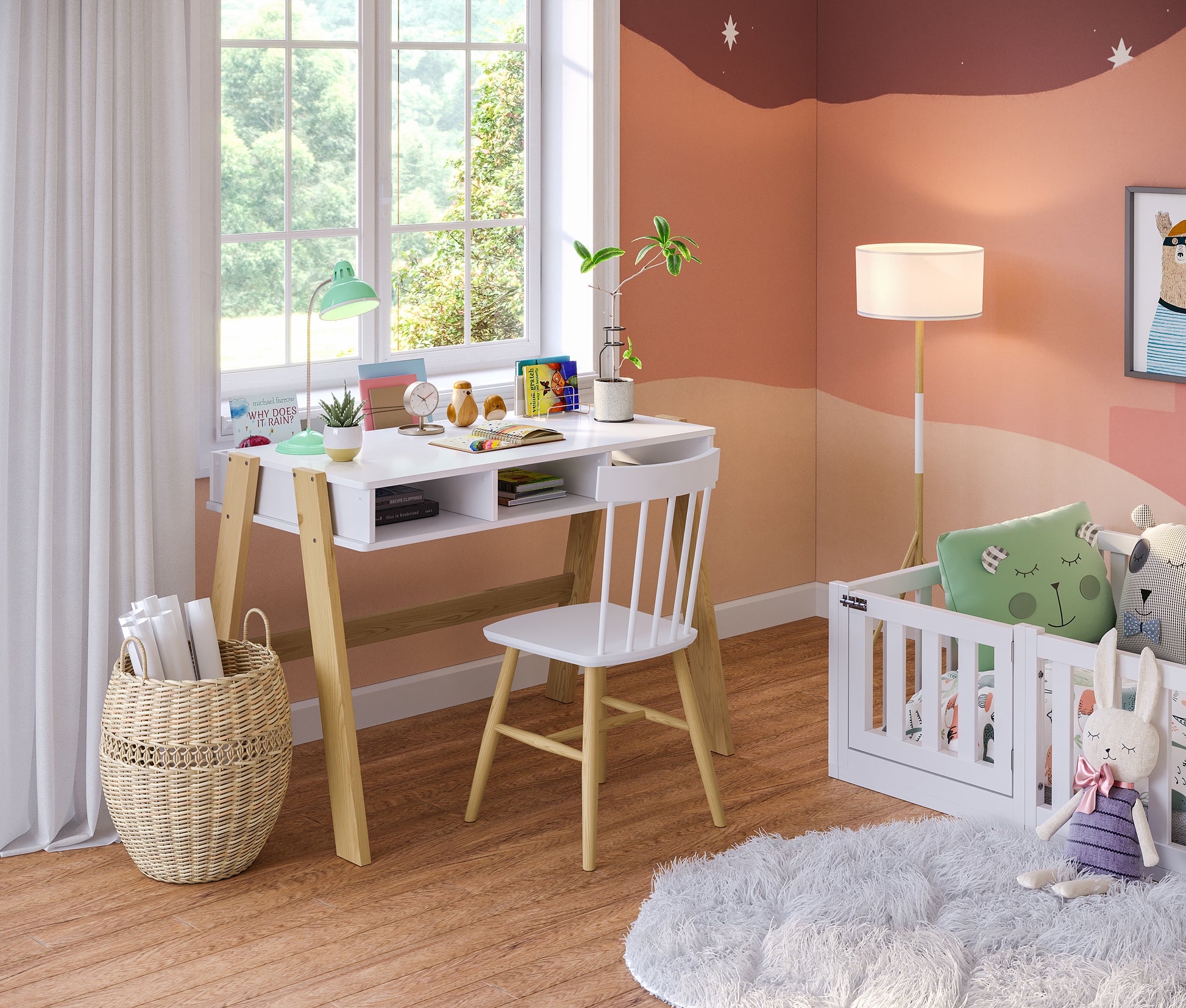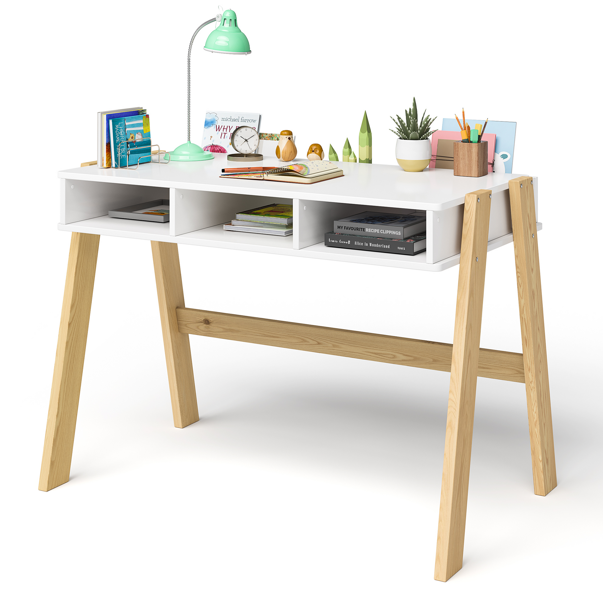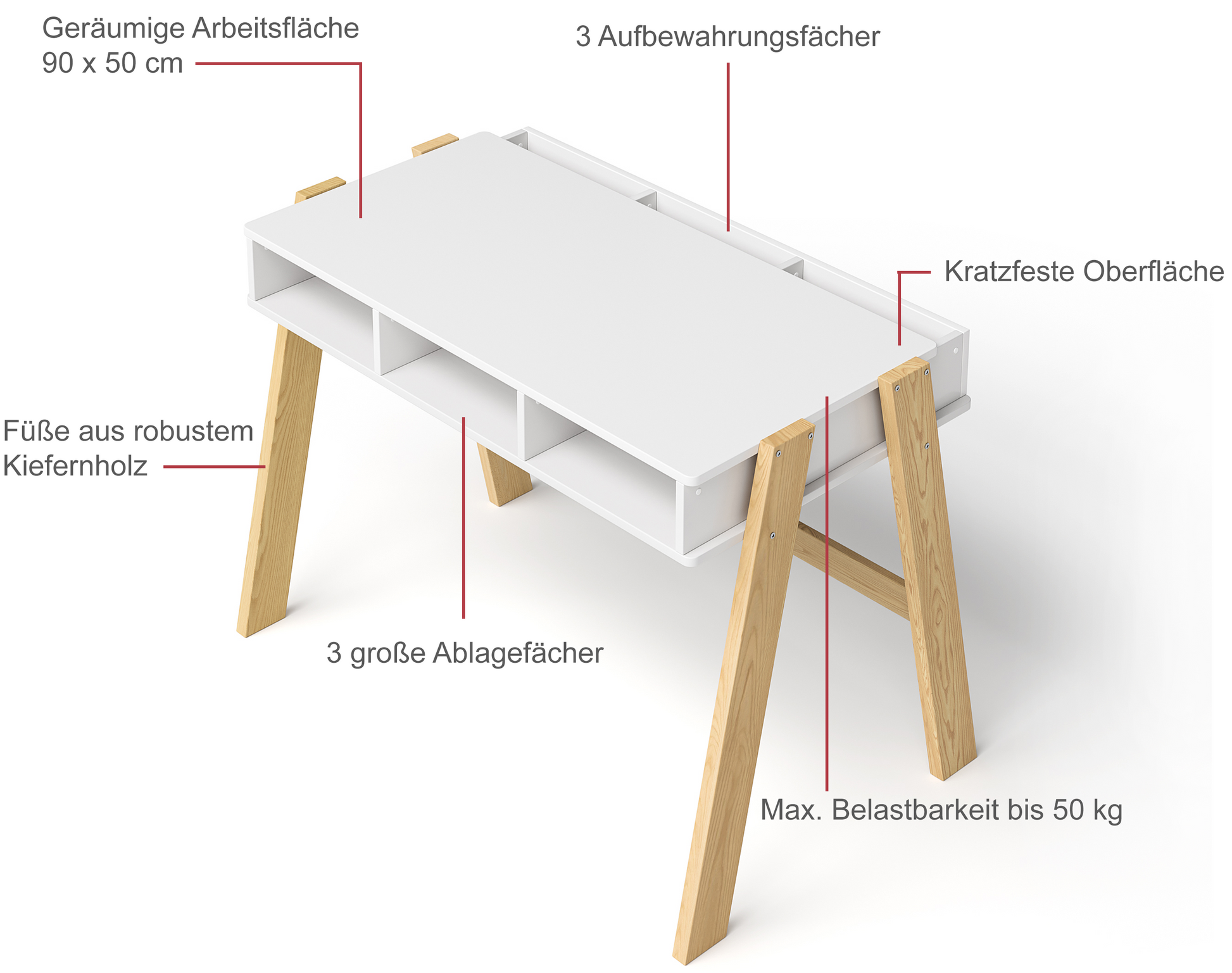 Campo Kinderschreibtisch, weiß/natur, mit 3 Ablagefächern und 3 Aufbewahrungsfächern, 75 x 59 x 93 cm