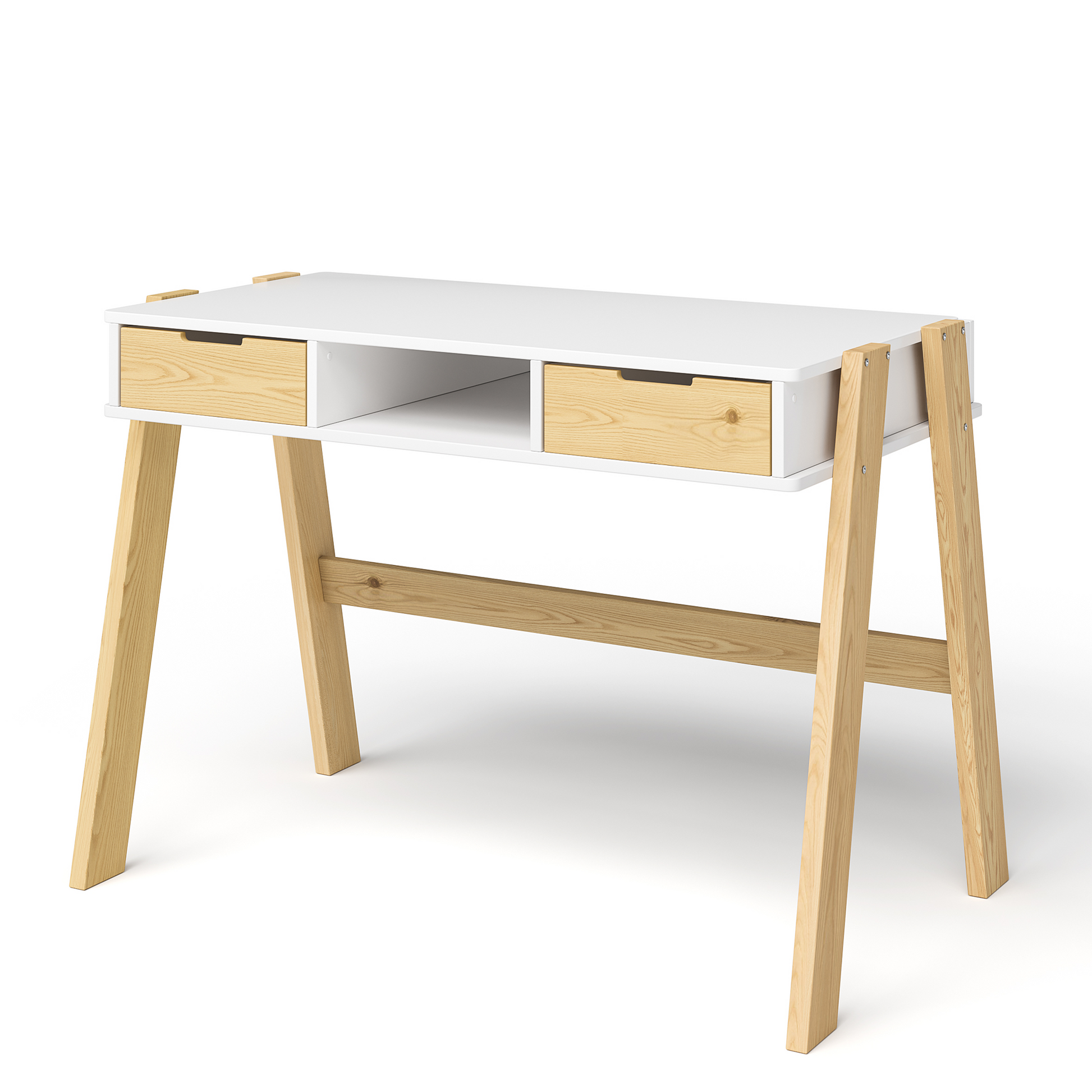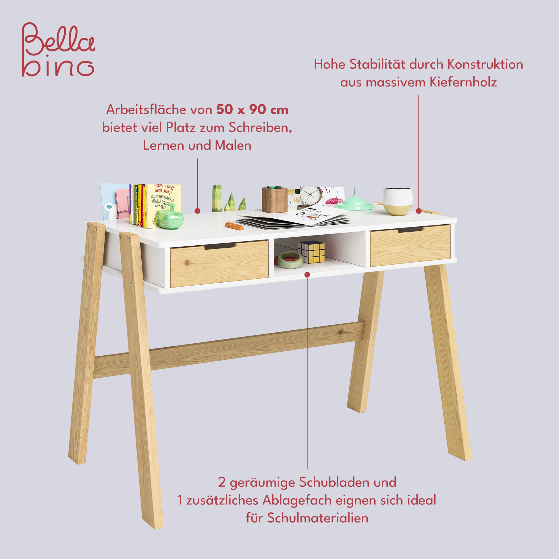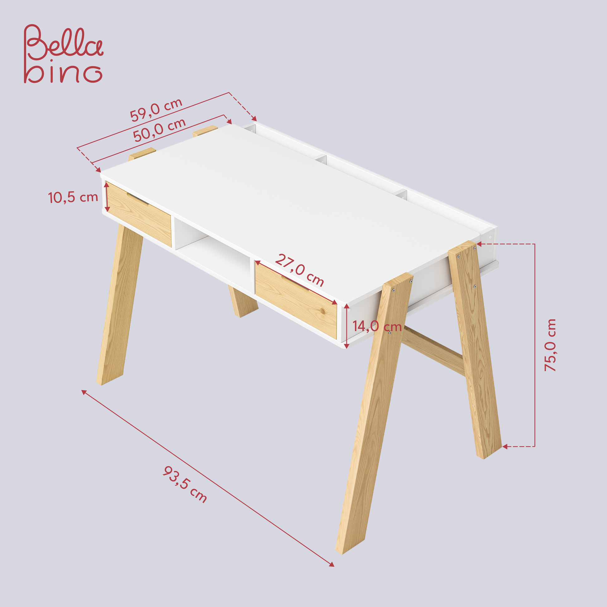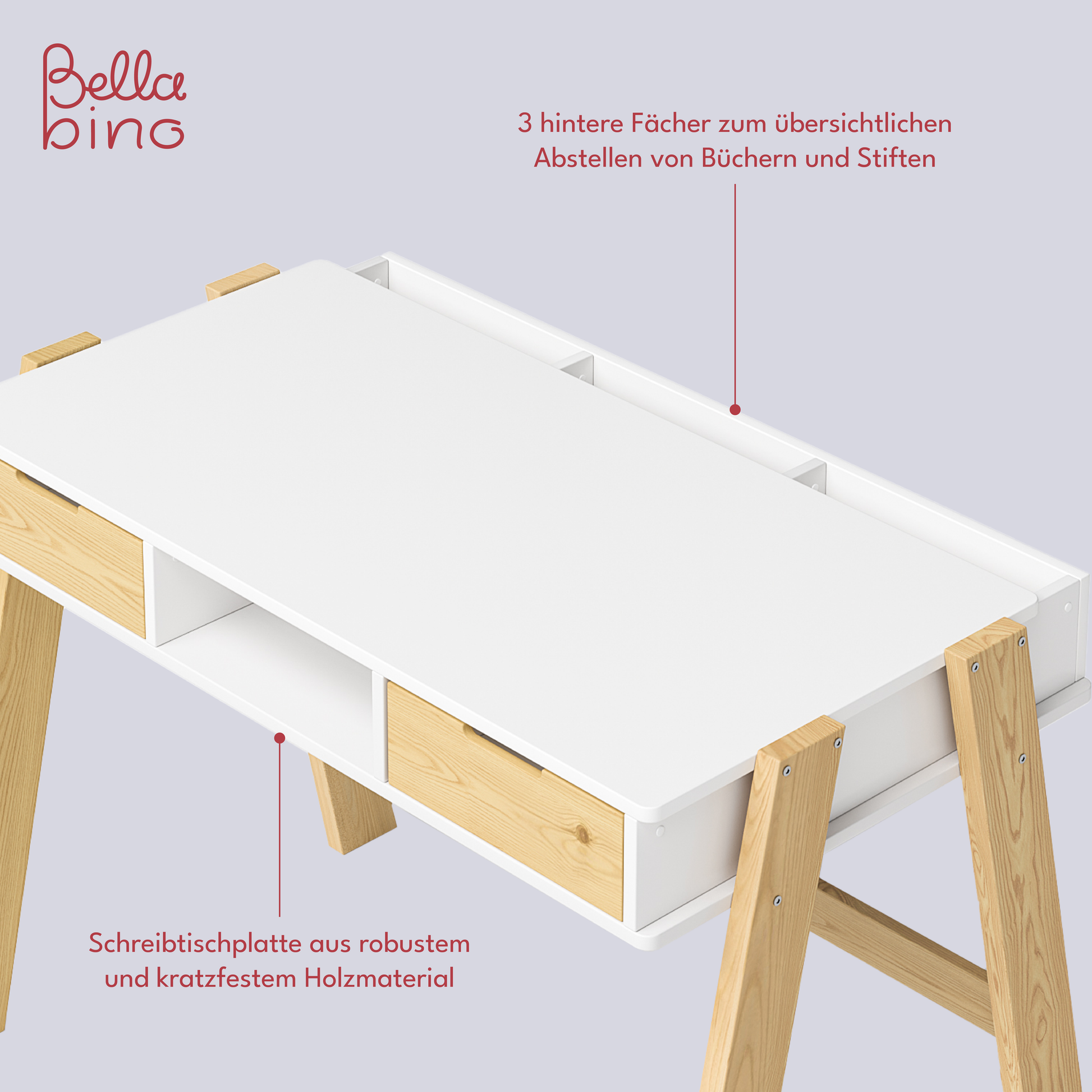 Campo Kinderschreibtisch, weiß/natur, mit 2 Schubladen, 1 Ablagefach und 3 Aufbewahrungsfächern, 75 x 59 x 93 cm