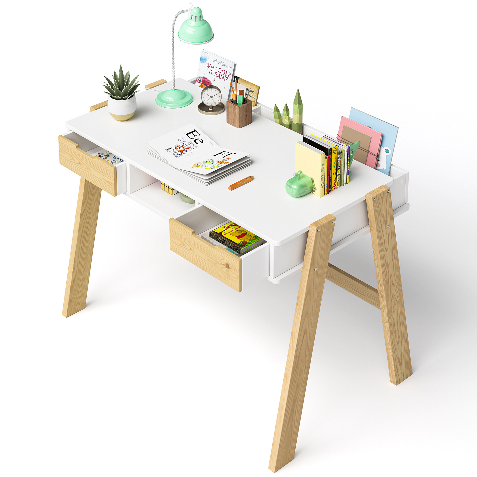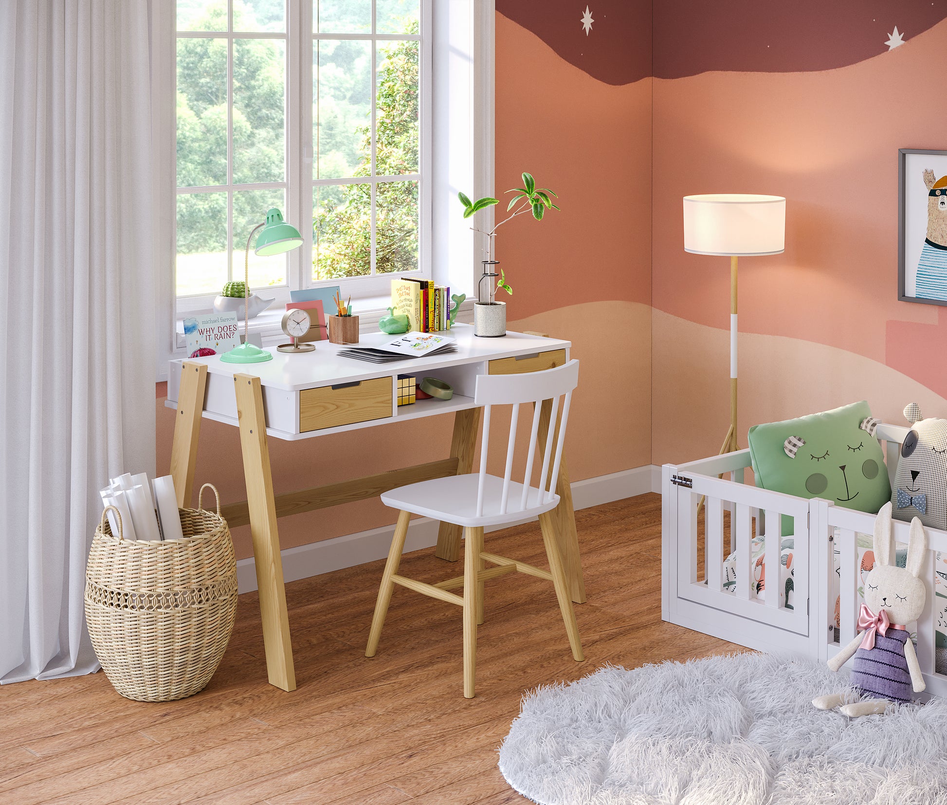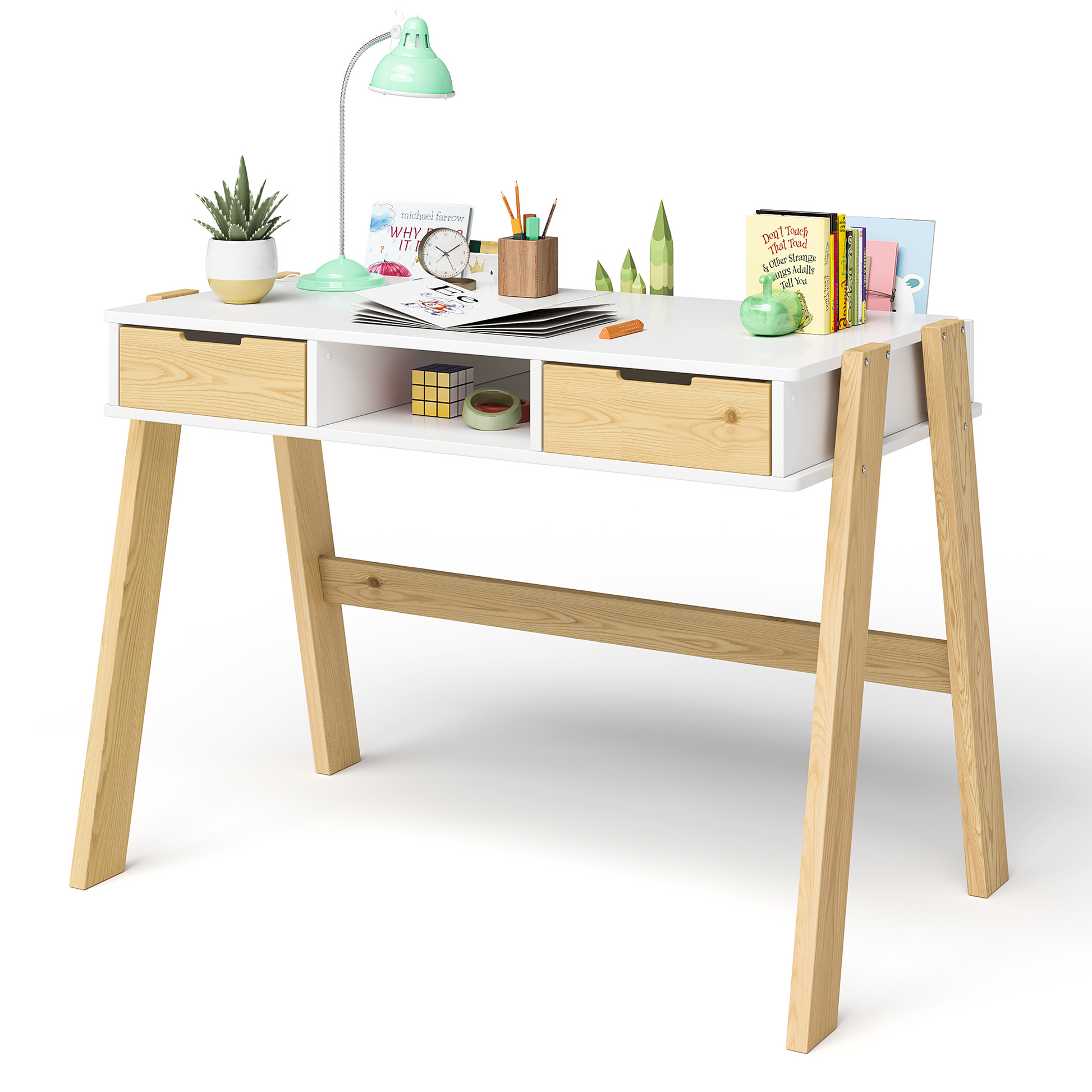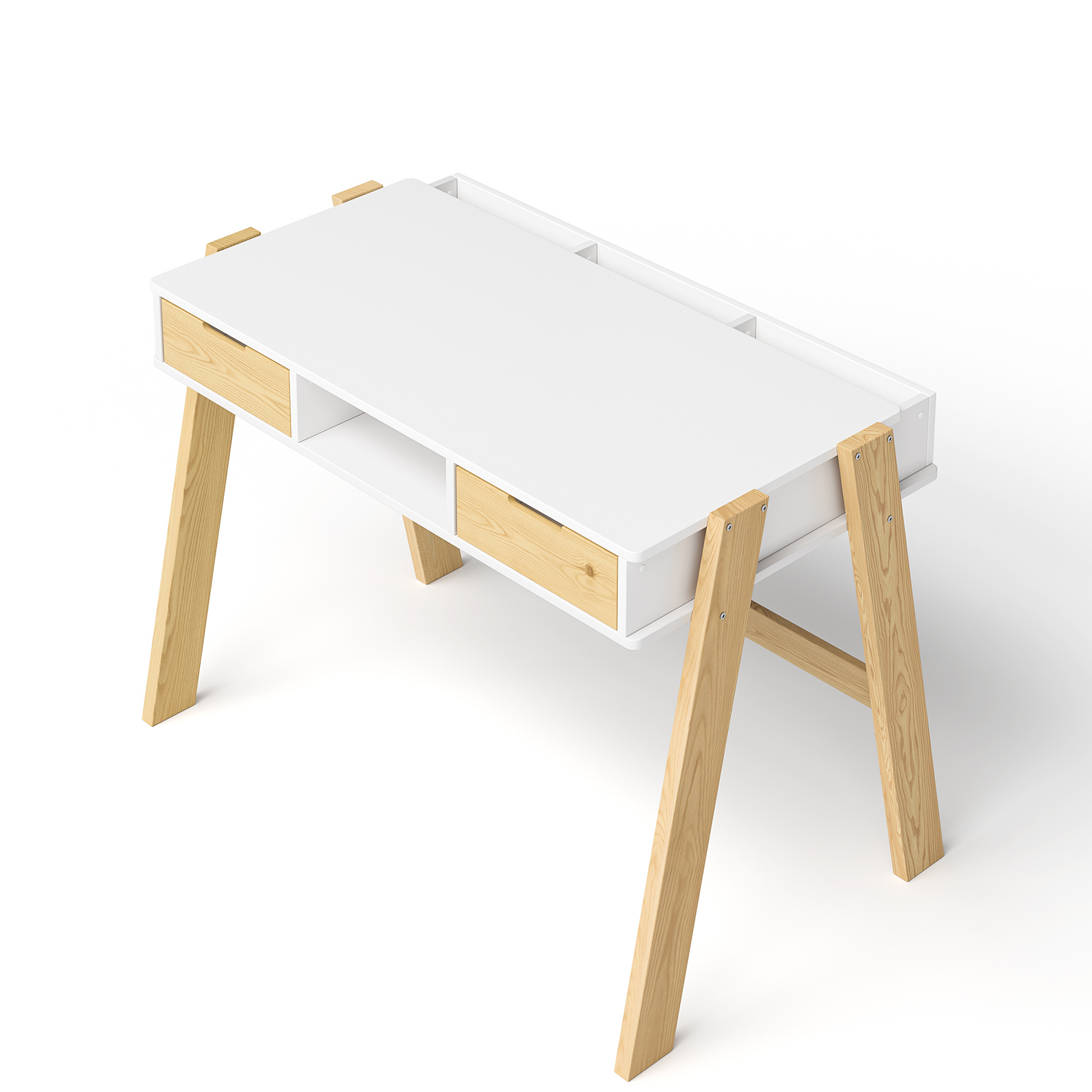 Campo Kinderschreibtisch, weiß/natur, mit 2 Schubladen, 1 Ablagefach und 3 Aufbewahrungsfächern, 75 x 59 x 93 cm
