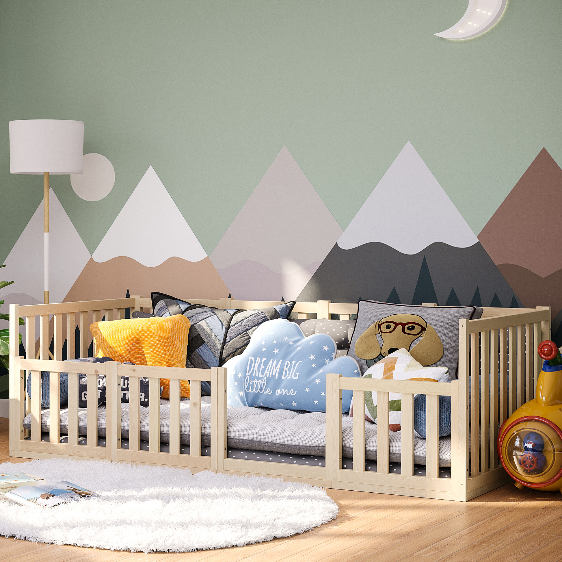 - Lieferumfang: Bodenbett inkl. Rausfallschutz und Lattenrost