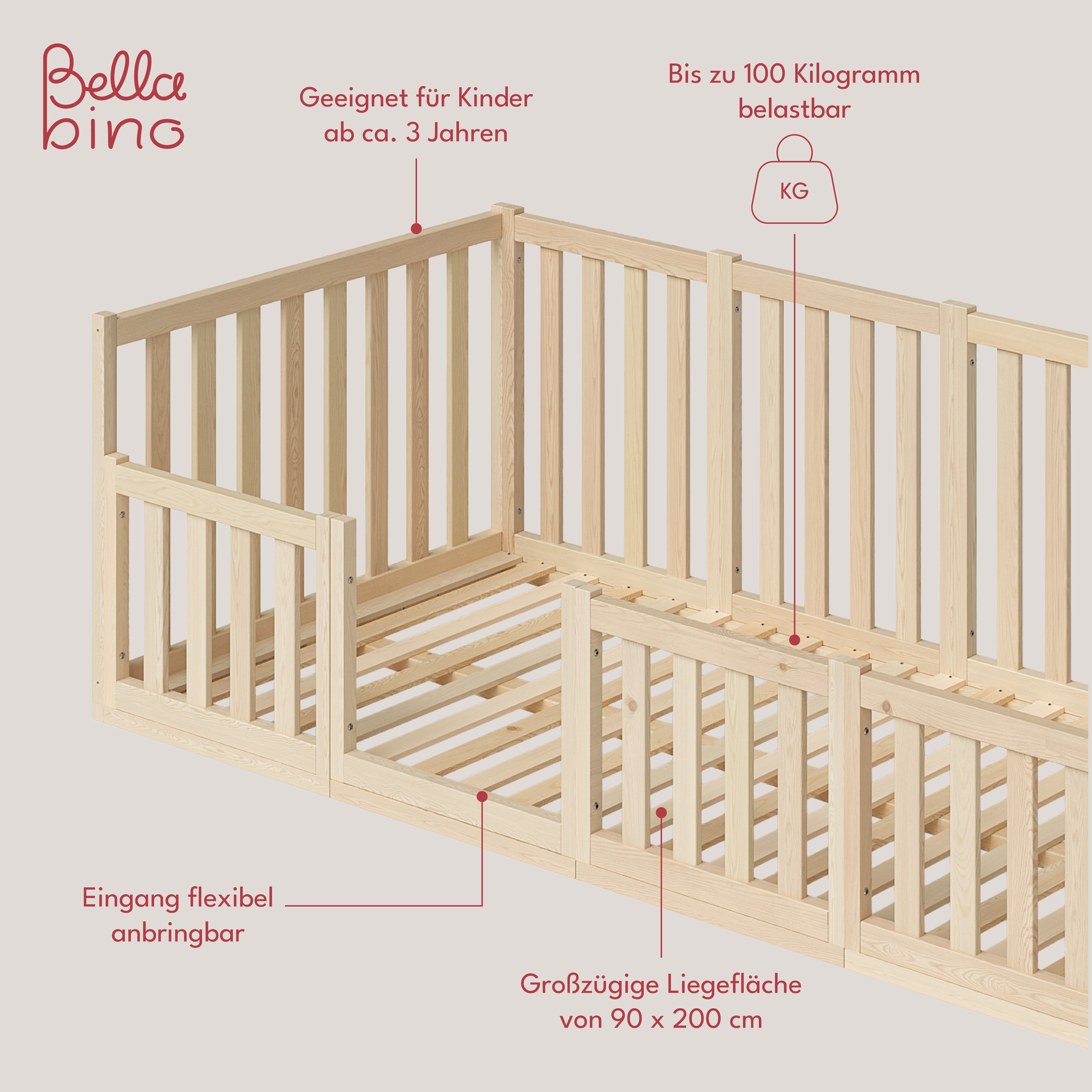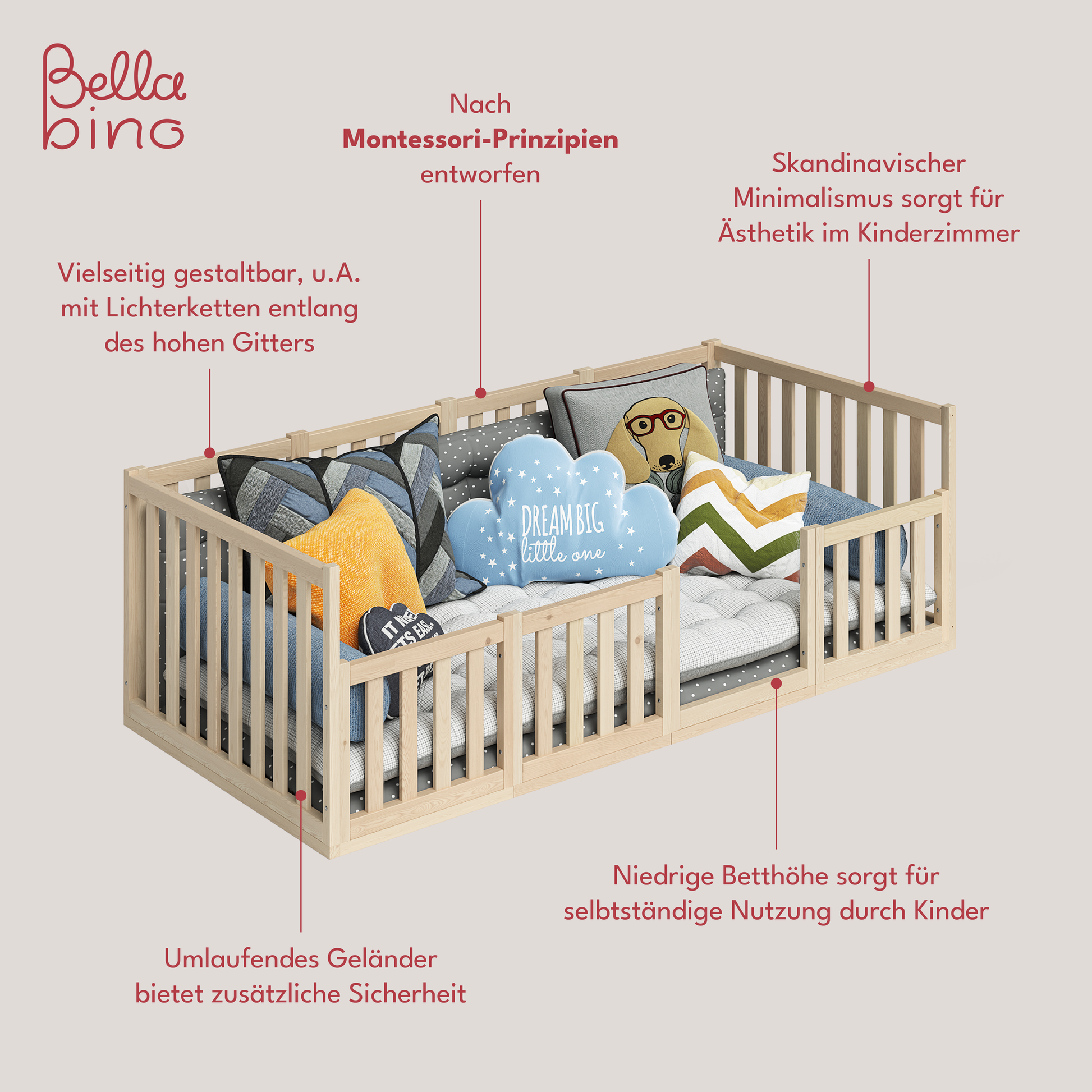 Mit dem Bodenbett 'Cuvo' von Bellabino holen Sie nicht nur ein stilvolles Möbelstück ins Kinderzimmer, sondern auch eine praktische und sichere Schlafumgebung für Ihr Kind.
