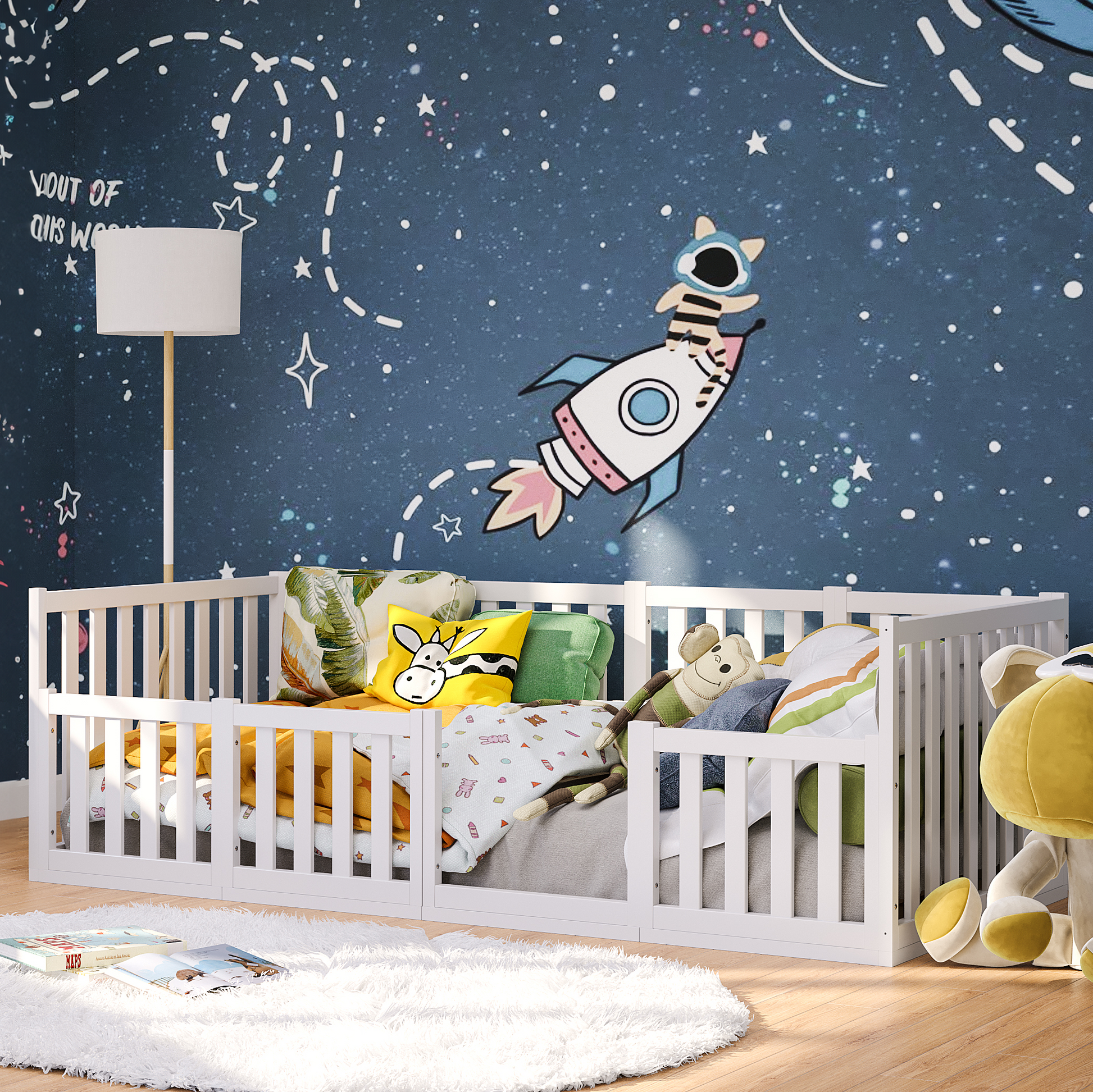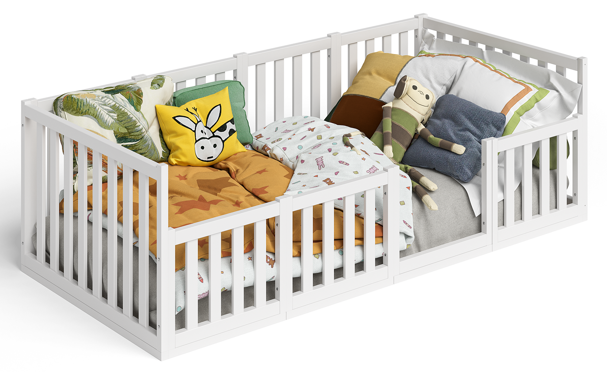 - Lieferumfang: Bodenbett inkl. Rausfallschutz und Lattenrost
