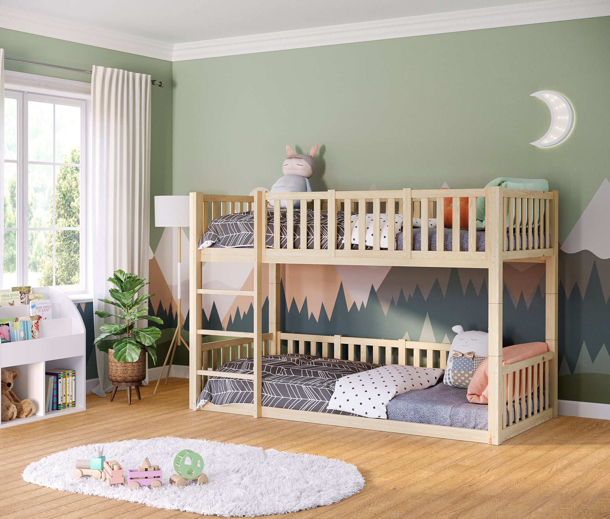 Hergestellt aus massivem Kiefernholz, überzeugt Erie mit hoher Stabilität und einer Belastbarkeit von bis zu 100 kg pro Liegefläche. Hohe Sicherheitsgitter sorgen für zusätzlichen Schutz, während das Bodenbett kleinen Kindern einen einfachen Einstieg ermöglicht und ihre Selbstständigkeit fördert.