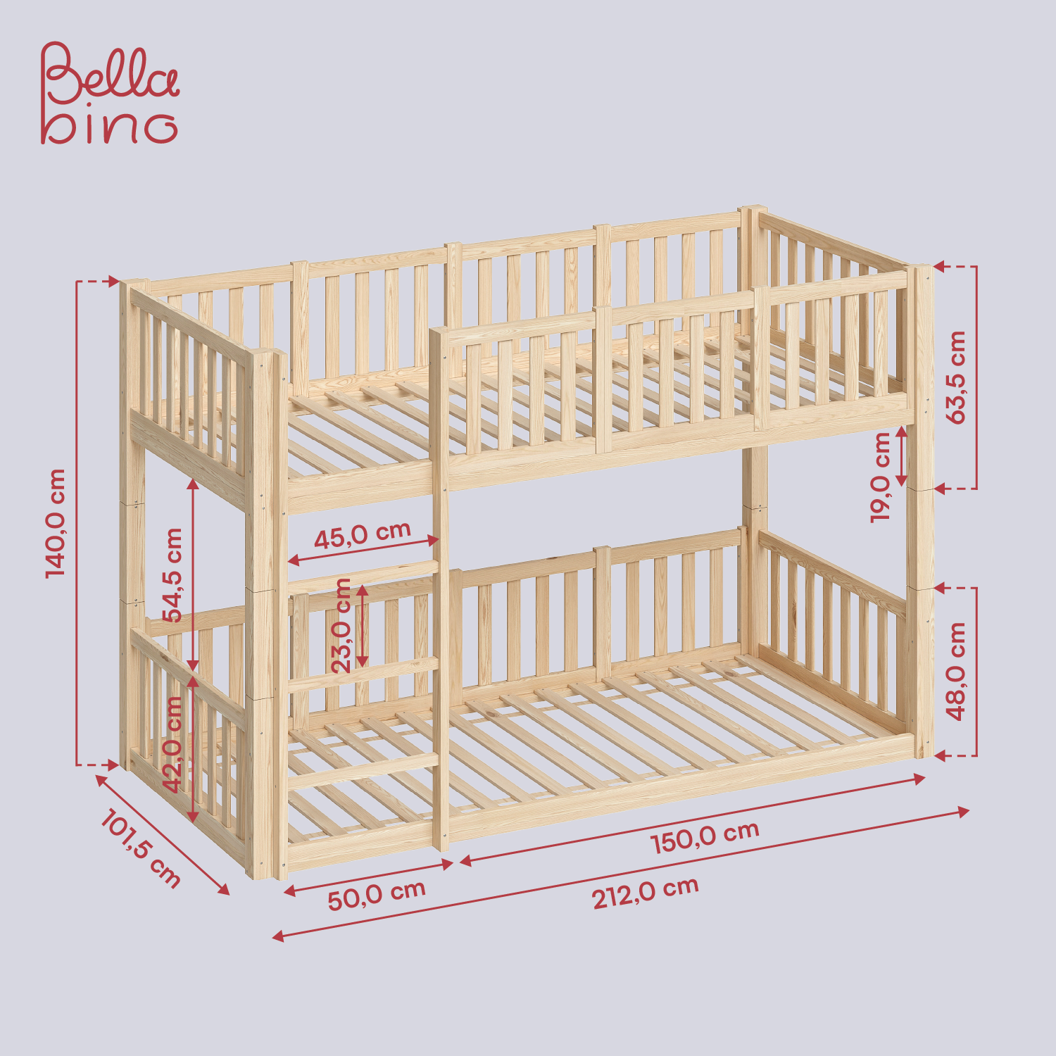 - Maße Etagenbett: H 140 x T 101 x B 212 cm