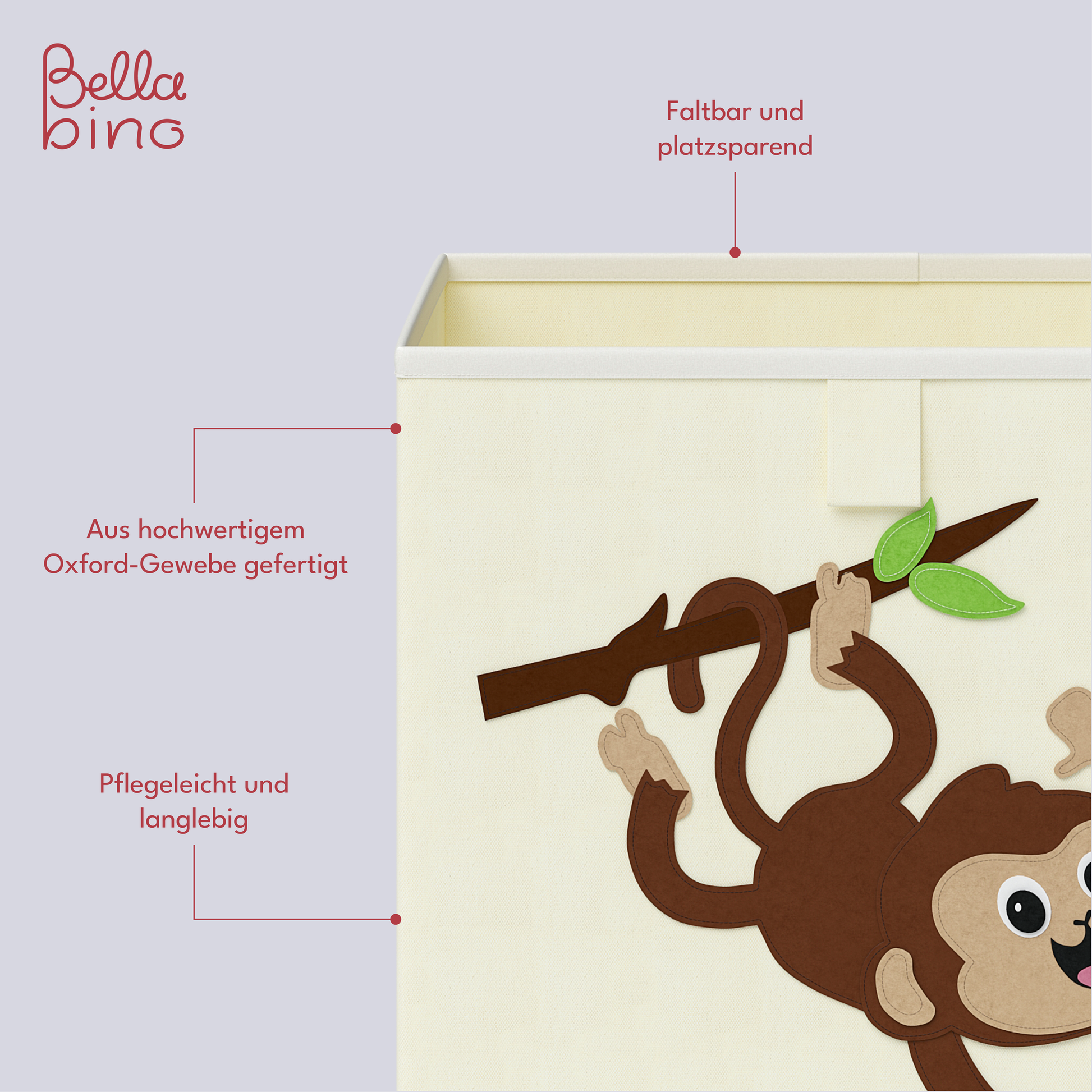 Helme Aufbewahrungsbox Affe, aus Oxford-Gewebe, 30x30x30 cm, beige