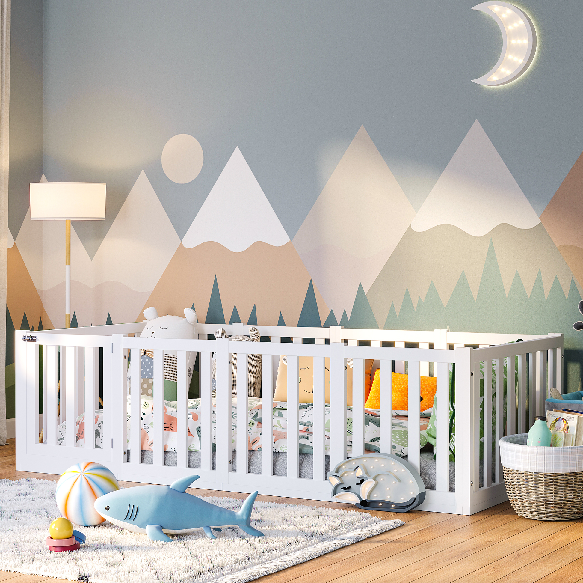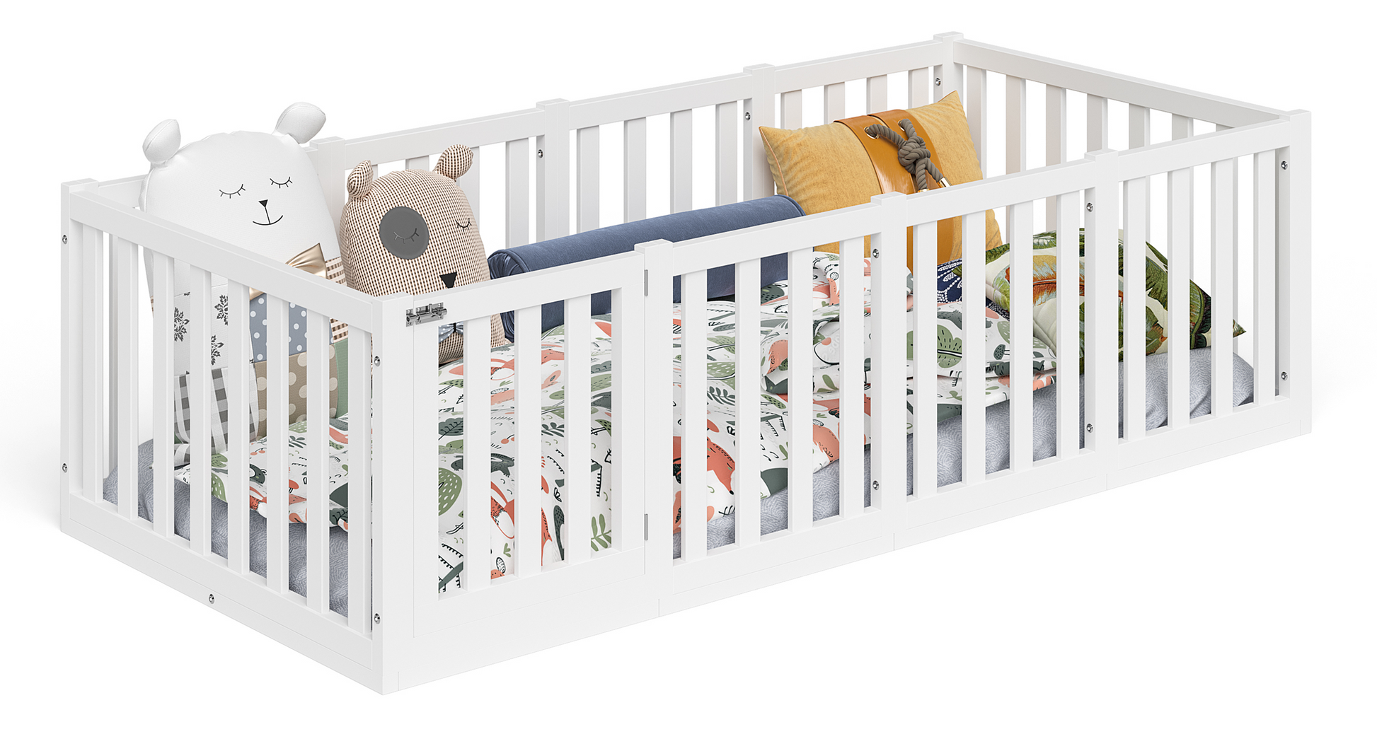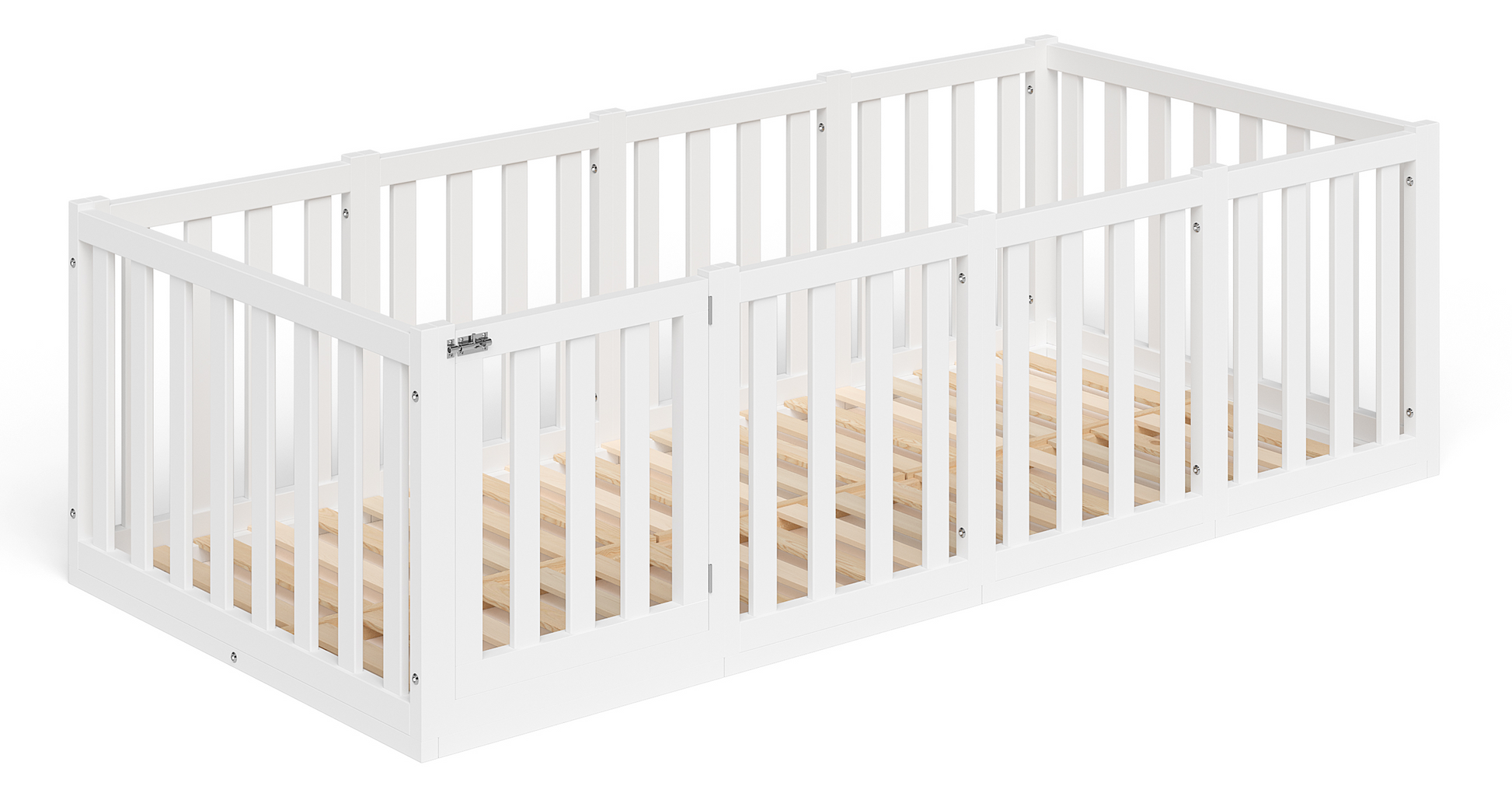 Tapi Bodenbett 90x200 cm mit extra hohem Gitter, mit Tür, weiß lackiert, Kiefer massiv, inkl. Lattenrost