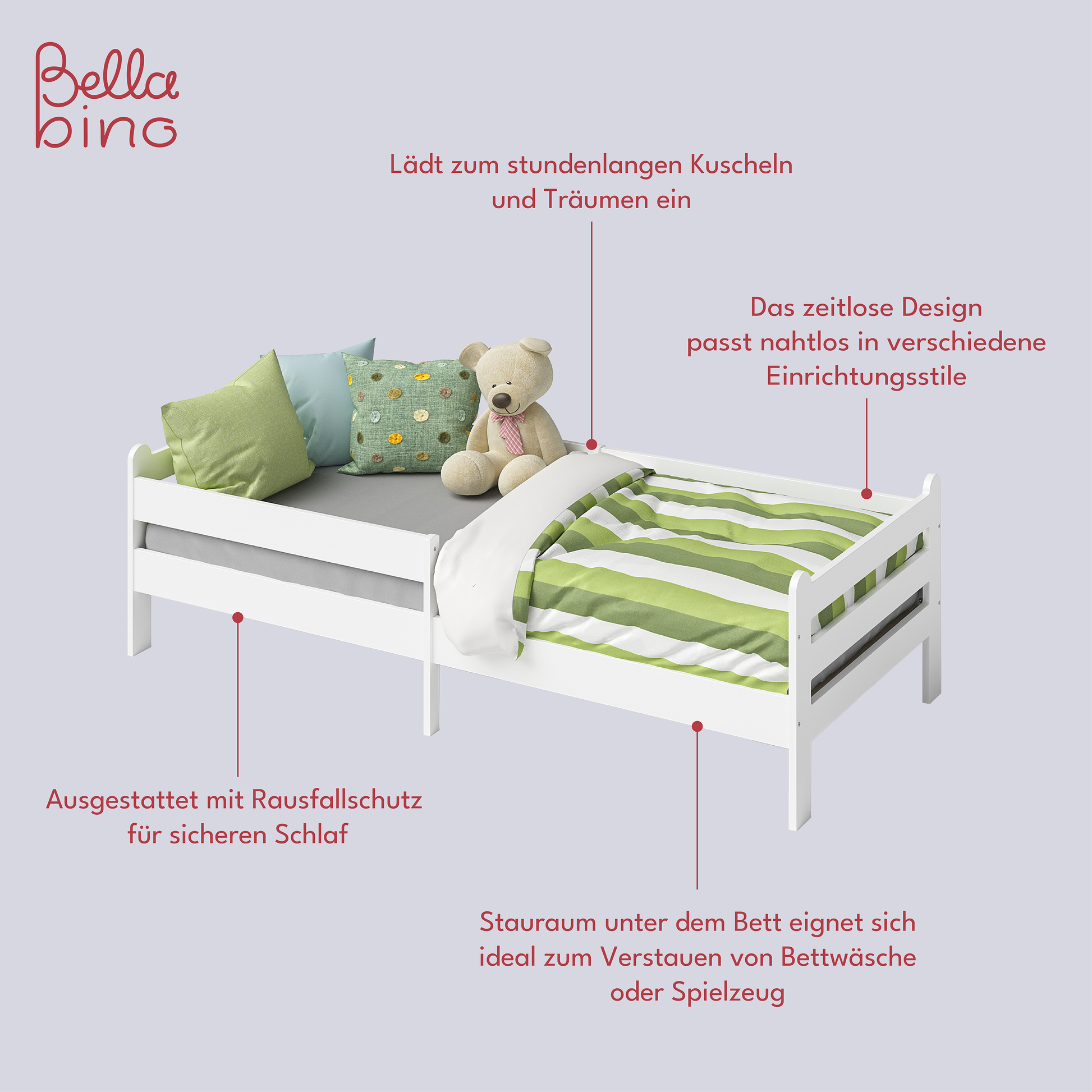 - Lieferumfang: Kinderbett inkl. Rausfallschutz und Lattenrost