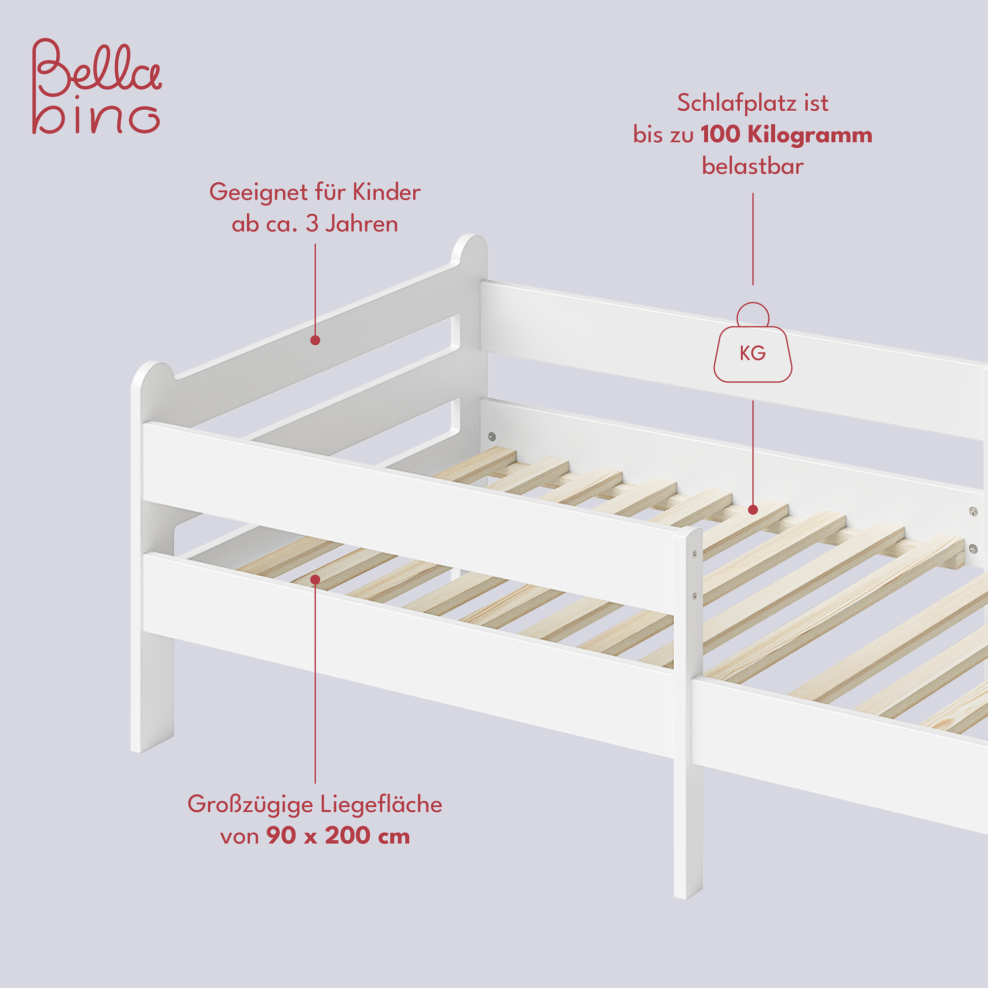 Kuru Kinderbett inkl. Rausfallschutz und Lattenrost, weiß lackiert, 90x200 cm